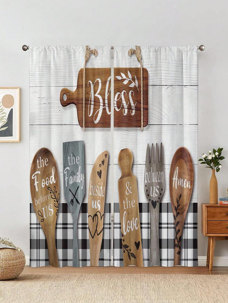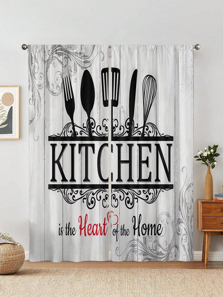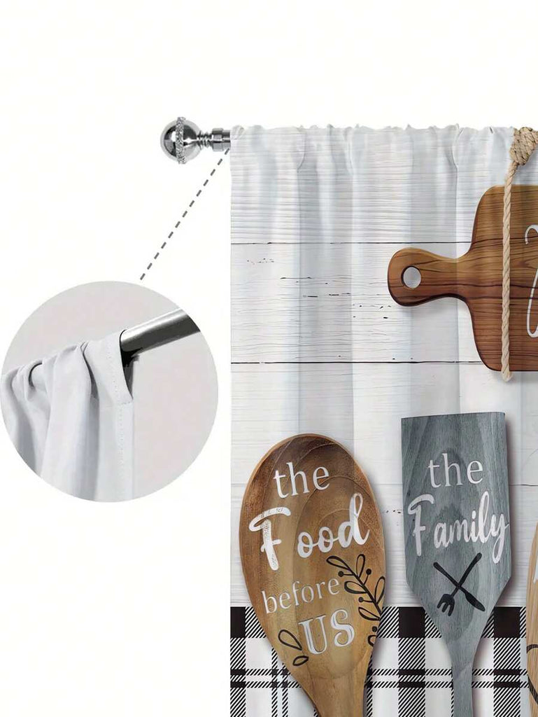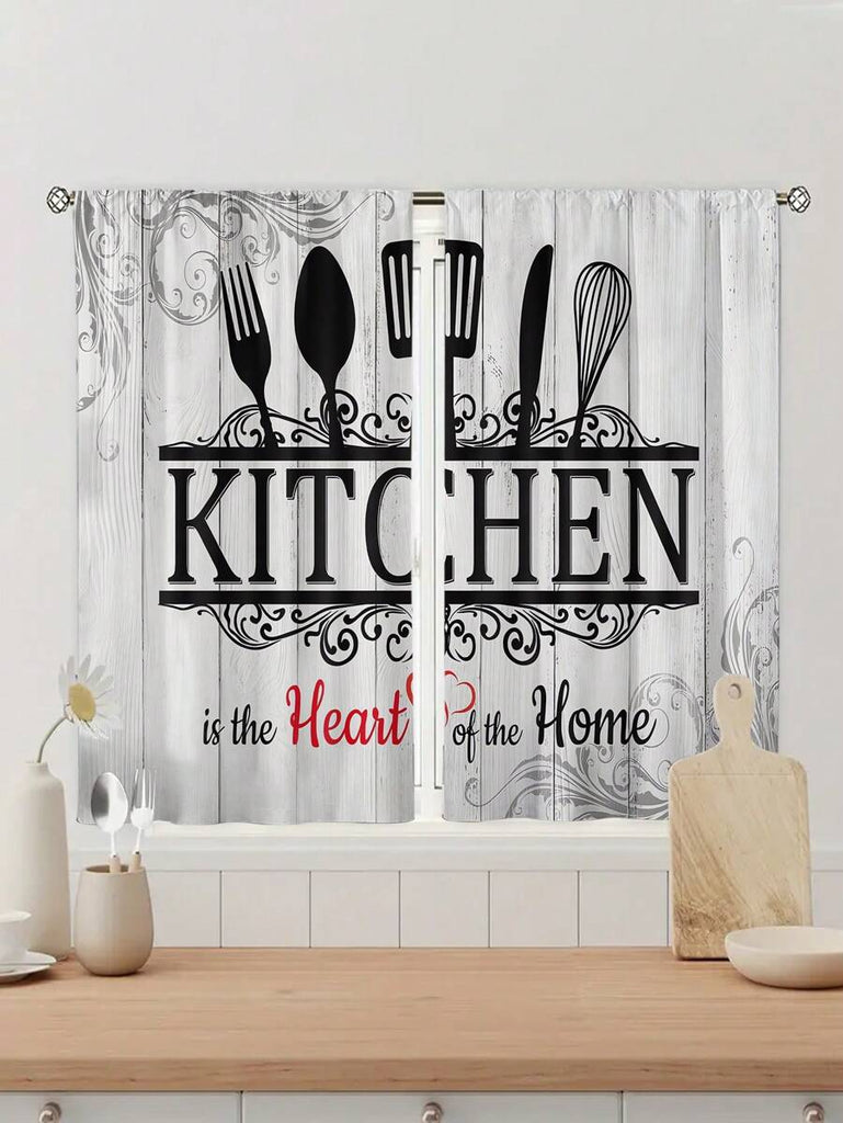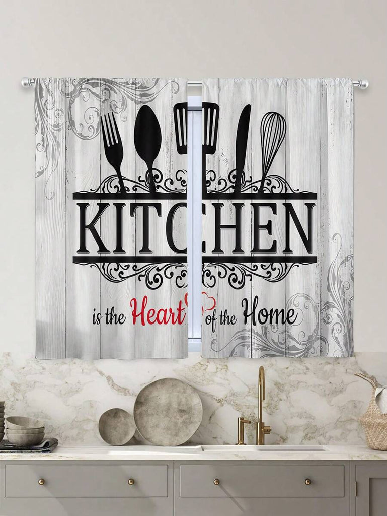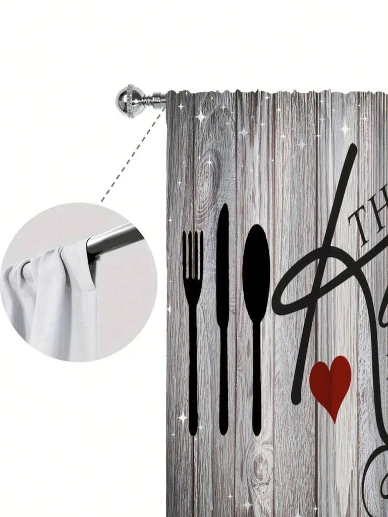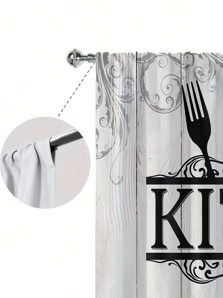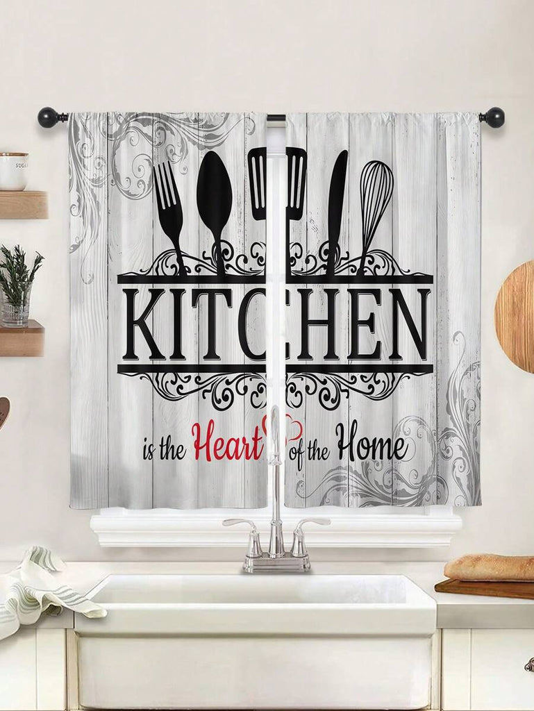 2pcs Retro European Cutlery Printed Kitchen Curtain,Without Holes Curtain, Refer To Bedroom Office Kitchen Living Room Study Home Decor