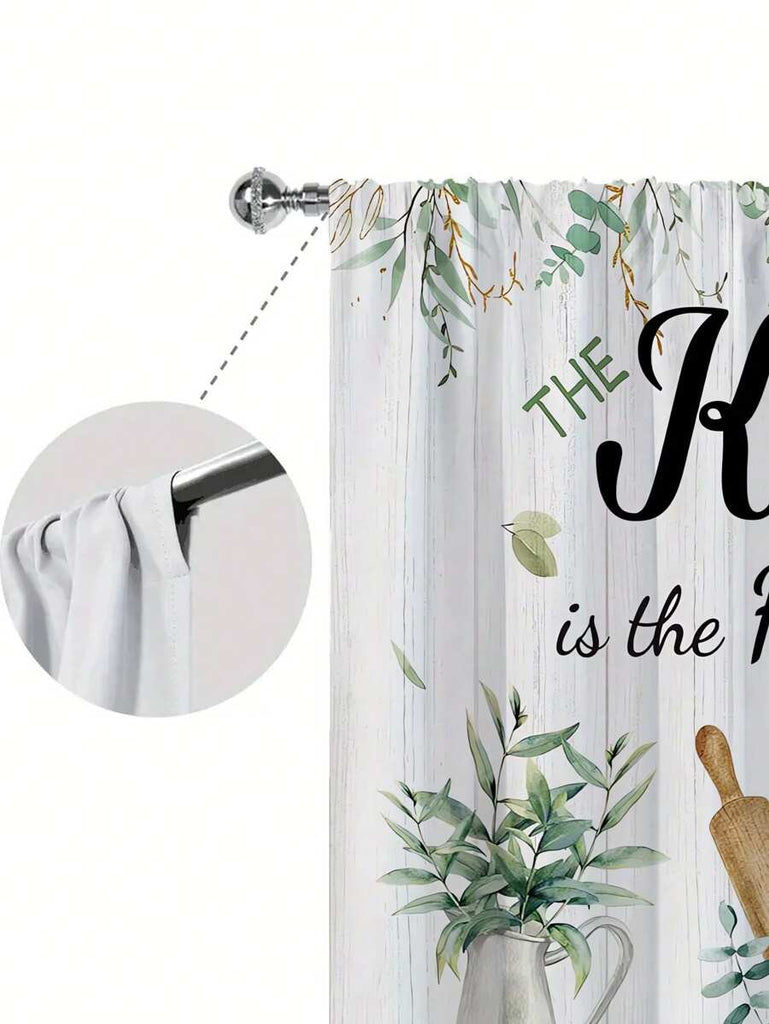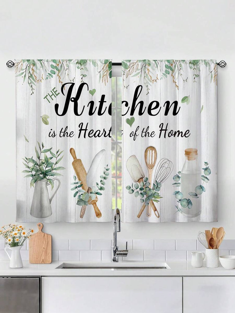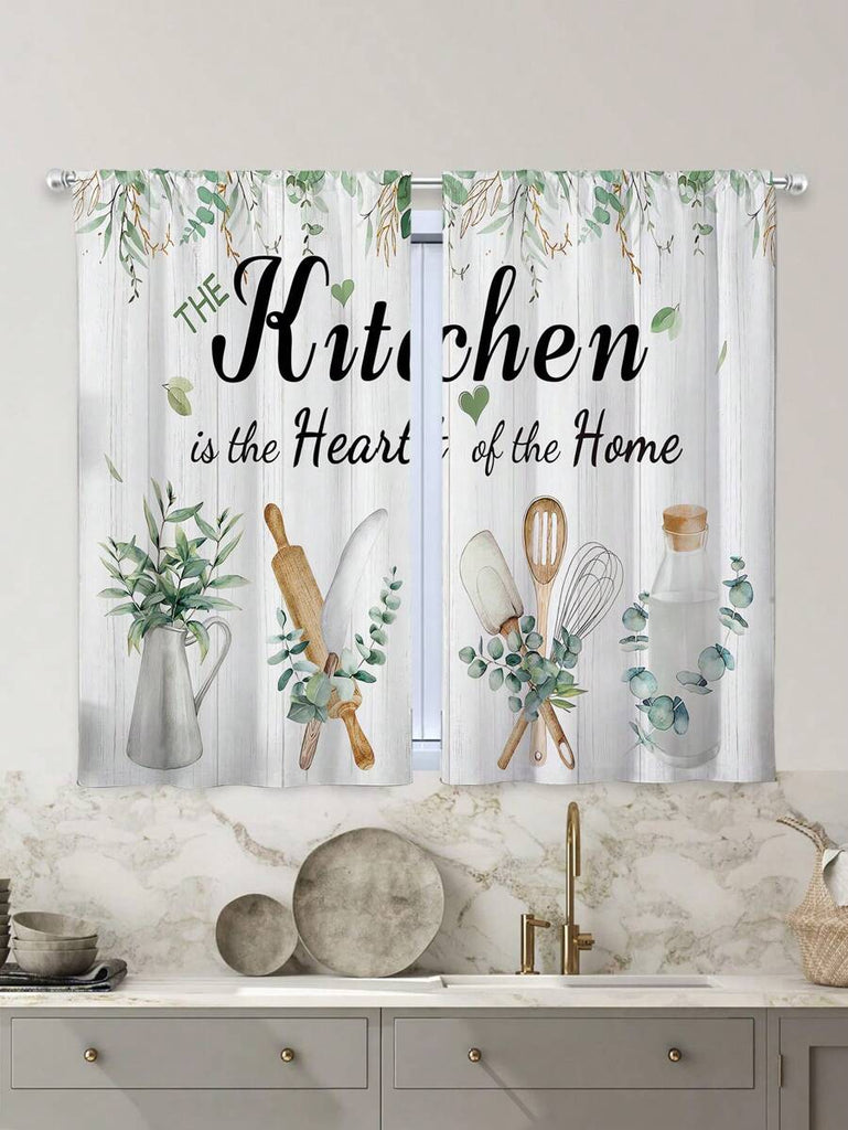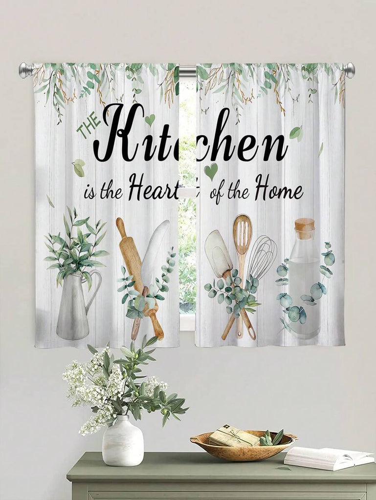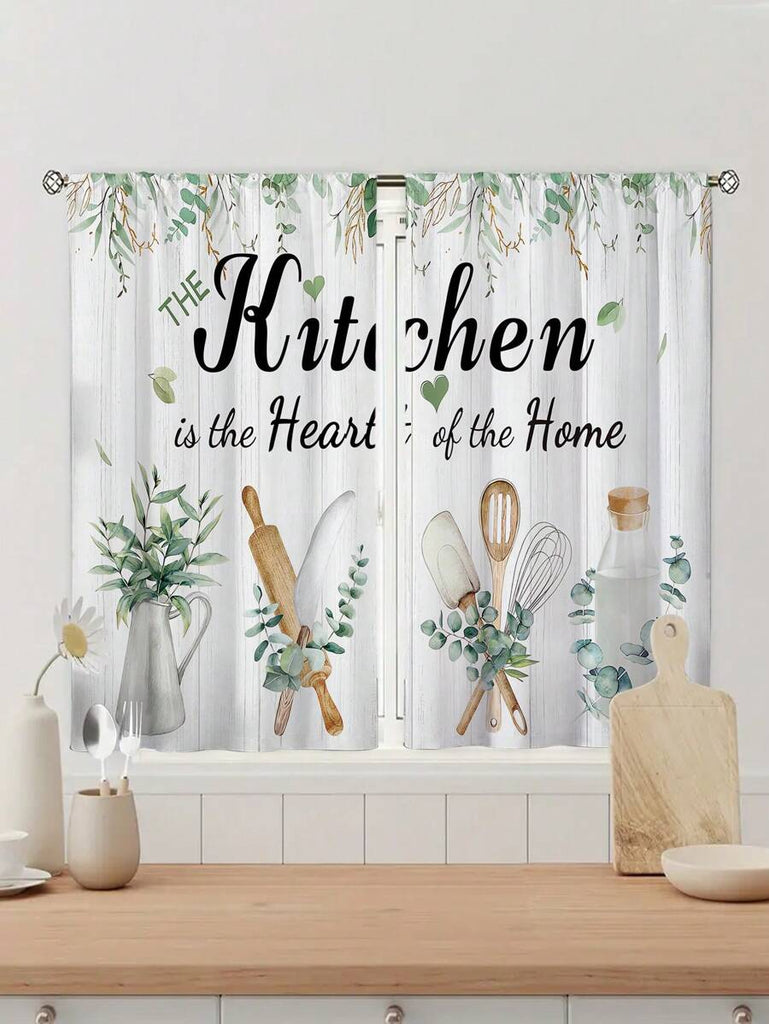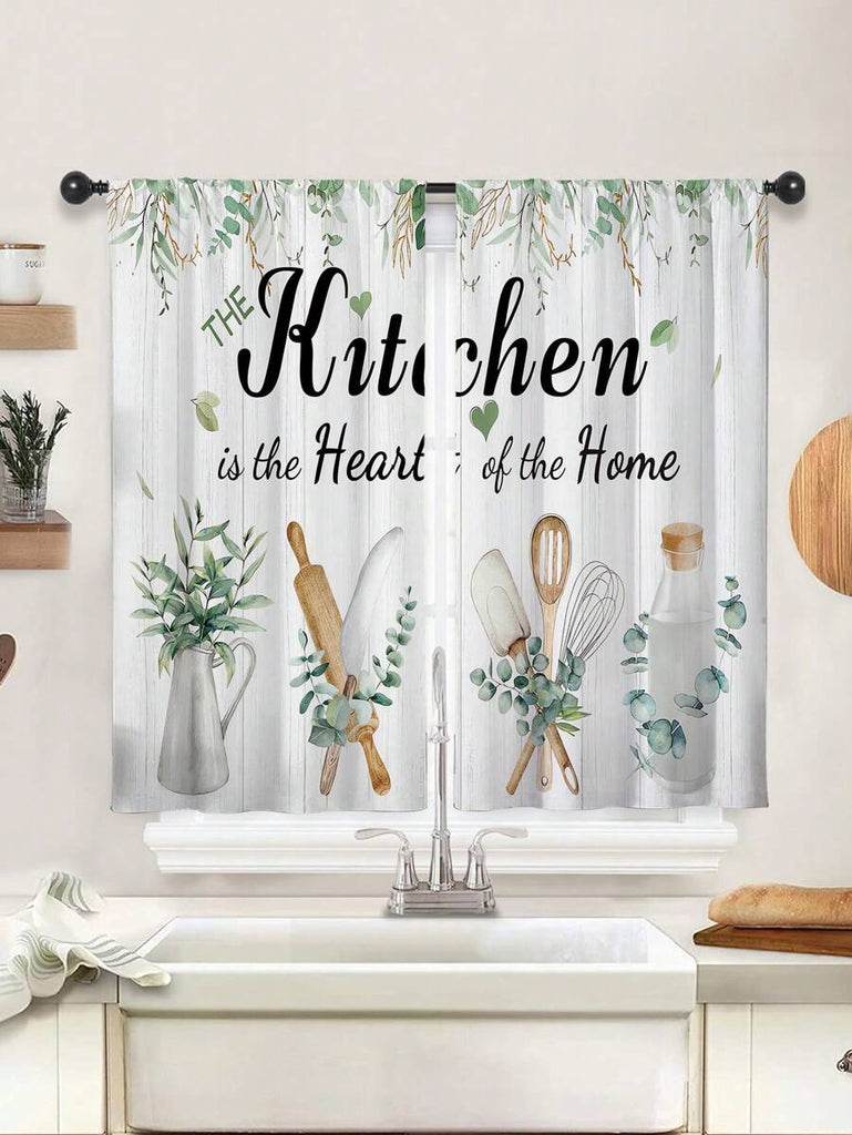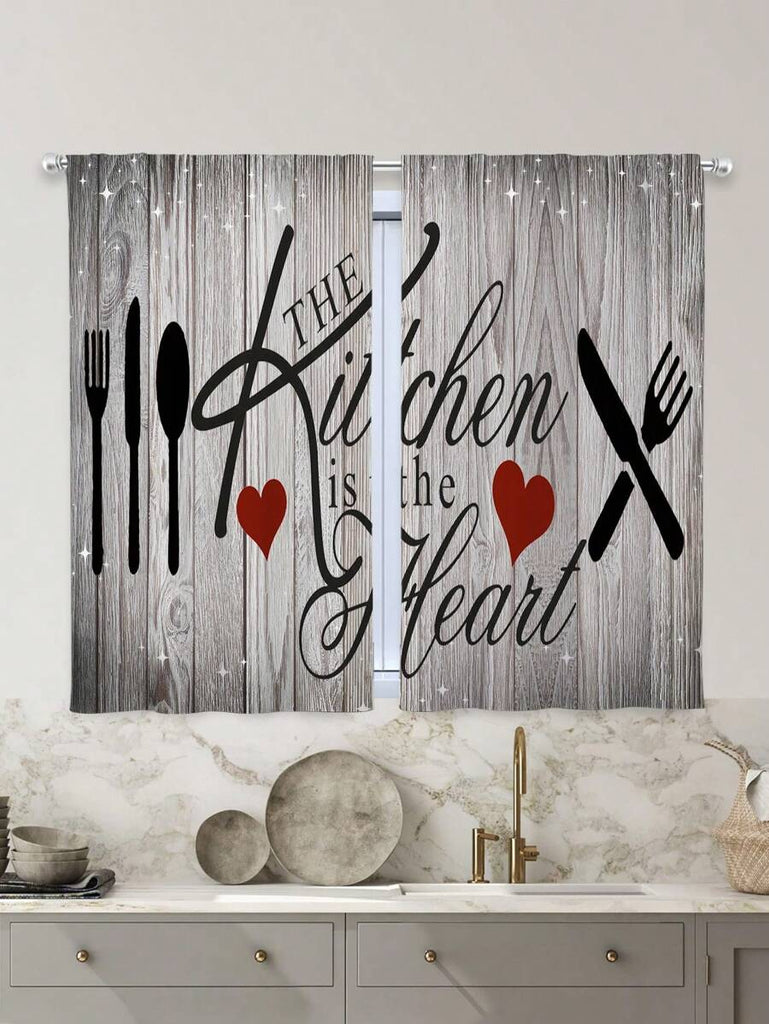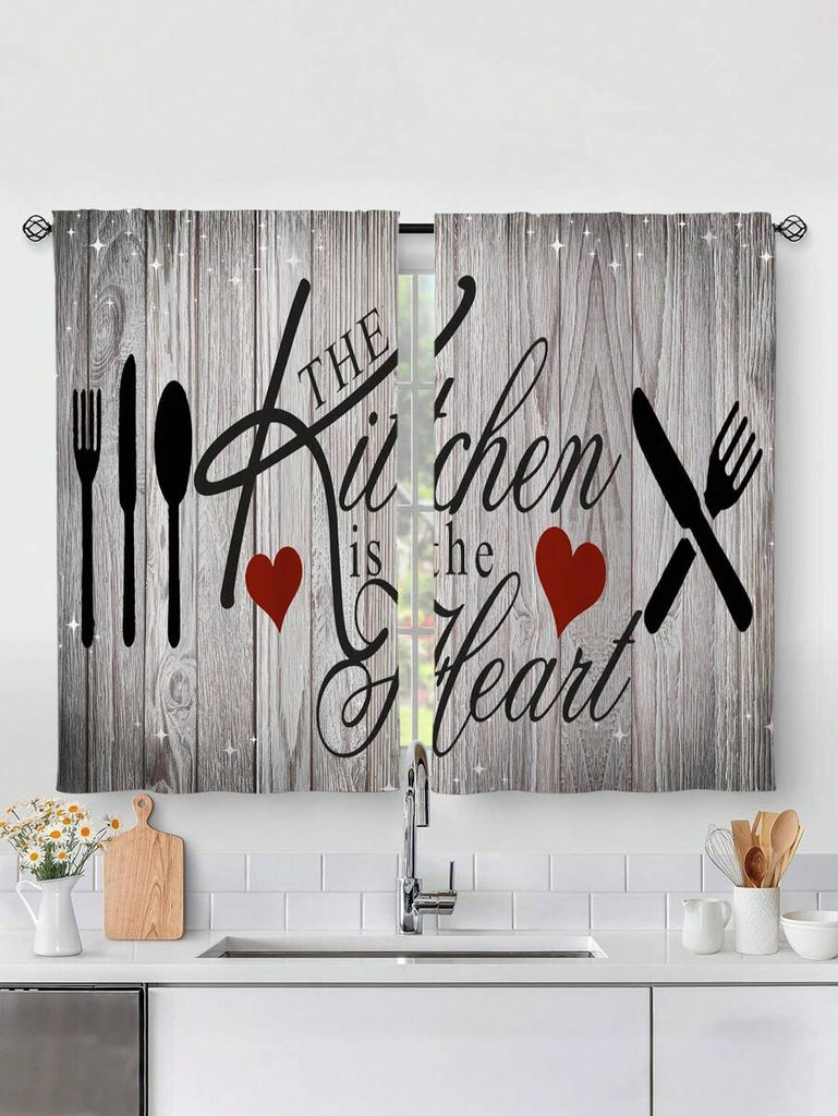 2pcs Retro European Cutlery Printed Kitchen Curtain,Without Holes Curtain, Refer To Bedroom Office Kitchen Living Room Study Home Decor