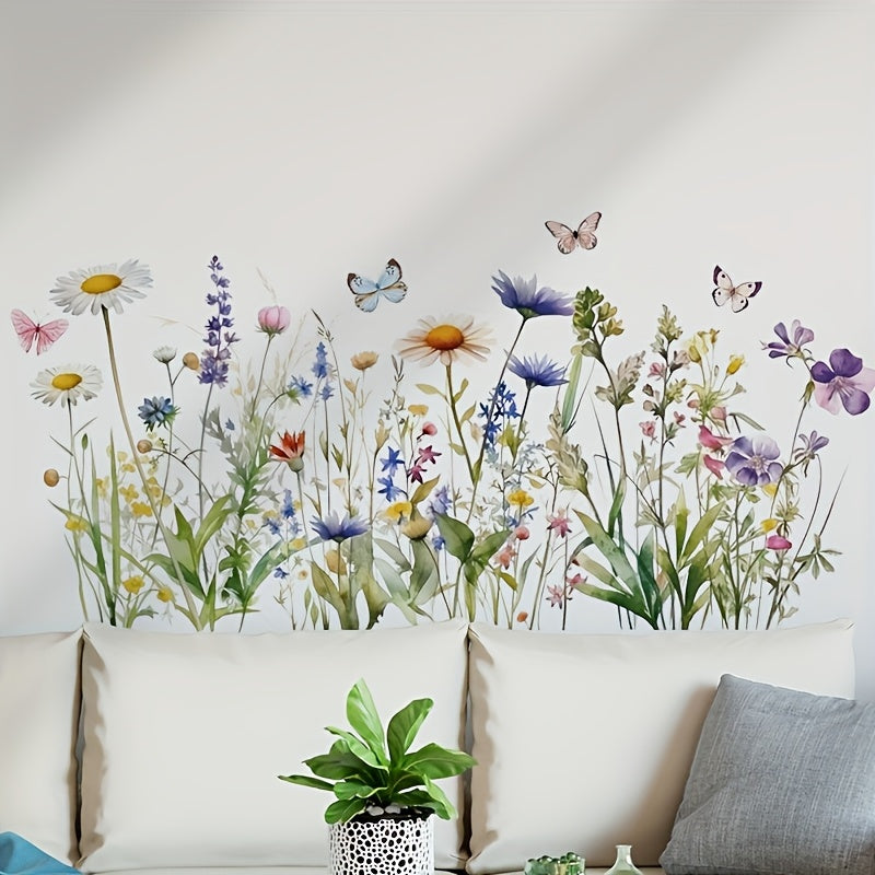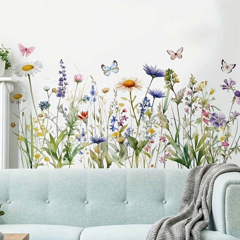 1pc Scandinavian Floral and Butterfly Wall Sticker - Easy to Apply, Removable PVC Wallpaper, Suitable for Living Room, Bedroom, Hallway Decoration, Plants, Skirting Board, Sofa