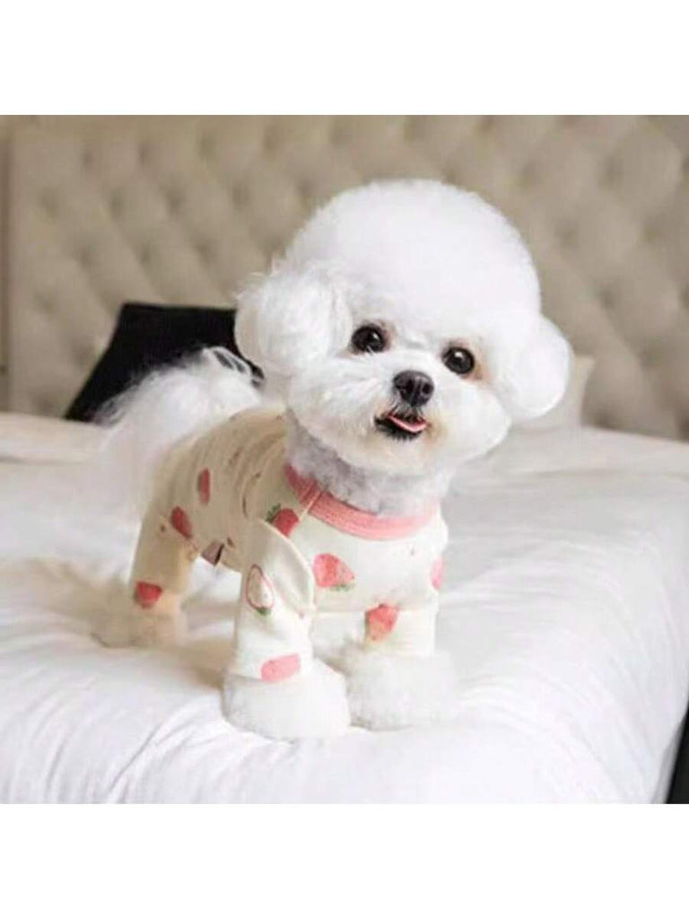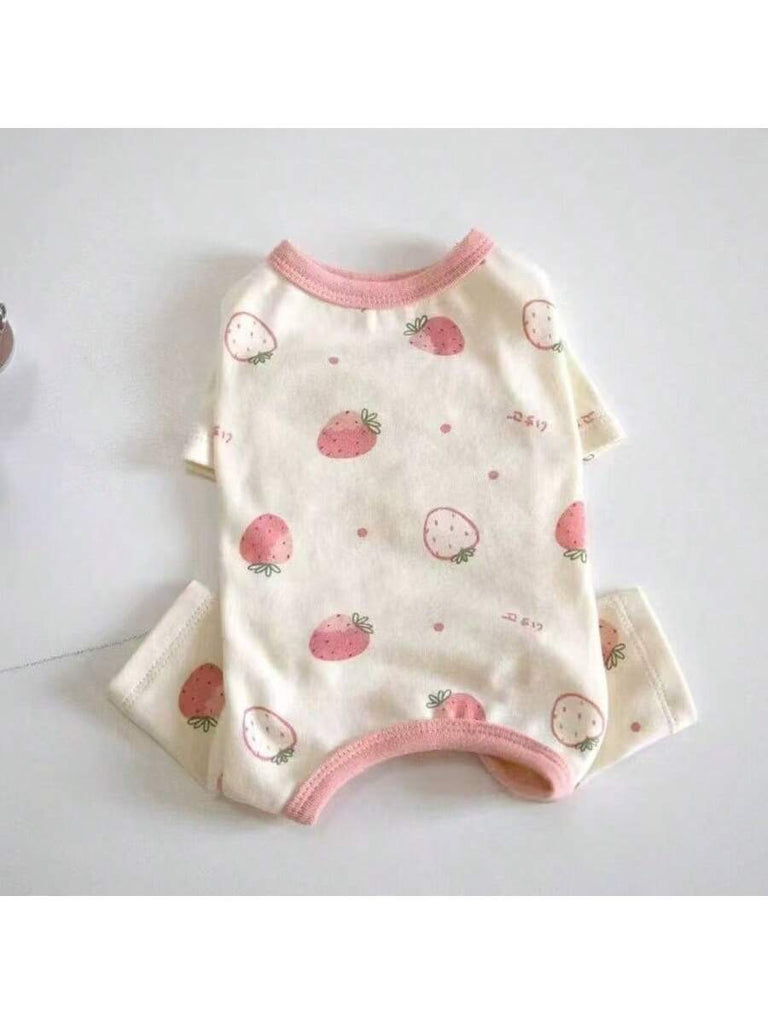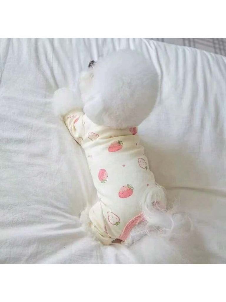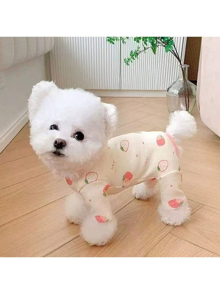 1pc Happy Cat & Dog Jumpsuit, Cute Strawberry Print Elastic Pet Clothes For Indoor & Outdoor Wear, Suitable For Poodle, Bichon Frise, Teddy, Yorkshire Terrier, Maltese