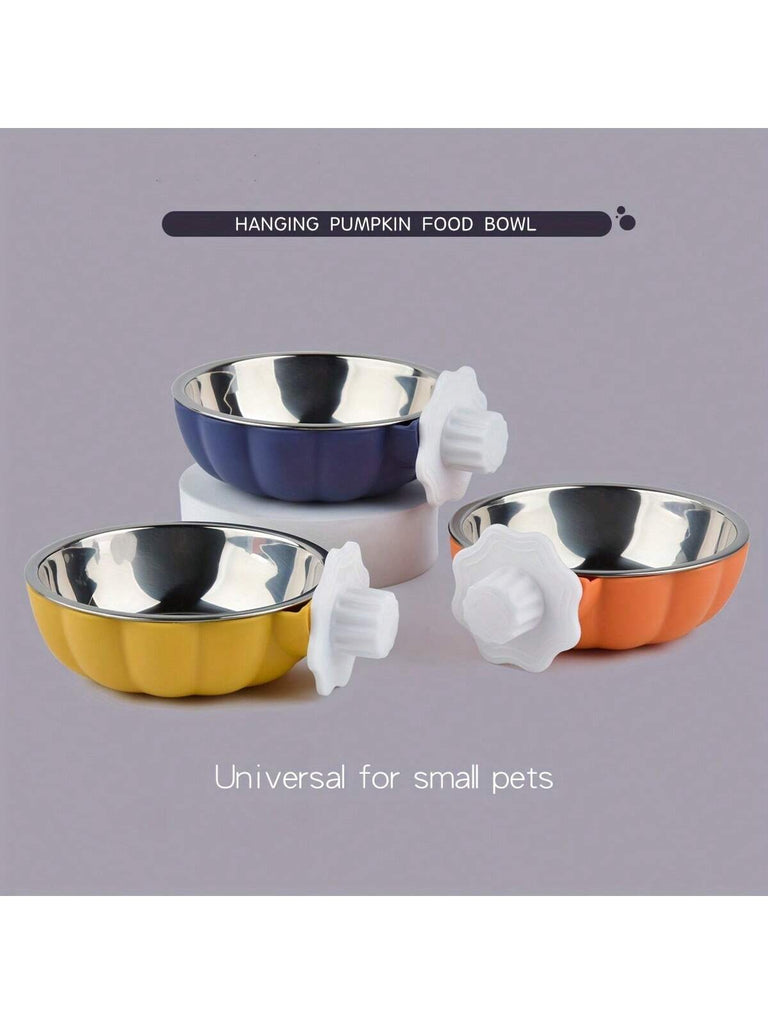 1pc Plastic & Stainless Steel Detachable Pumpkin-Shaped Pet Food And Water Bowl - Adjustable Height For Convenient Feeding And Cleaning