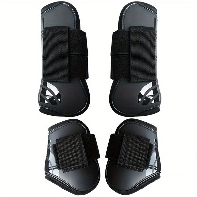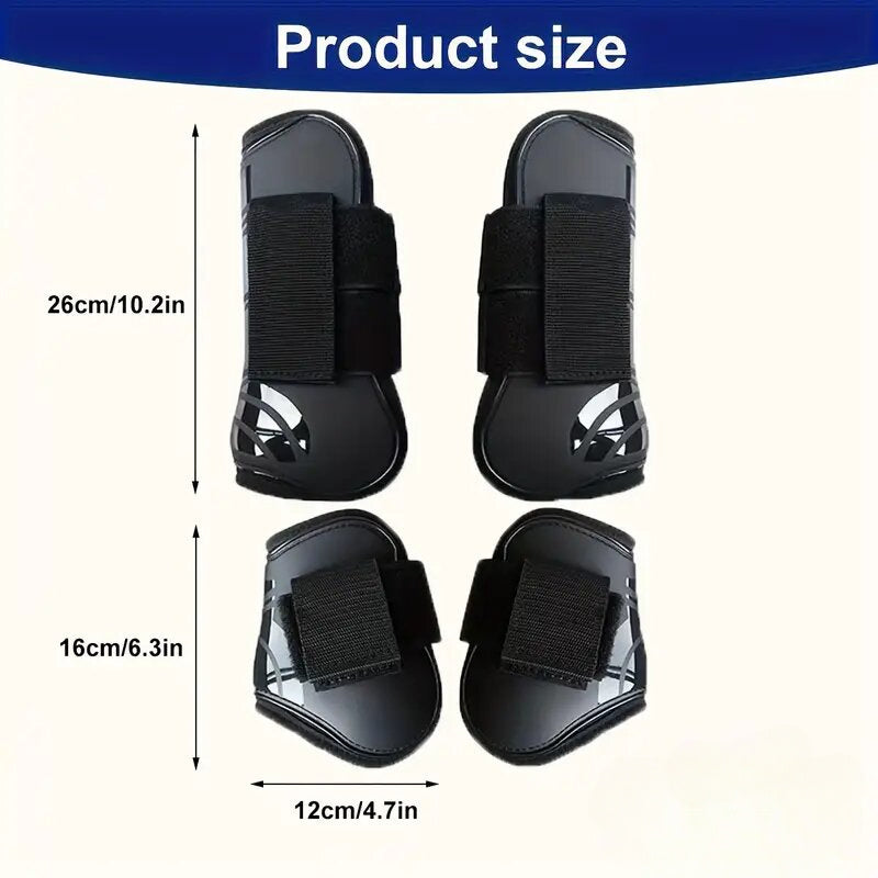 4-Pack Black Horse Leg Boots, Universal Fit Waterproof TPU Fabric, Equine Protective Leg Wraps for Front & Back Legs, Equestrian Gear for Support & Protection
