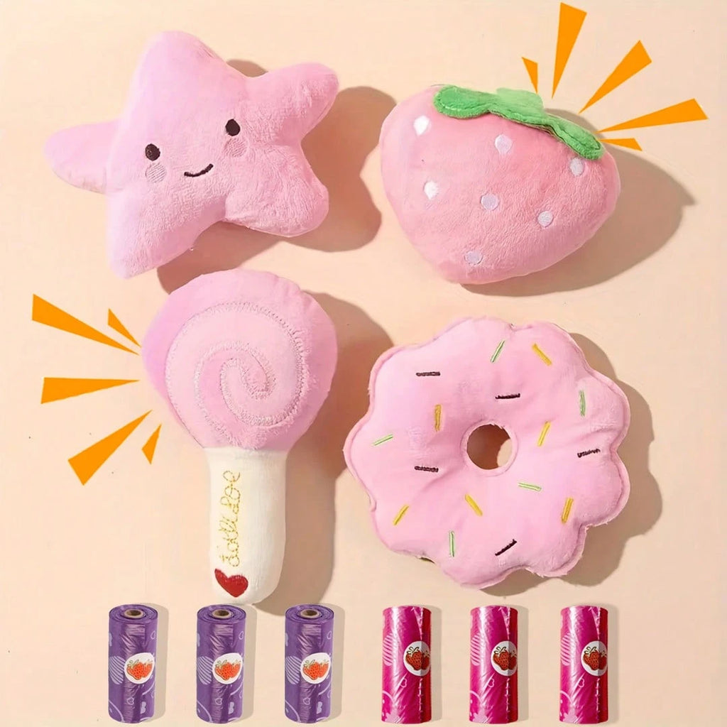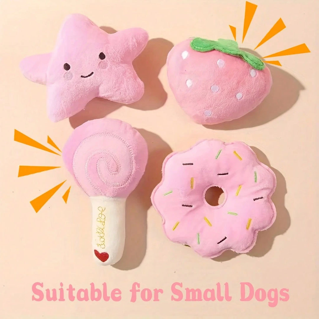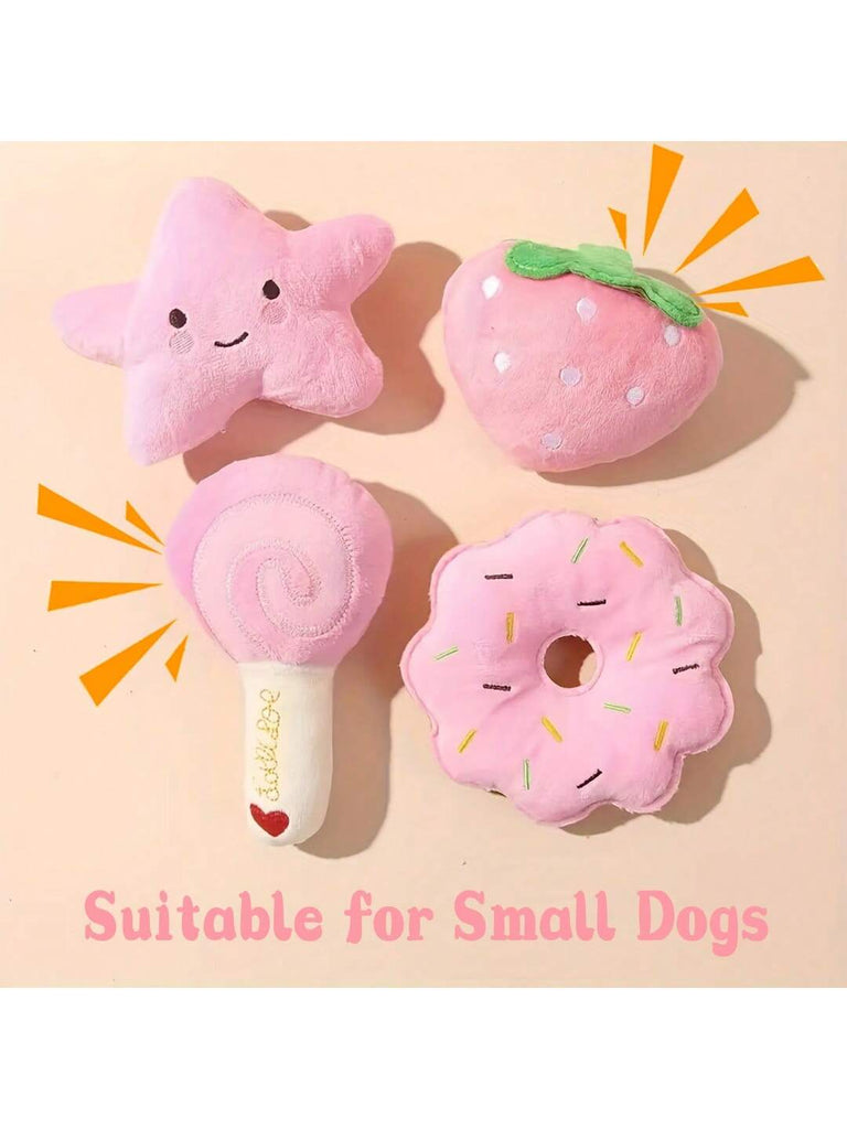 4pcs Plush Squeaky Pet Toy Set For Small Dogs & Cats -Lollipop, Star, Donut & Strawberry Designs - Interactive Play And Sleep Companions, Pet Toys For Dogs Chew Toy For Dog Interactive Supply