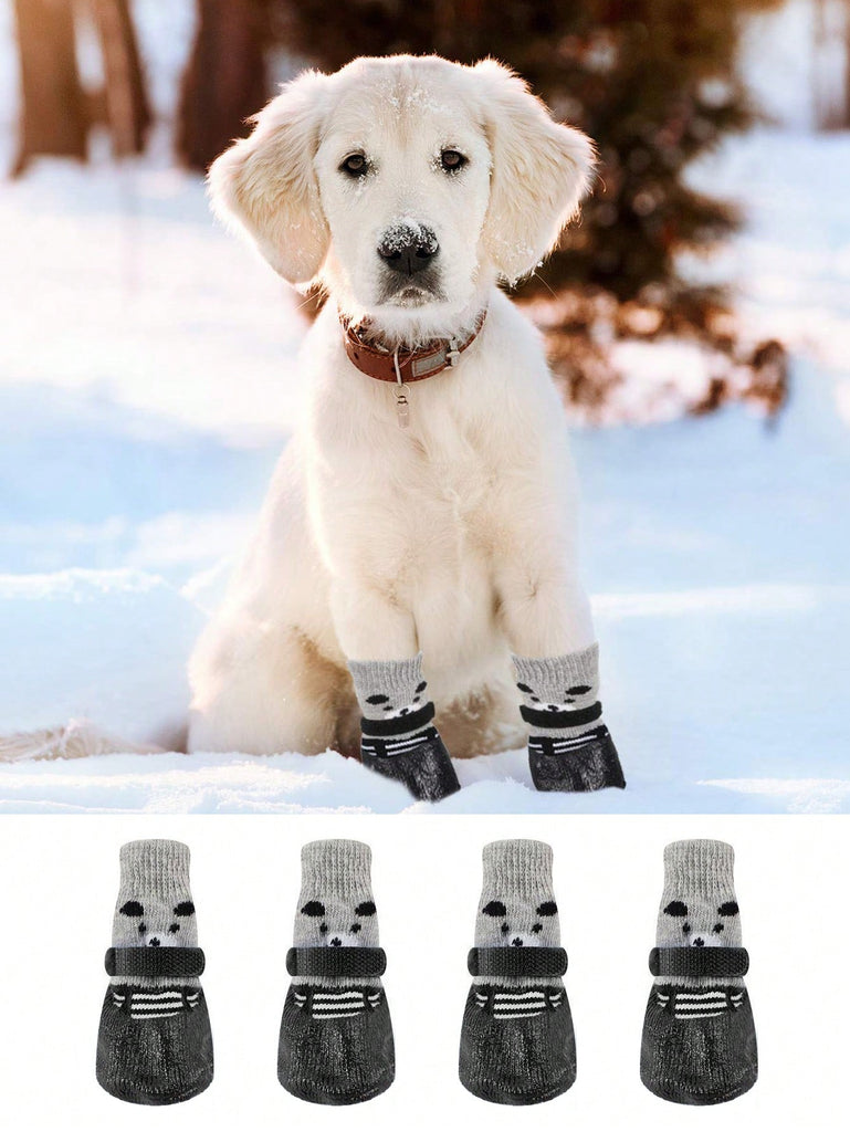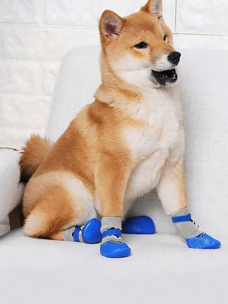 4pcs/Set Dog Cat Waterproof Shoes Socks, Pet Winter Boots, Rain Snow Dog Booties For Small Dog Anti-Slip, Anti-Dirt Puppy Shoes, Red