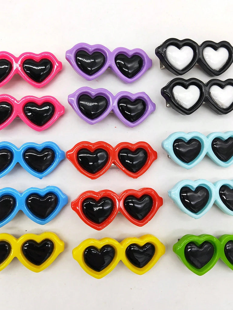 5/6/8/10pcs Random Cute Pet Glasses & Small Heart Shaped Hairpins Hair Accessories