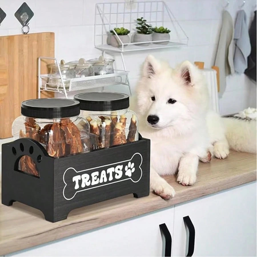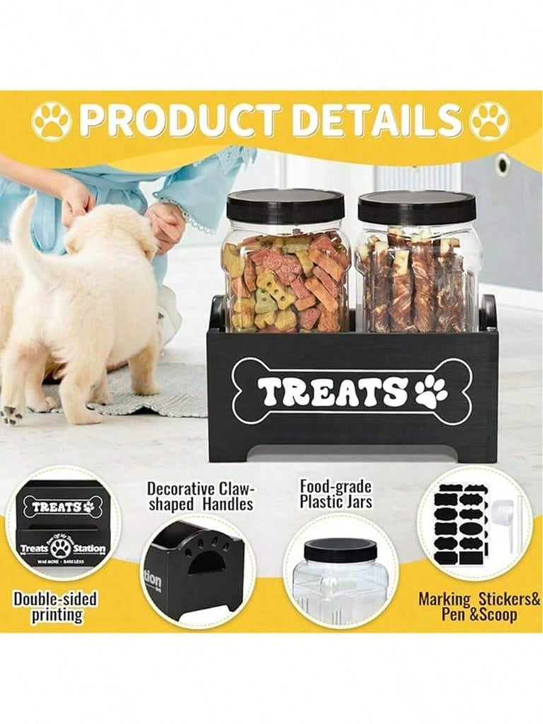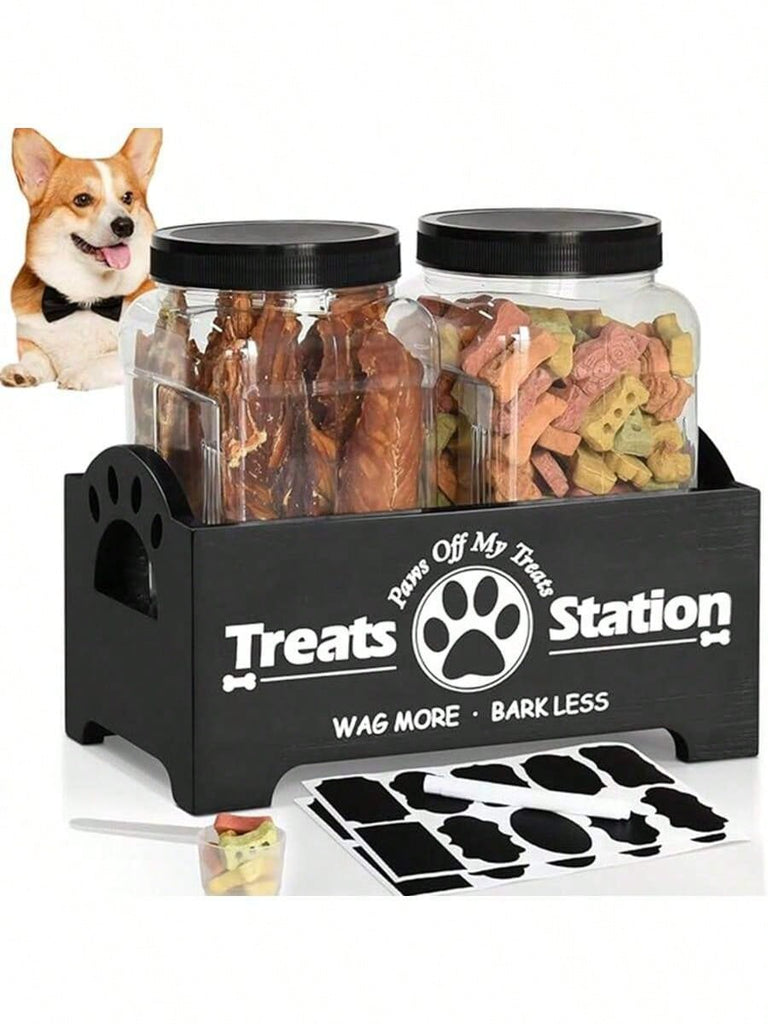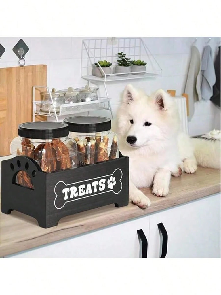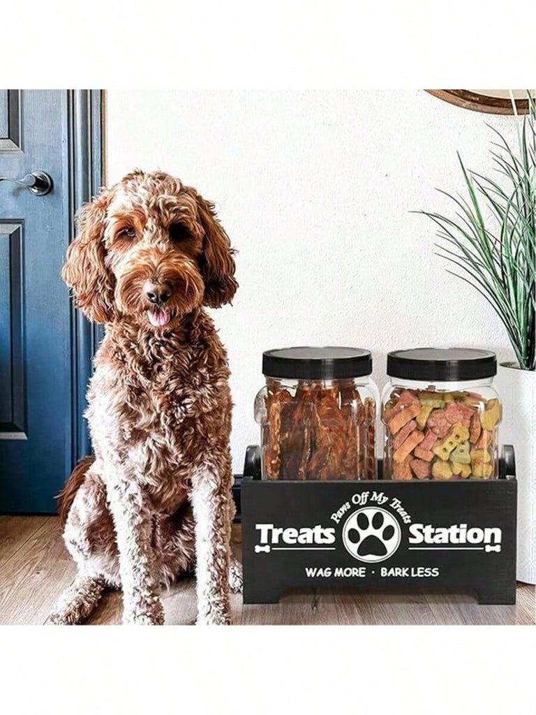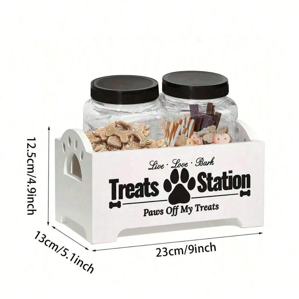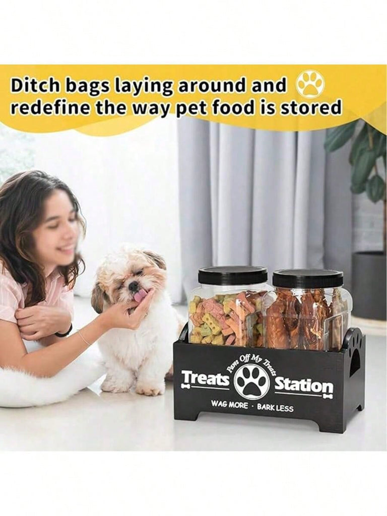 Dog Food Storage Container, Suitable For Countertops, Cat Food Storage Container With 2 Plastic Dog Treat Jars, Dog And Cat Food Storage Container, White Wooden Dog Food Container