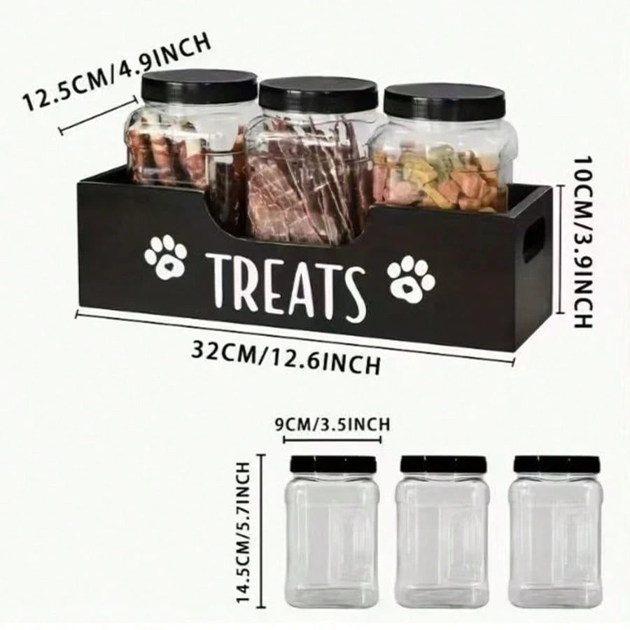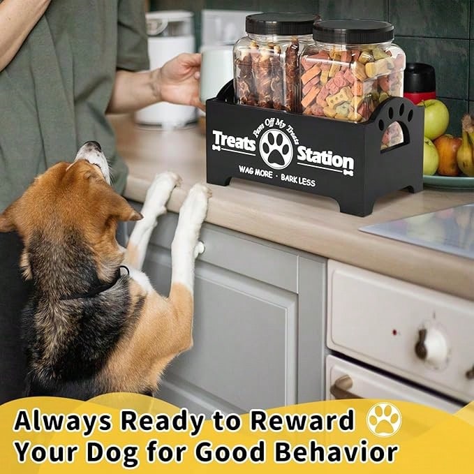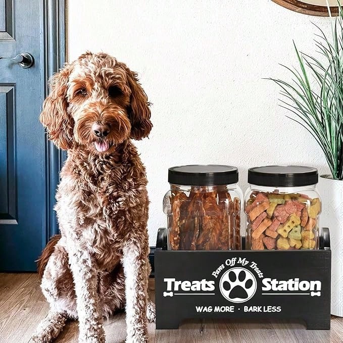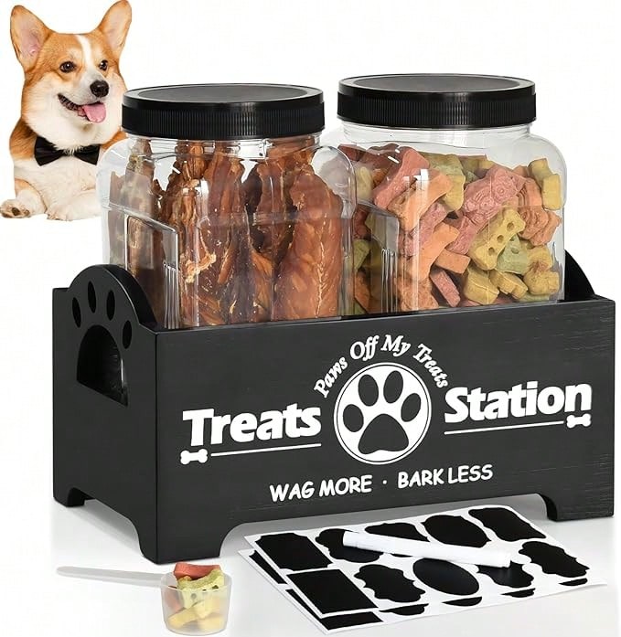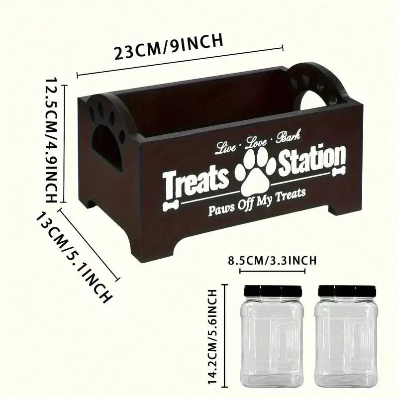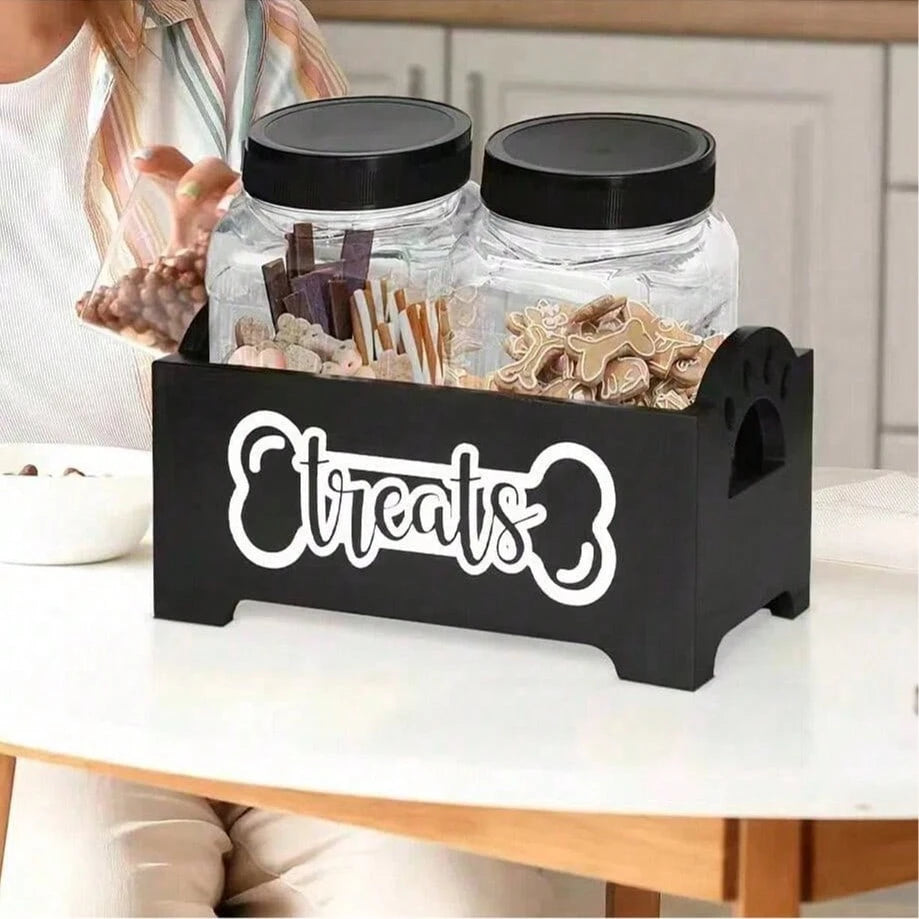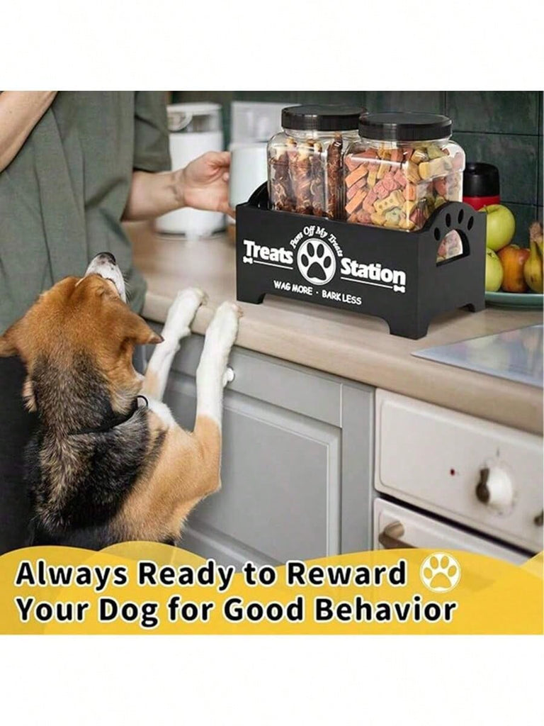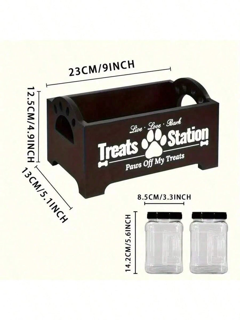 Dog Food Storage Container, Suitable For Countertops, Cat Food Storage Container With 2 Plastic Dog Treat Jars, Dog And Cat Food Storage Container, White Wooden Dog Food Container