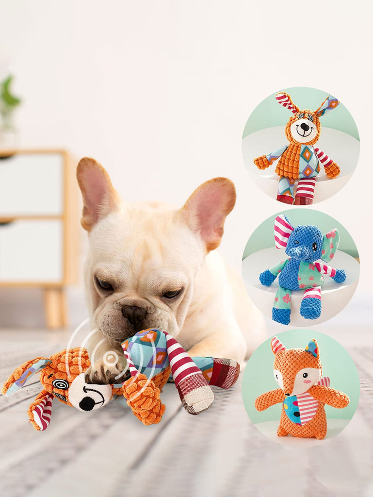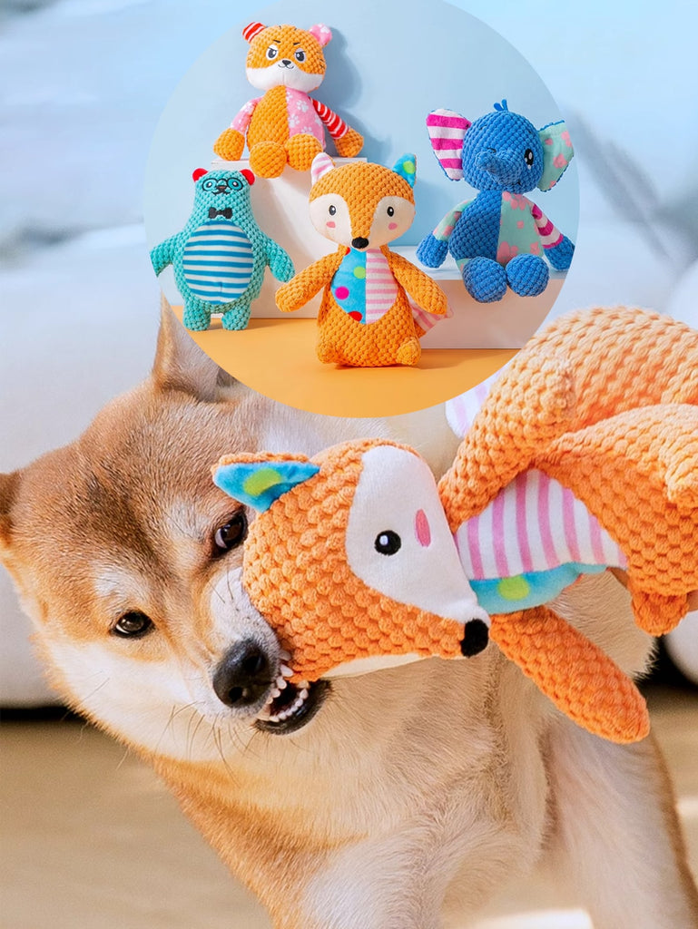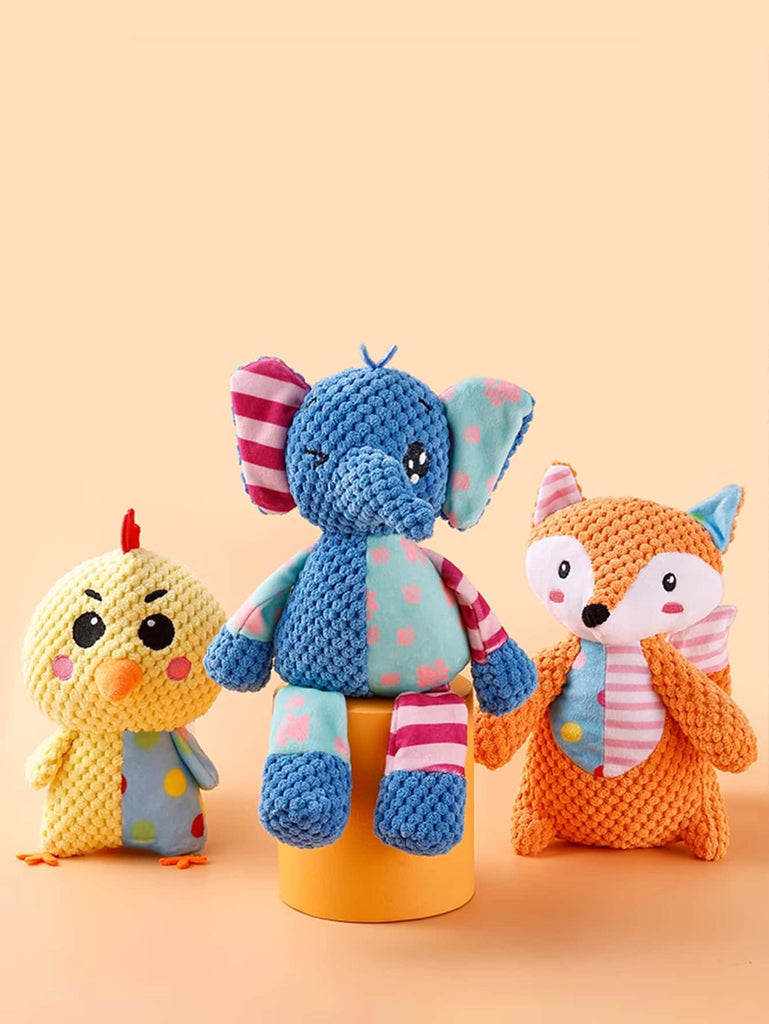Durable Squeaky Elephant,Fox Plush Dog Toys - Bite-Resistant, Teeth Cleaning Design For All Breeds Suitable Holiday Gifts For Small And Medium-Sized Dogs Sound Toy
