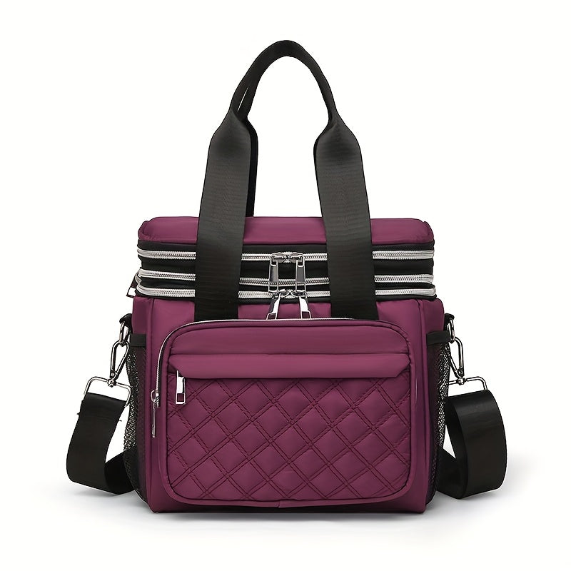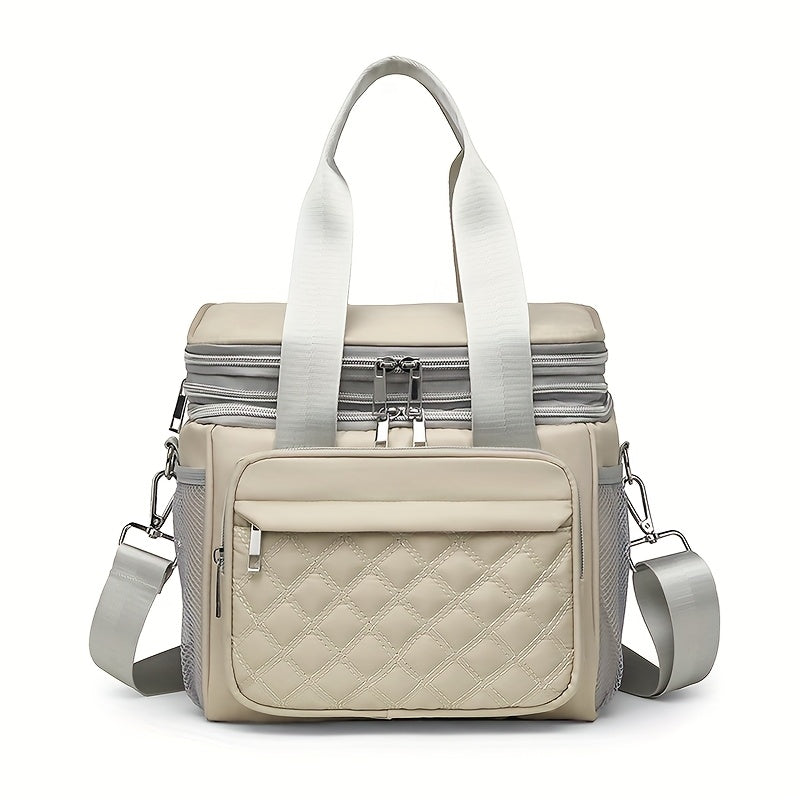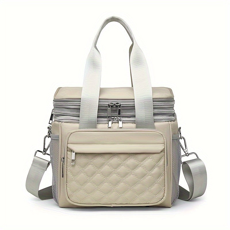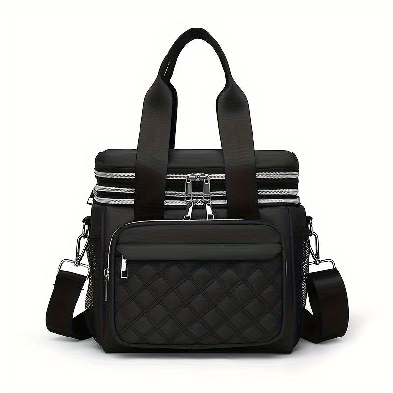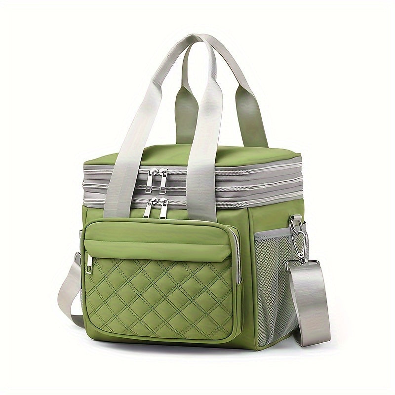 Double-Layer Rhombus Grid Large Capacity Multifunctional Outdoor Home Storage Tote Lunch Bag, Non-Food Contact
