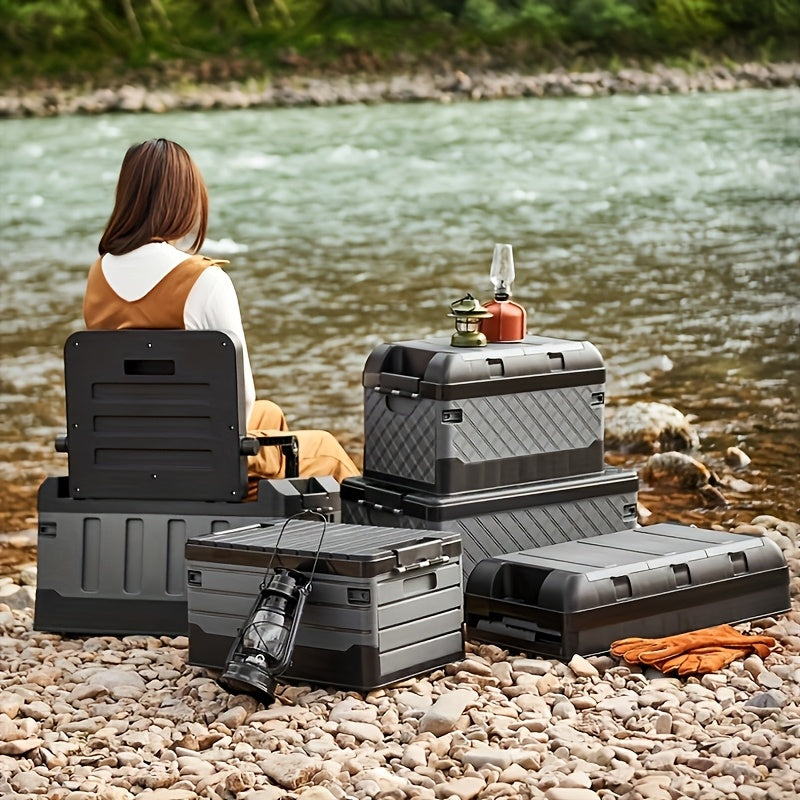 60L Large Capacity Collapsible Car Storage Box - Multi-Functional Clothes, Toys, and Camping Essentials Organizer, Fits Most Vehicles, Ideal for Outdoor, Fishing, Vehicle Interior - Durable PP Material, Universal Fit