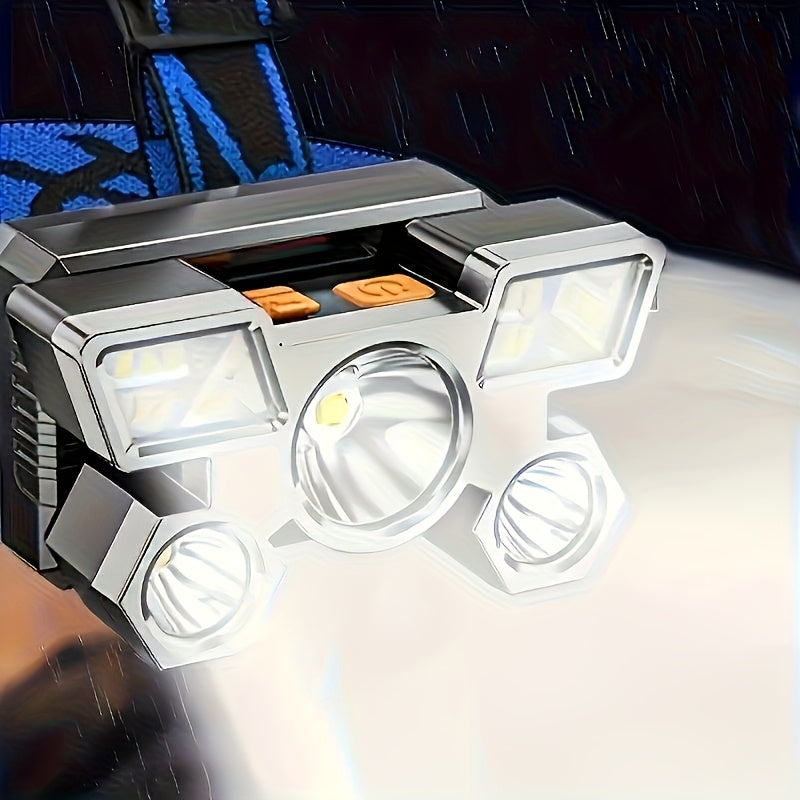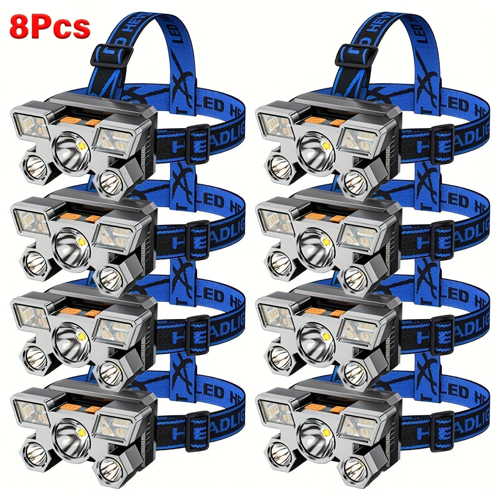 8pcs Portable 5LED Outdoor Headlamp with Built-in Battery, USB Rechargeable, Portable Work Light Headlamp for Traveling, Camping, Fishing, Hunting