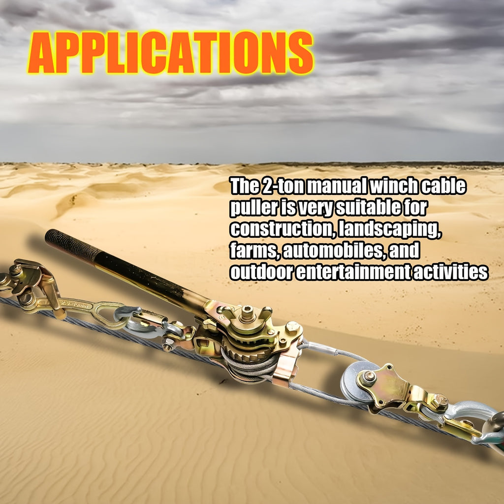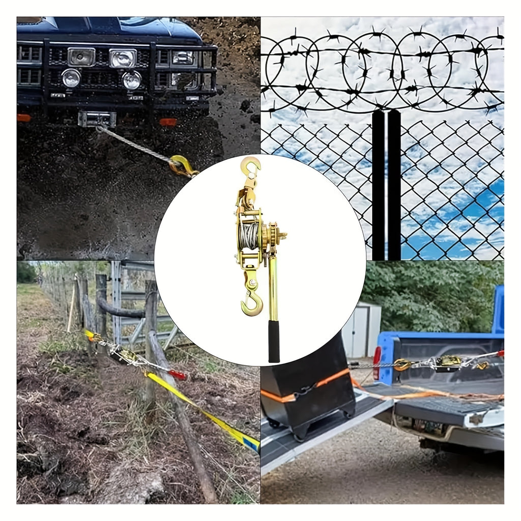 Heavy-Duty Manual Winch with 2 Hooks - Portable Tire Jack, Ideal for Road Vehicle Recovery, Tree Pulling, Fence Stretching, and Frame Support, Iron Construction, Vehicle Recovery Tool|Durable Construction|Iron Winch, Winch for Truck