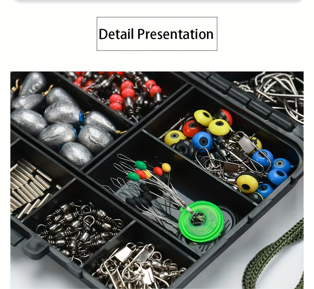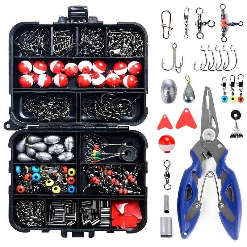 JSFUN Ultimate 263pcs Fishing Tackle Kit with Stainless Steel Pliers, Hooks & Weight Sliders - Complete Gear Box Set for Anglers