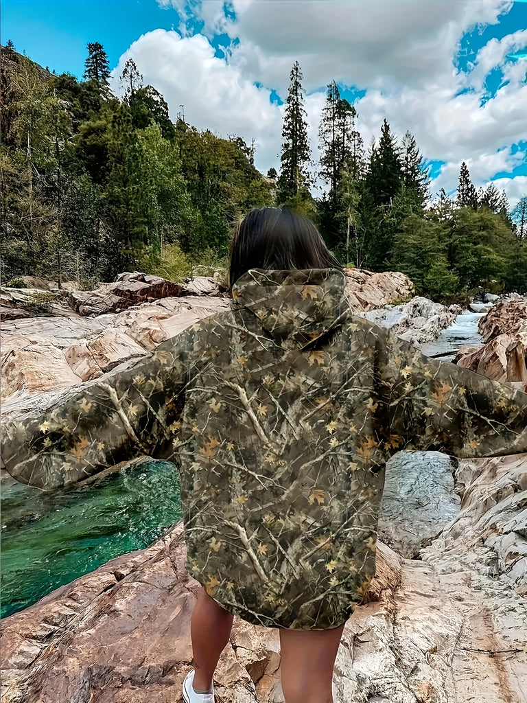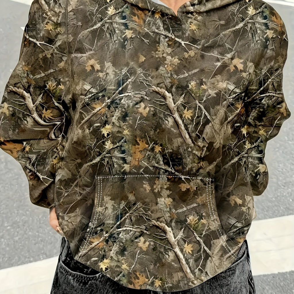 Women's Camo Print Hoodie - Cozy Fall/Winter Streetwear with Digital Tree Branch Design, Long Sleeve Pullover, Polyester Blend, Machine Washable, Oversized Hoodie