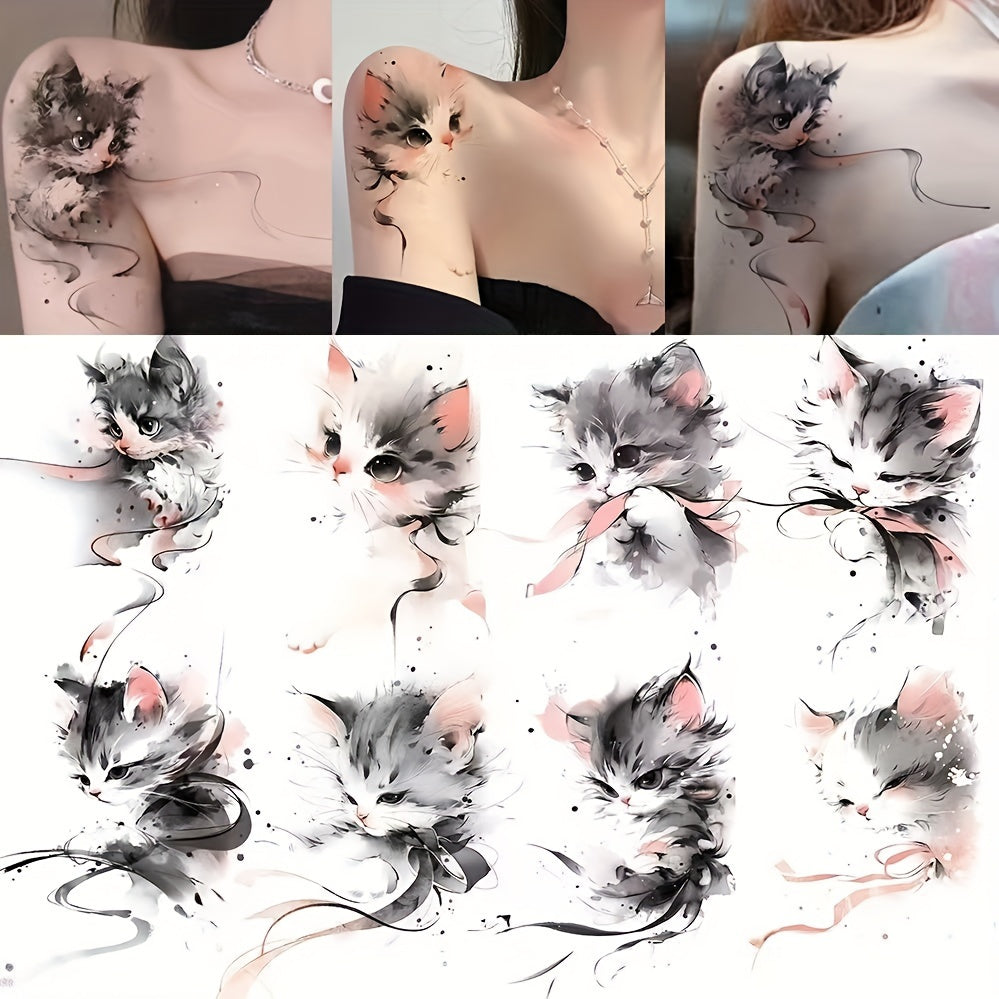 8 Cat Tattoo Stickers for Featuring Cute Kittens