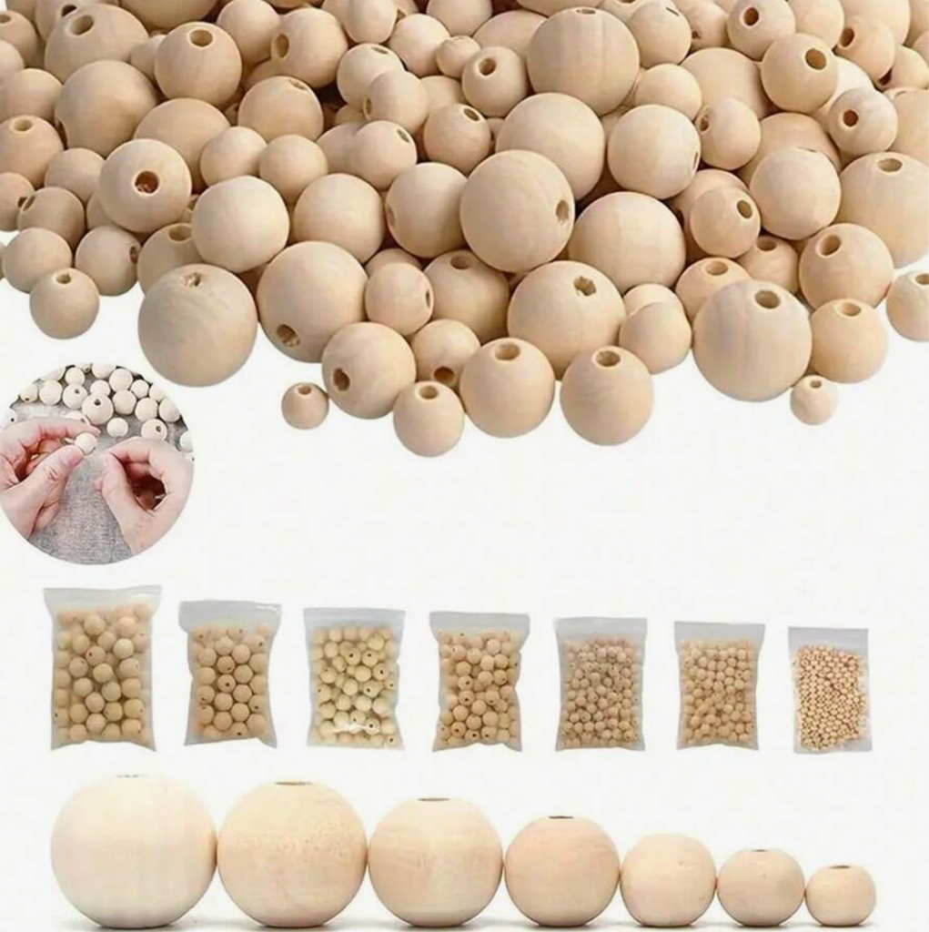 500pcs Handmade Natural Wooden Beads, 10-25mm Size Options