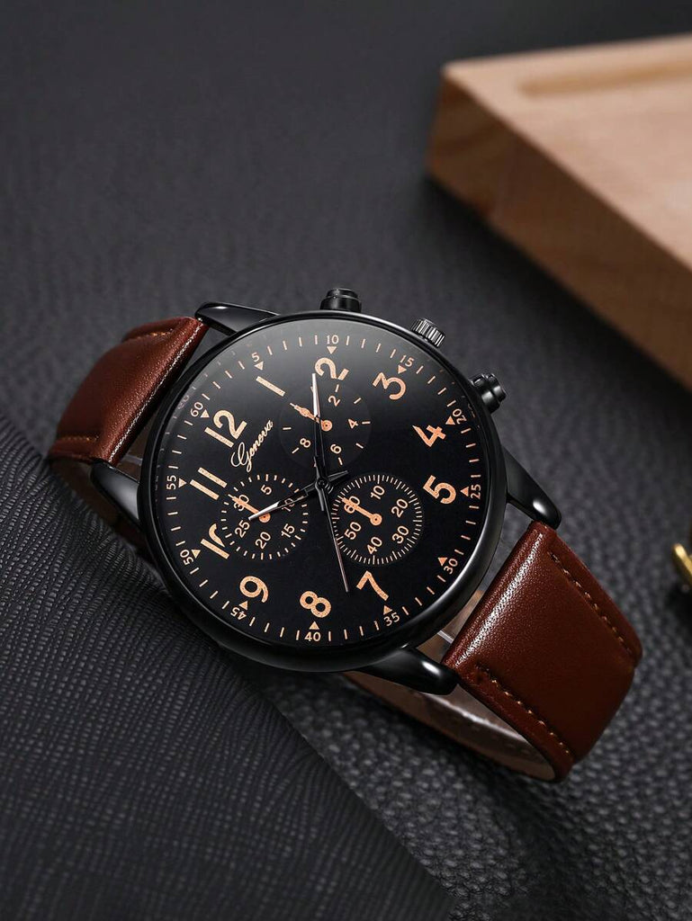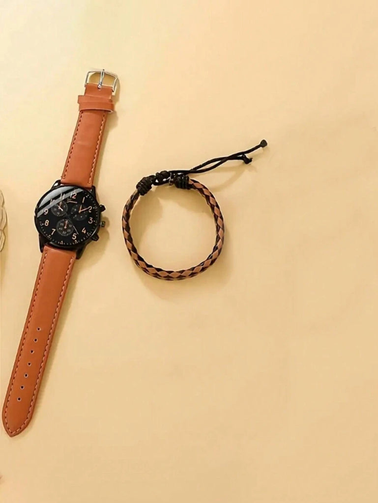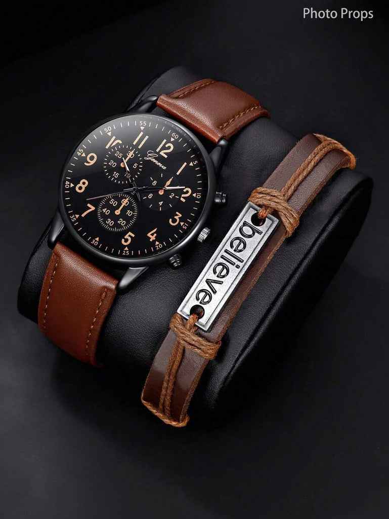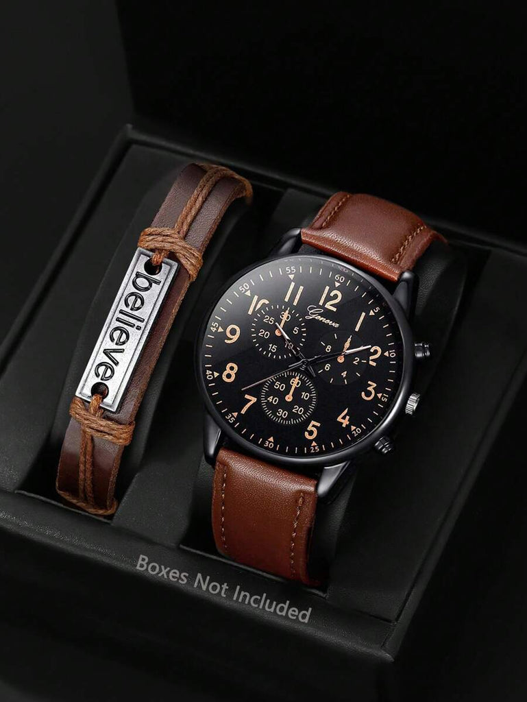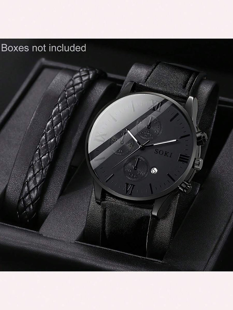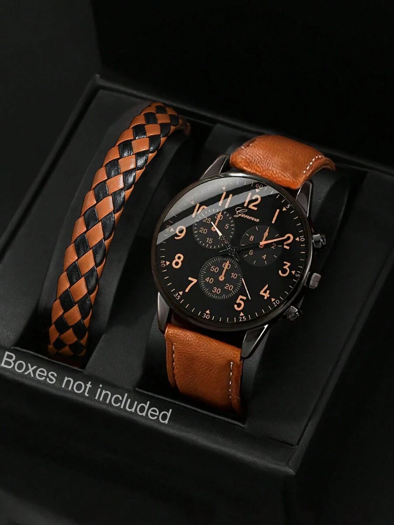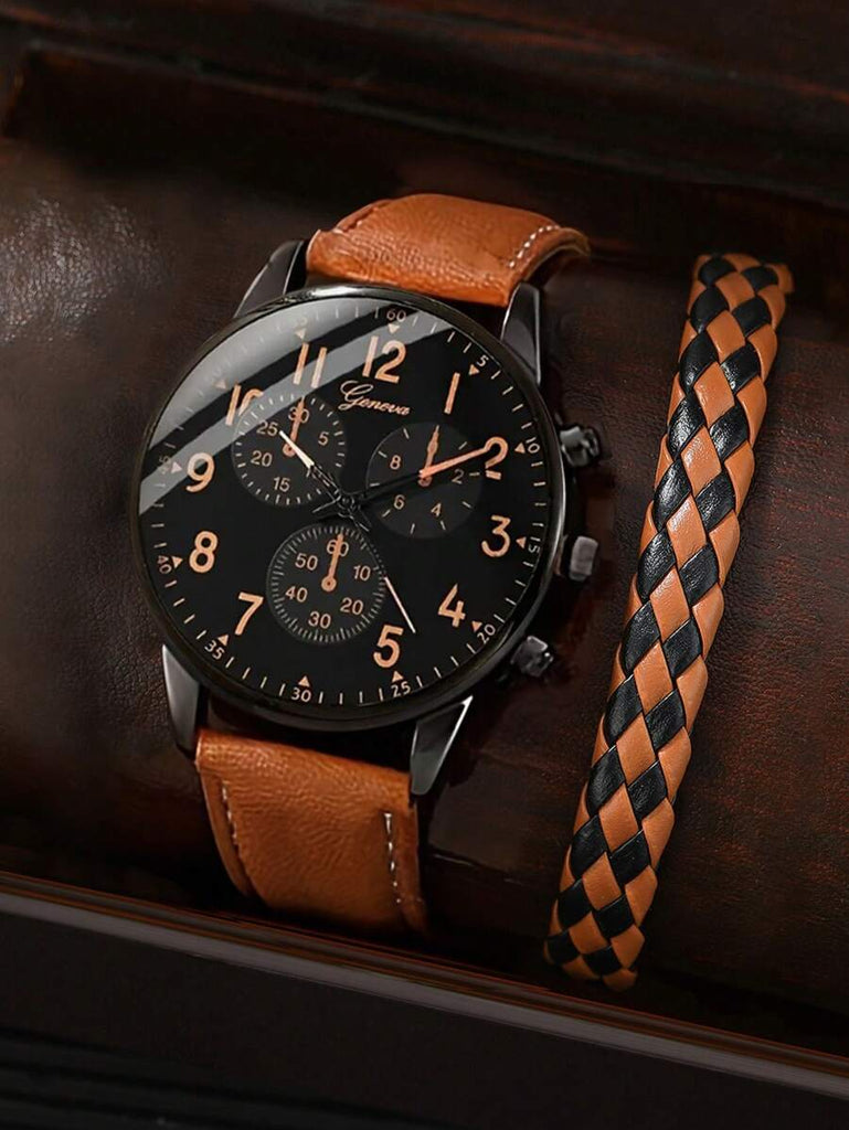 1 Set Men's Watch Sports Leisure Fashion Digital Round Dial Quartz Watch And PU Woven Wrap Wristband Perfect For Everyday Wear, Birthday Gifts, Parties, Holiday Gatherings, And As The Ideal Gift For Yourself Or Friends Boxes Not Included