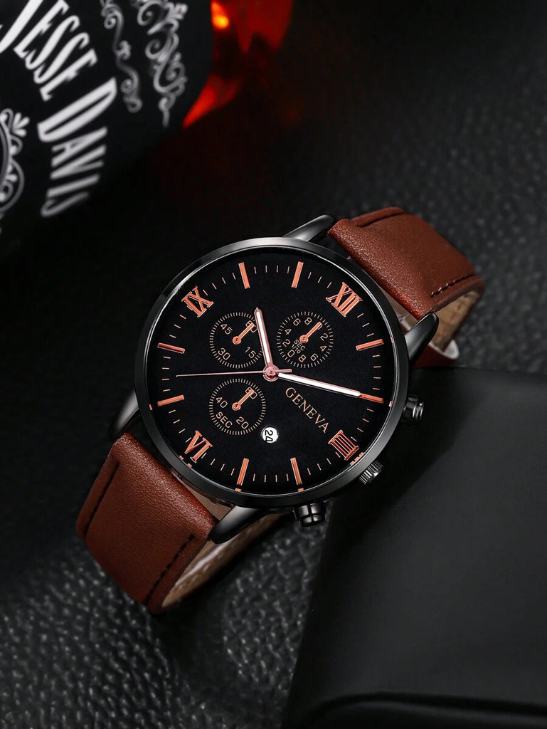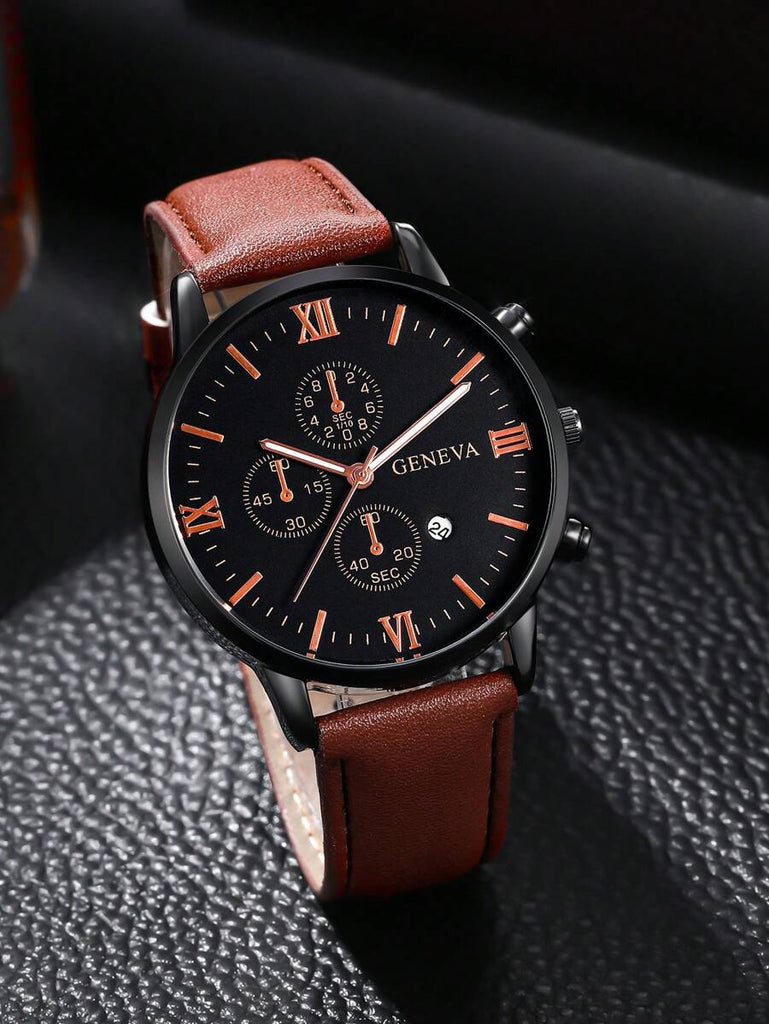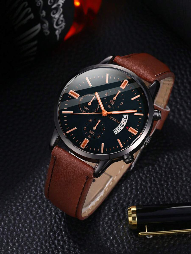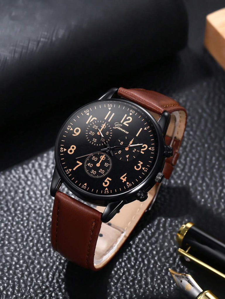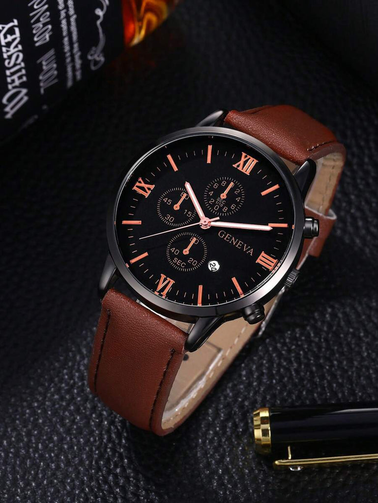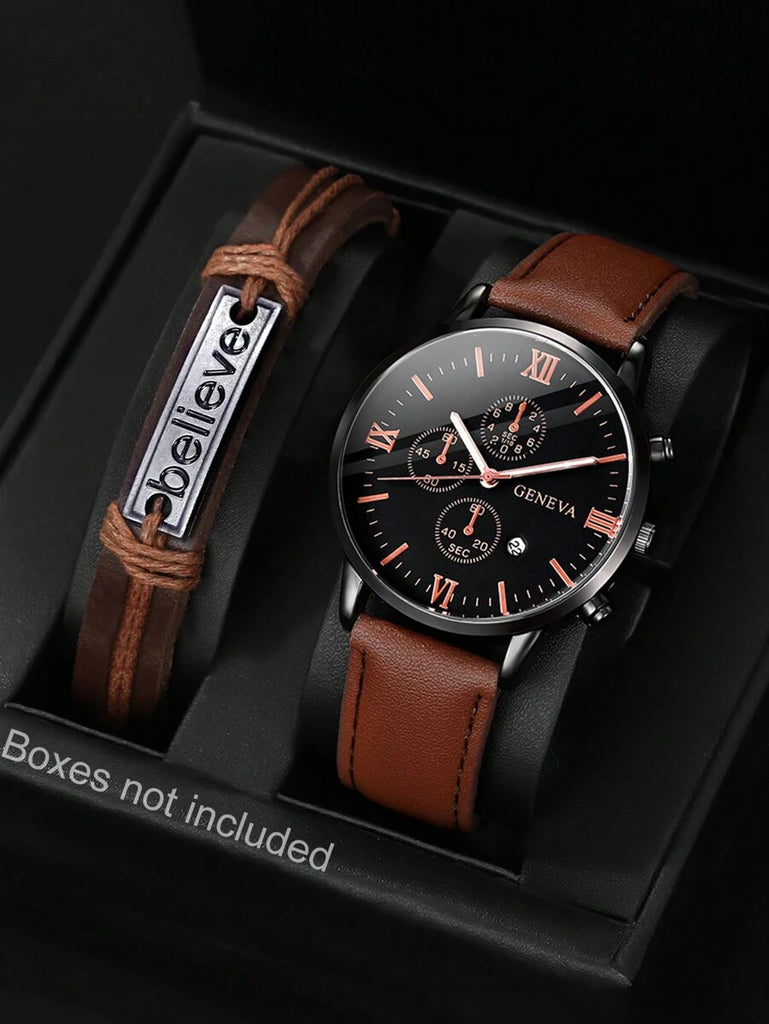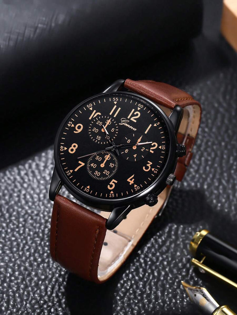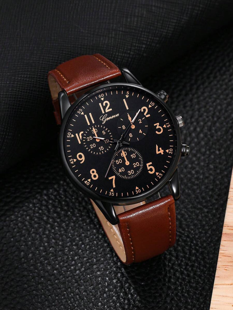 1 Set Men's Watch Sports Leisure Fashion Digital Round Dial Quartz Watch And PU Woven Wrap Wristband Perfect For Everyday Wear, Birthday Gifts, Parties, Holiday Gatherings, And As The Ideal Gift For Yourself Or Friends Boxes Not Included