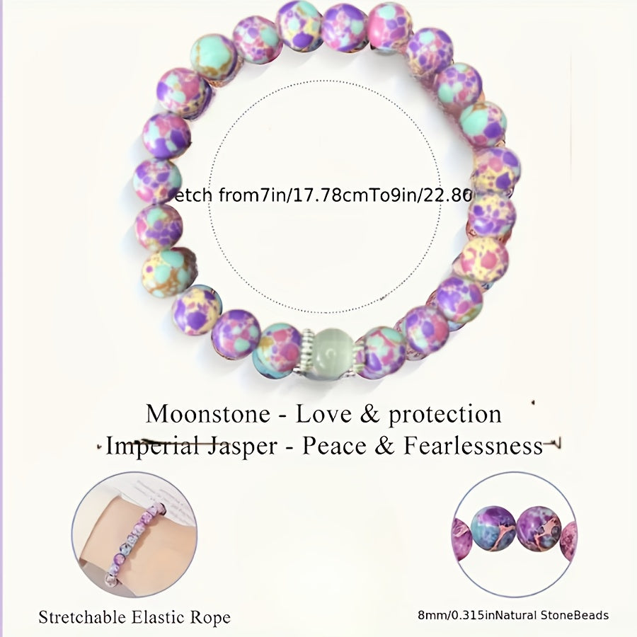1 stretchable bracelet, Bohemian style, with purple, blue, and pink marble beads, white stone center decoration, perfect for daily wear and gift giving, Mother's Day, various parties, Christmas