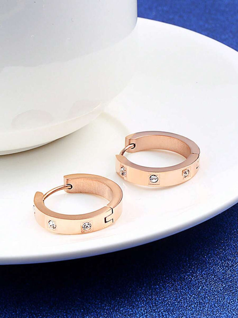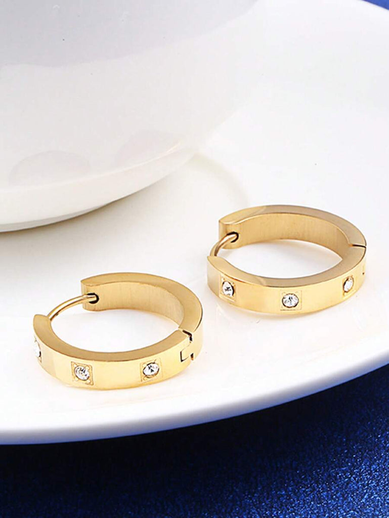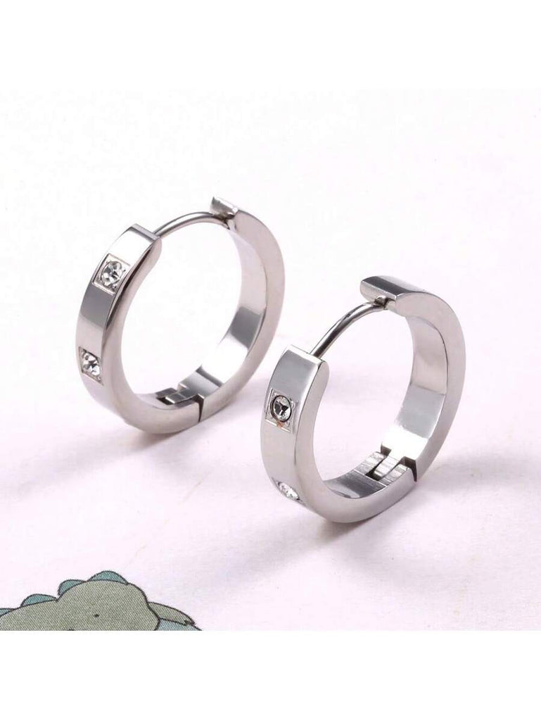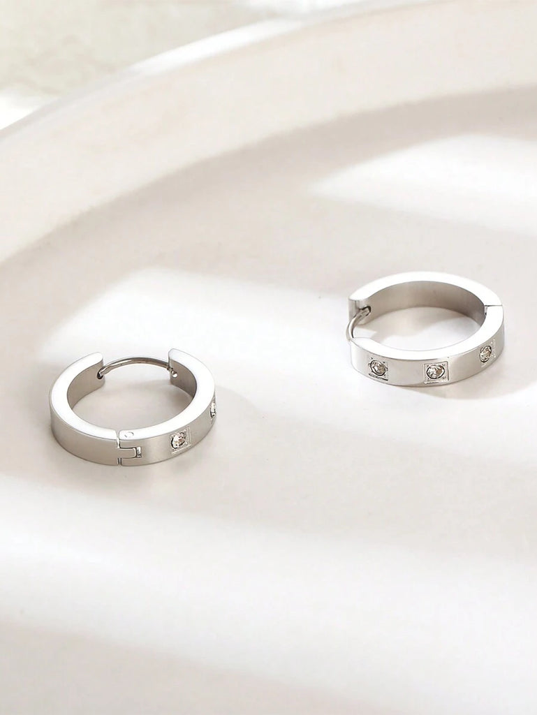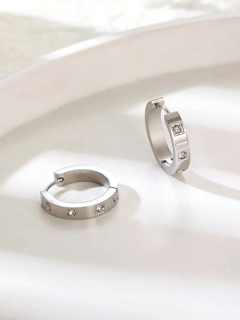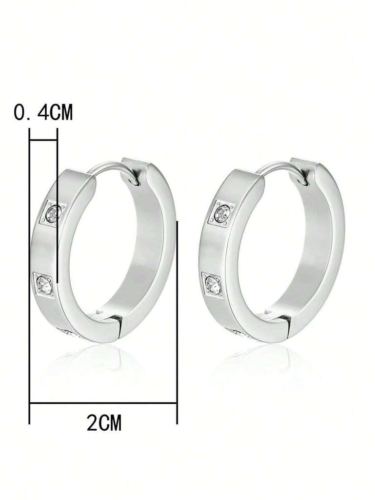1pair Fashionable Stainless Steel Cubic Zirconia Decor Hoop Earrings For Women For Daily Decoration