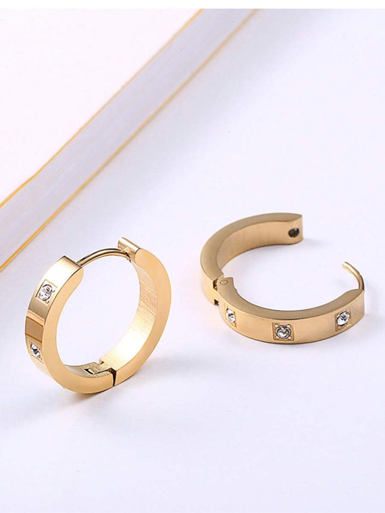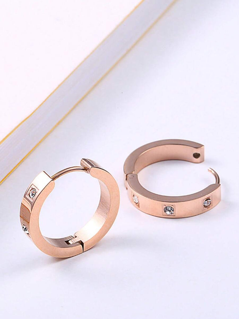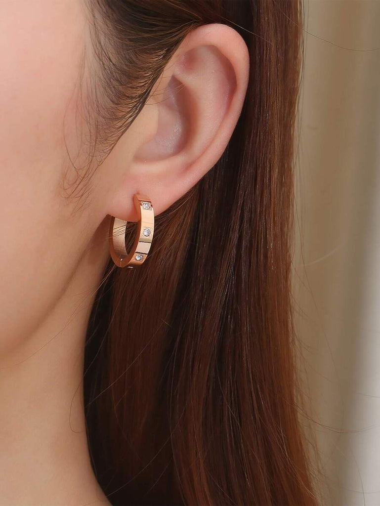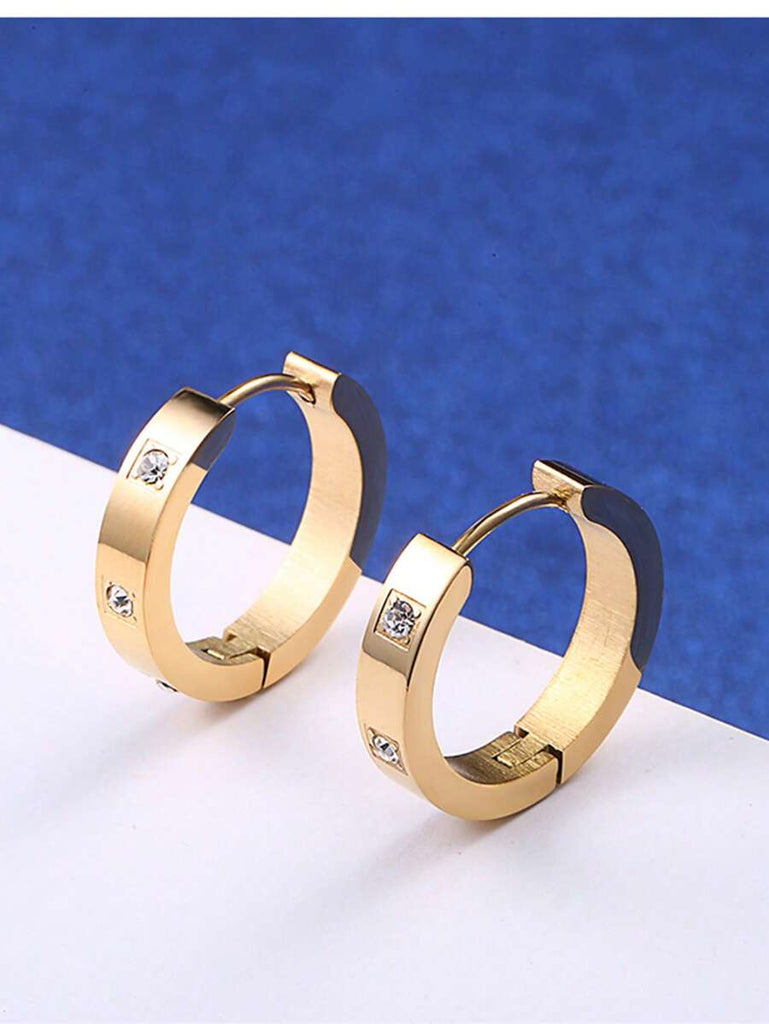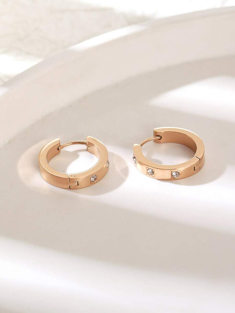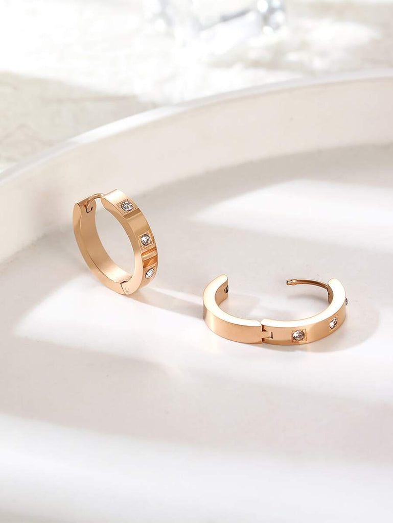 1pair Fashionable Stainless Steel Cubic Zirconia Decor Hoop Earrings For Women For Daily Decoration