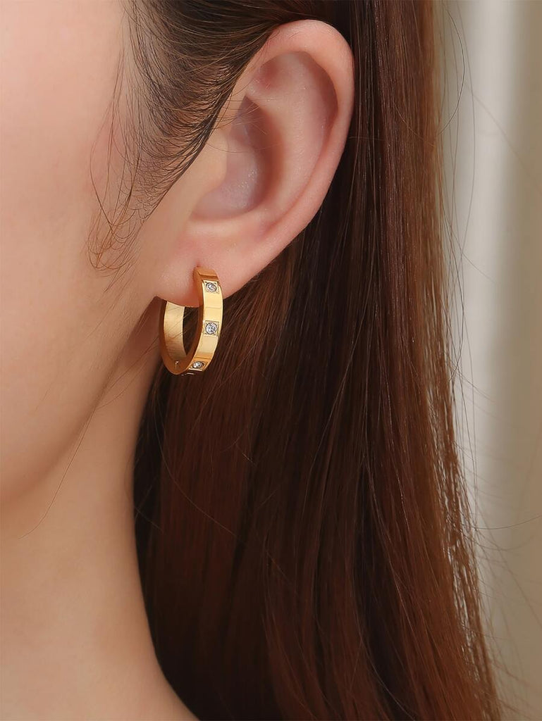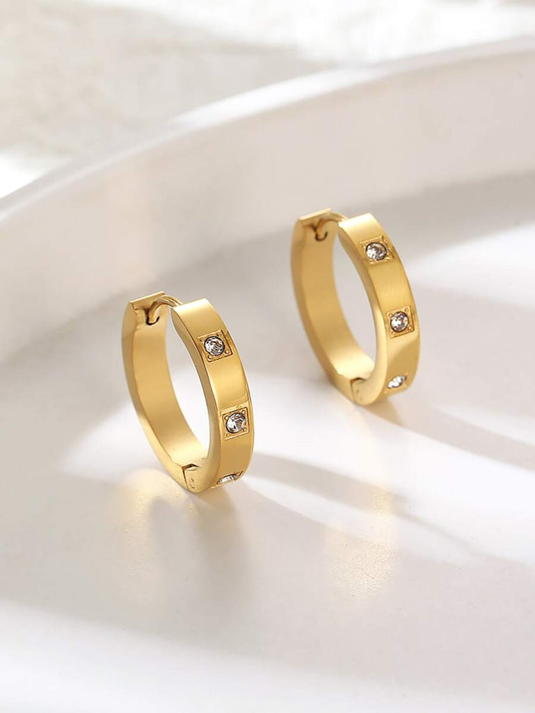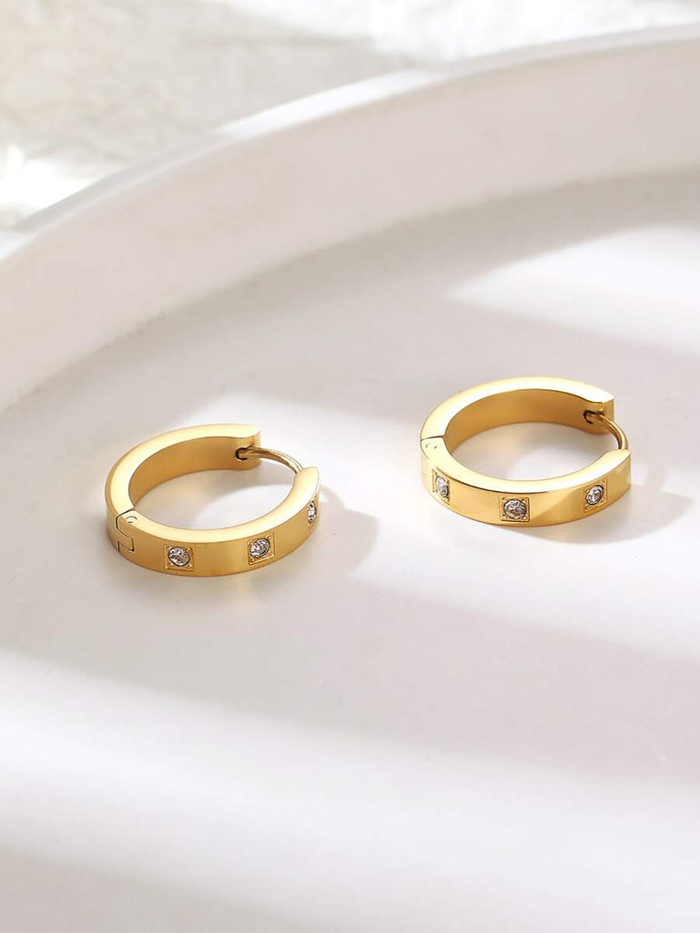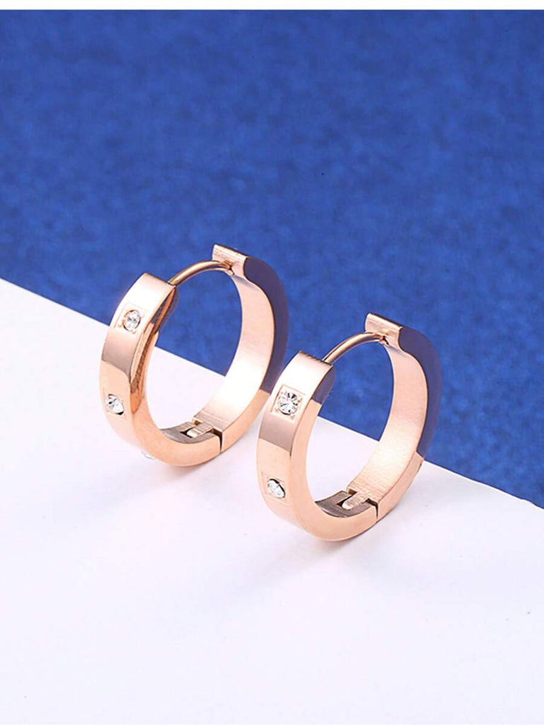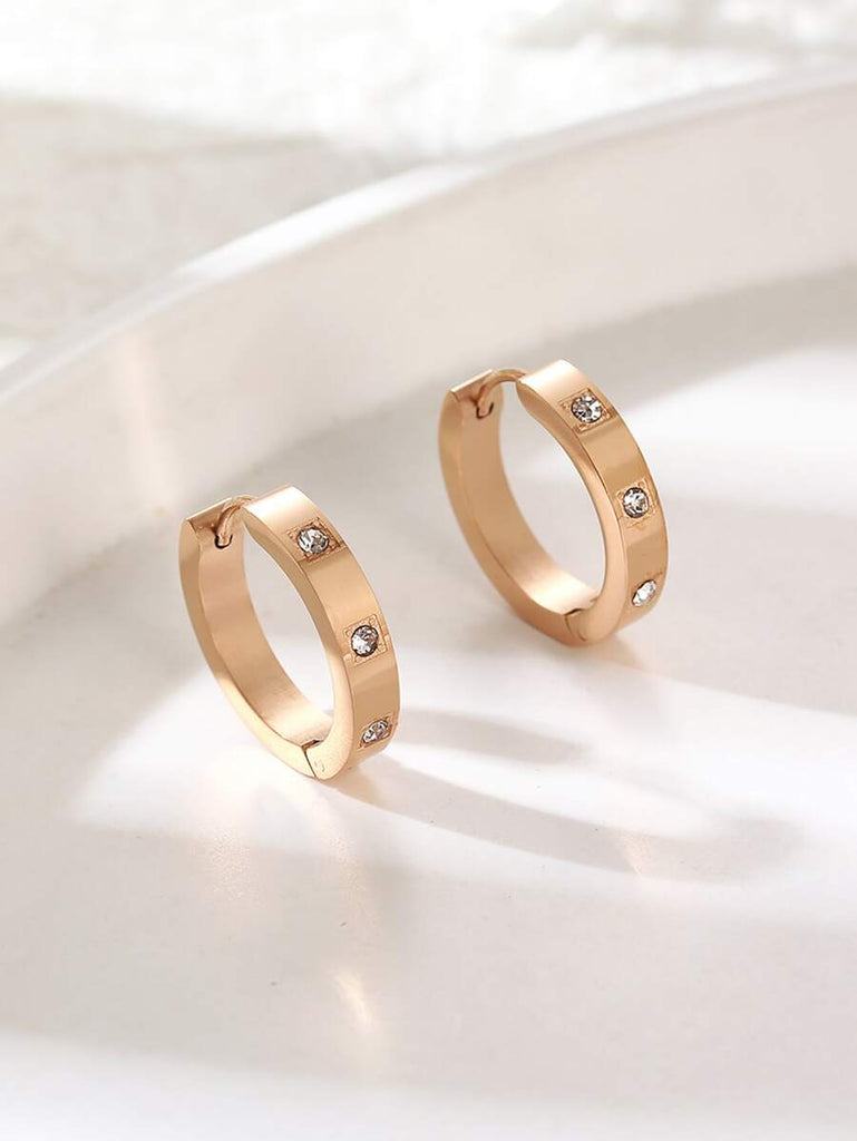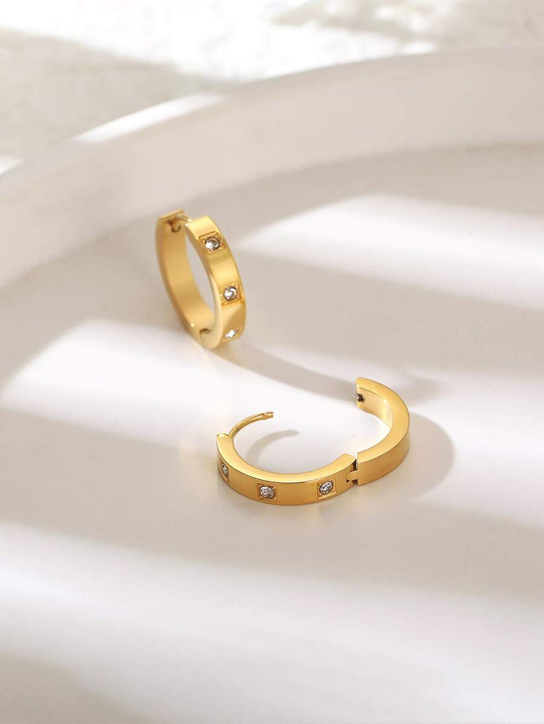 1pair Fashionable Stainless Steel Cubic Zirconia Decor Hoop Earrings For Women For Daily Decoration