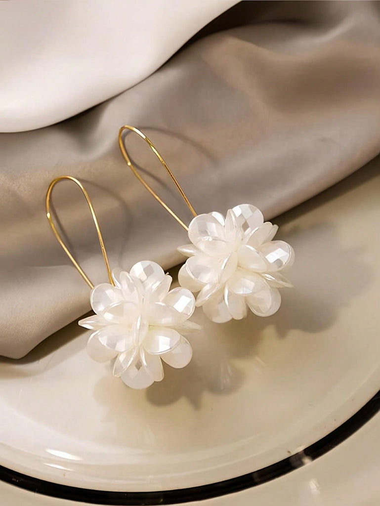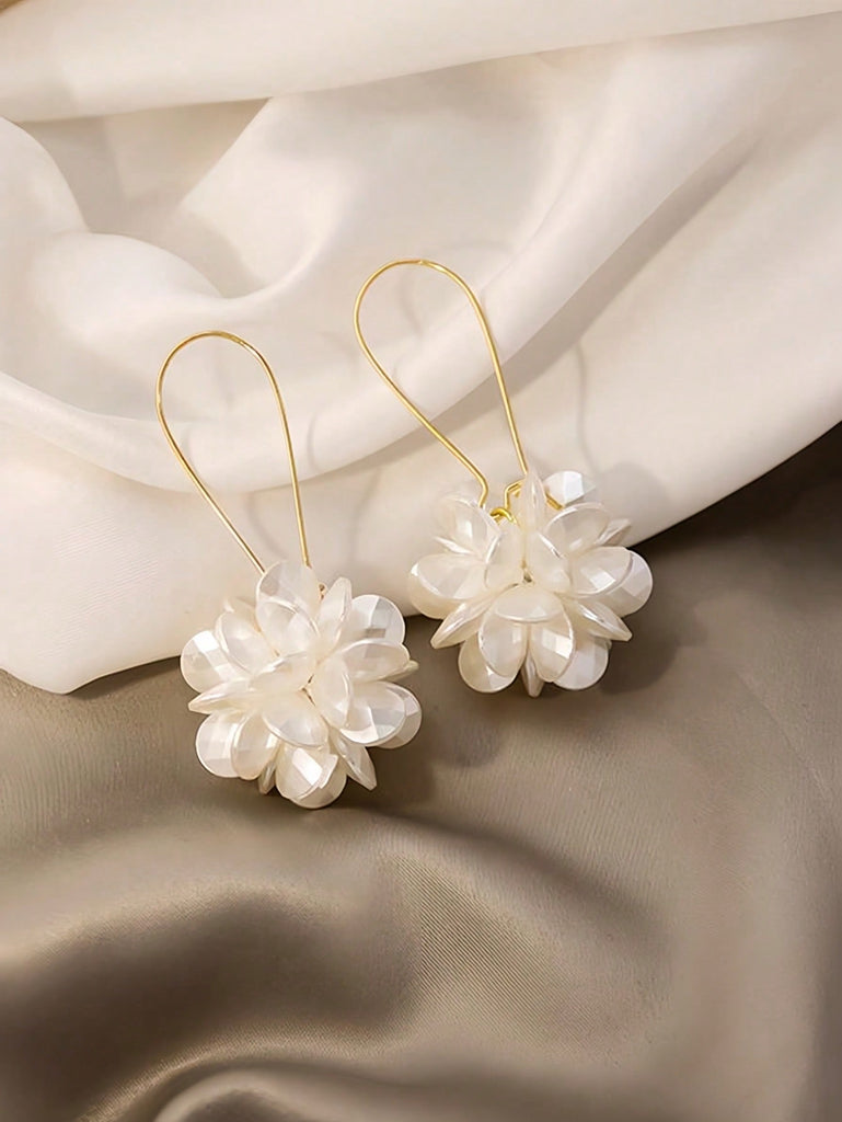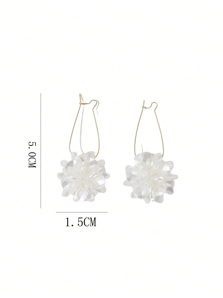 1pair Fashionable White Petals Long Flower Ball & Geometric Pattern Earrings Suitable For Women's Daily Wear Valentines
