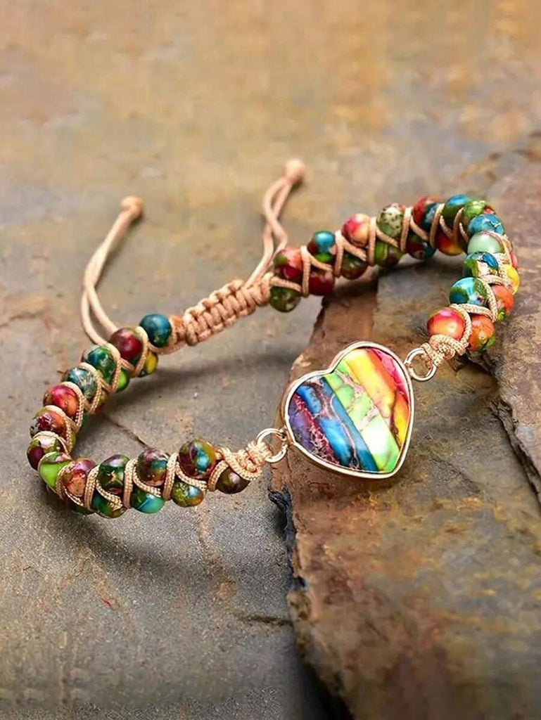 1PC Boho Natural Emperor Stone Love Bracelet With Adjustable Double Layer Winding Bracelet