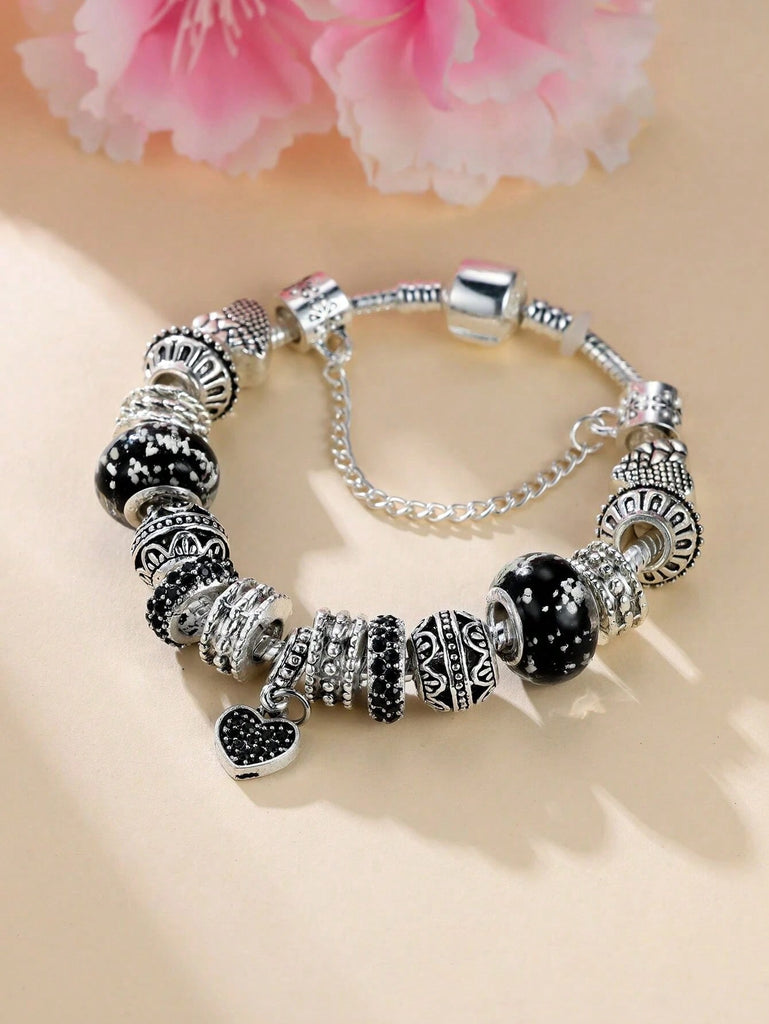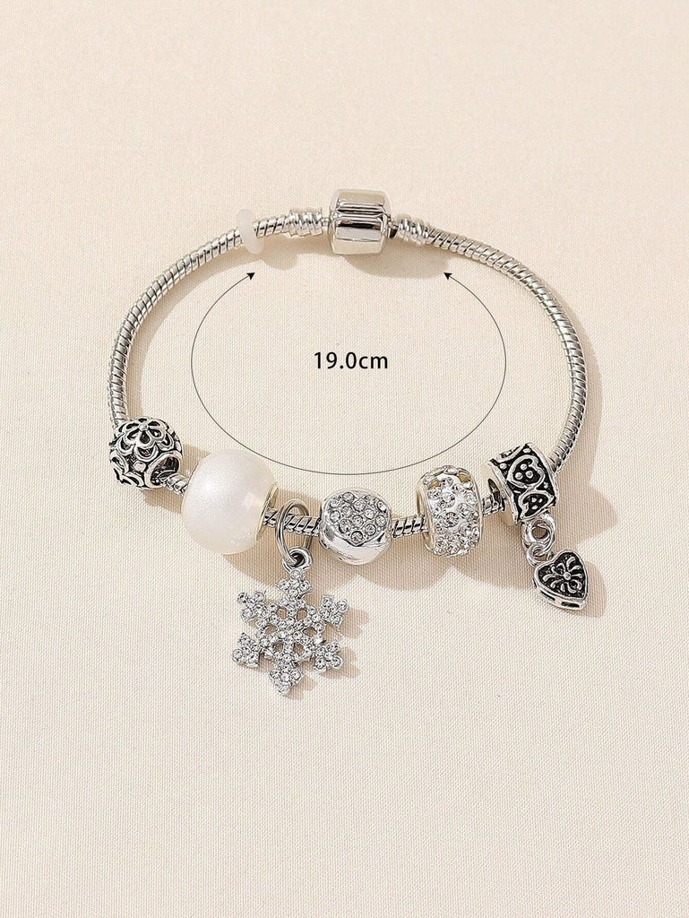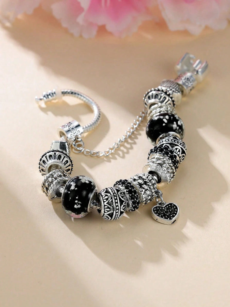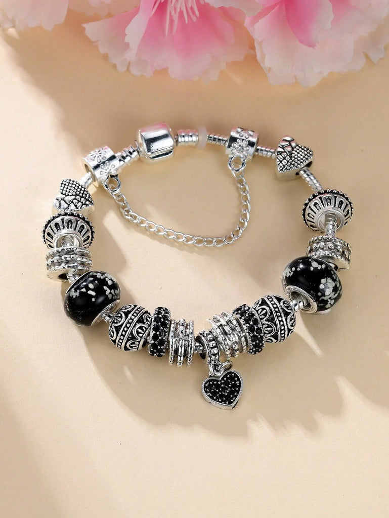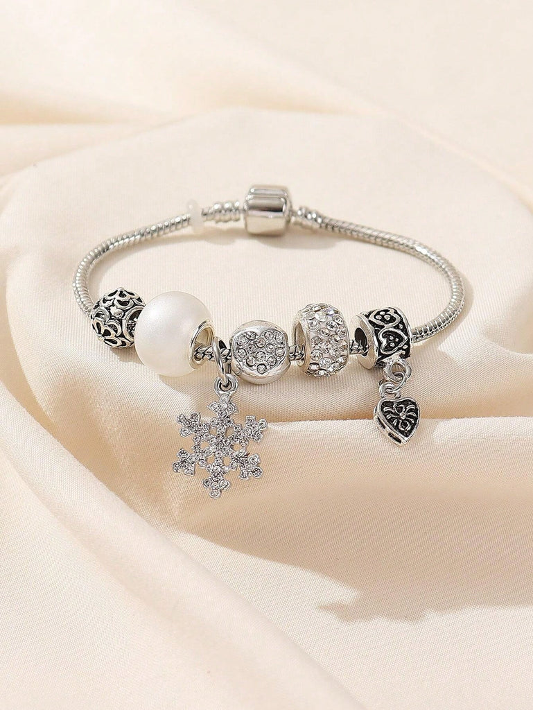 1pc Copper Heart & Flower Shaped Rhinestone Puzzle Charm Bracelet For Women, Cute & Stylish Jewelry, Dating Gift Valentines,Mom,Mother,Mother's Day,Gift