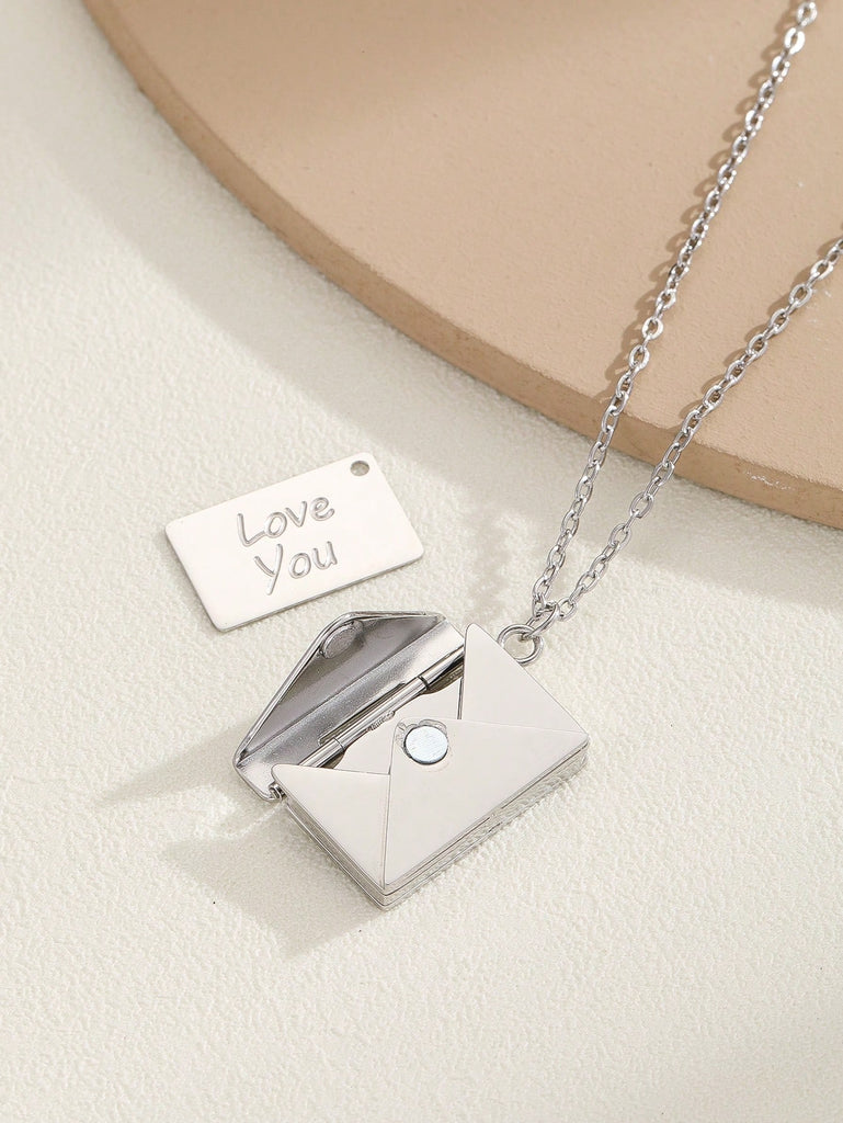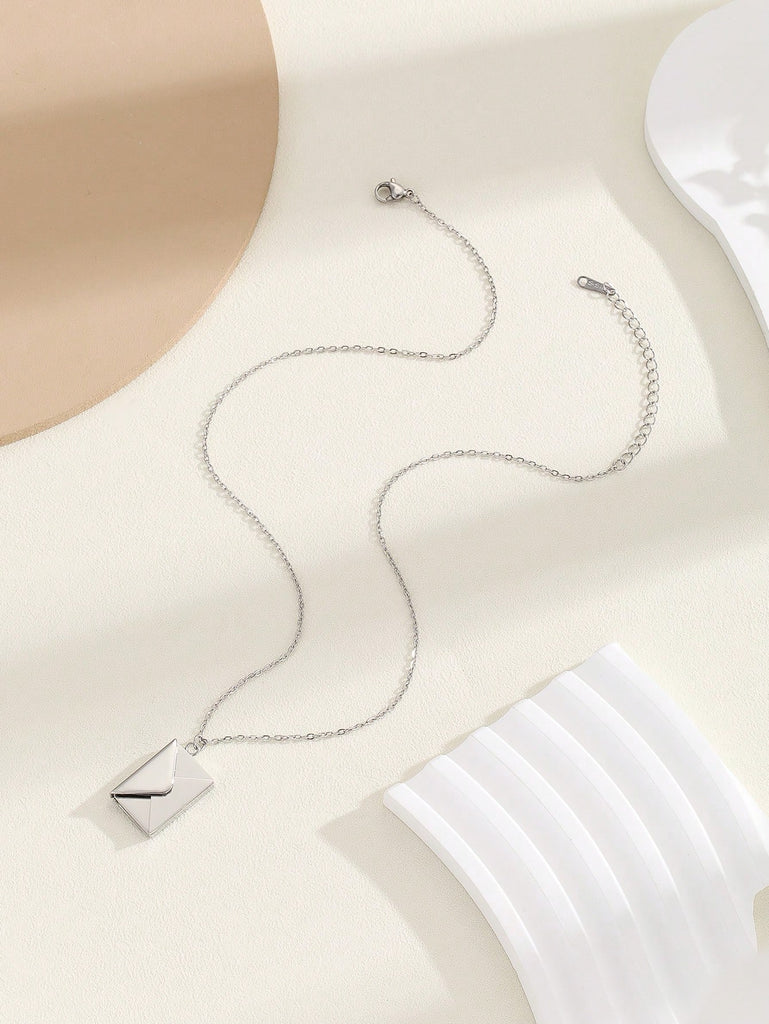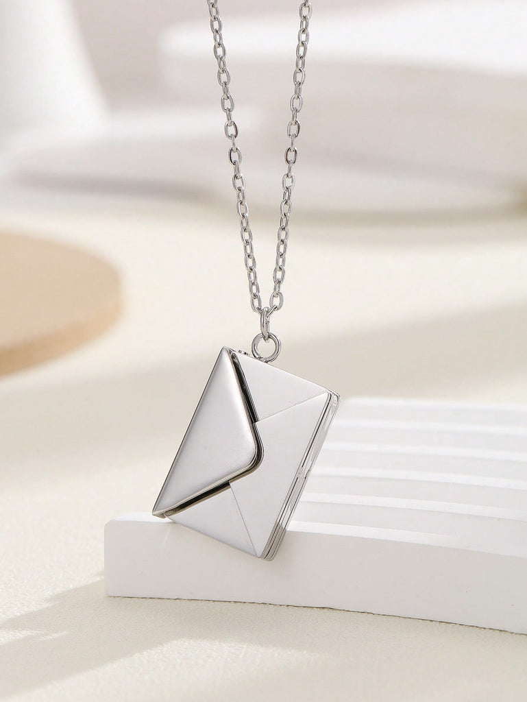 1pc Creative Stainless Steel Envelope Shaped Pendant Necklace