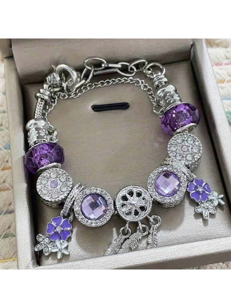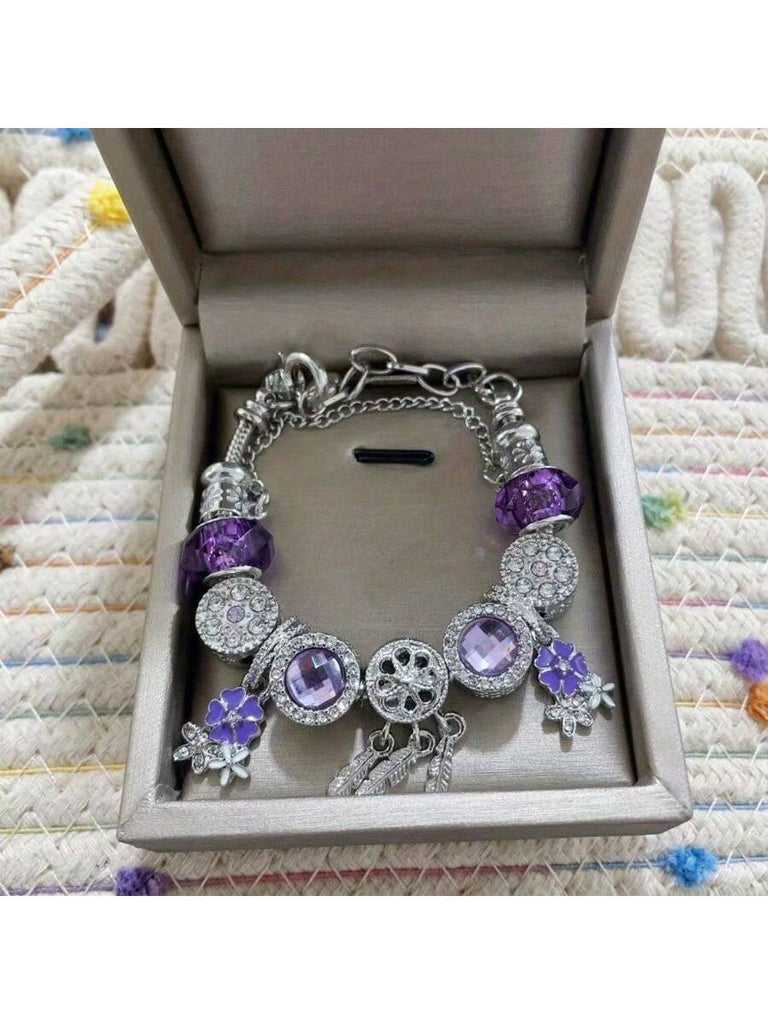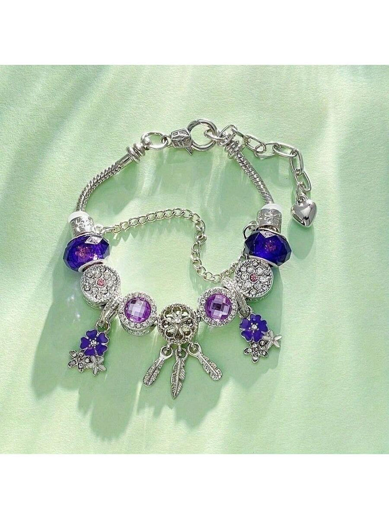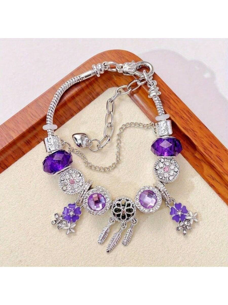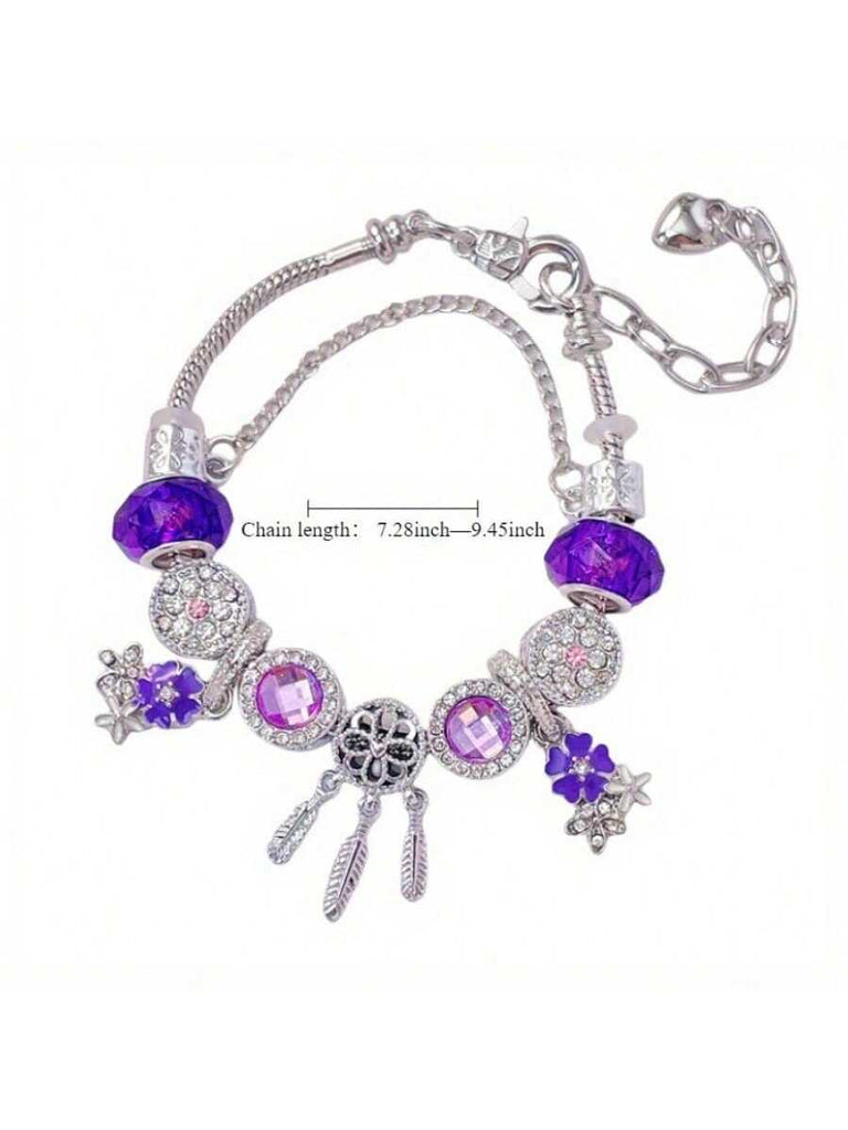 1pc Dreamcatcher Decor Purple Beads Sakura Charm Adjustable Snake Chain Bracelet, Charming Bohemian Bead Jewelry Accessory, Suitable For Various Occasions & As Gift