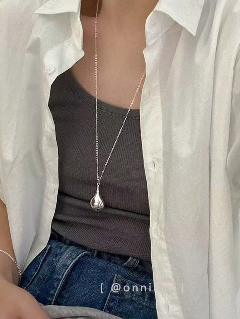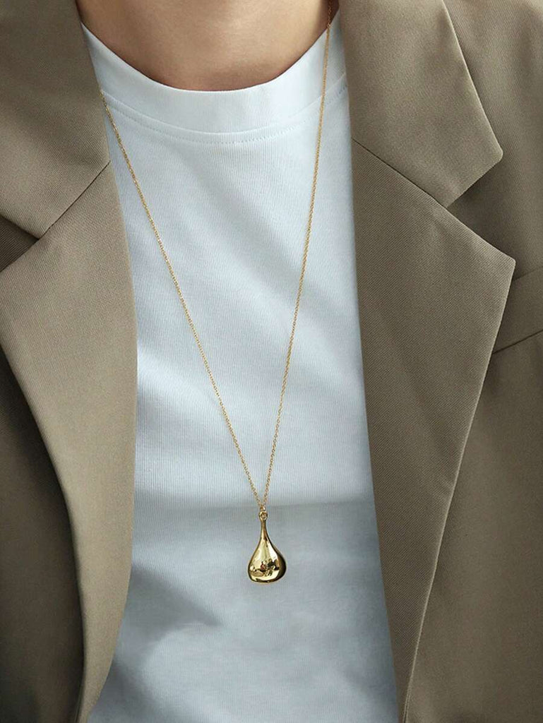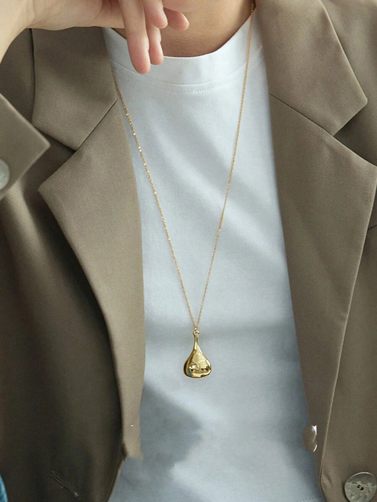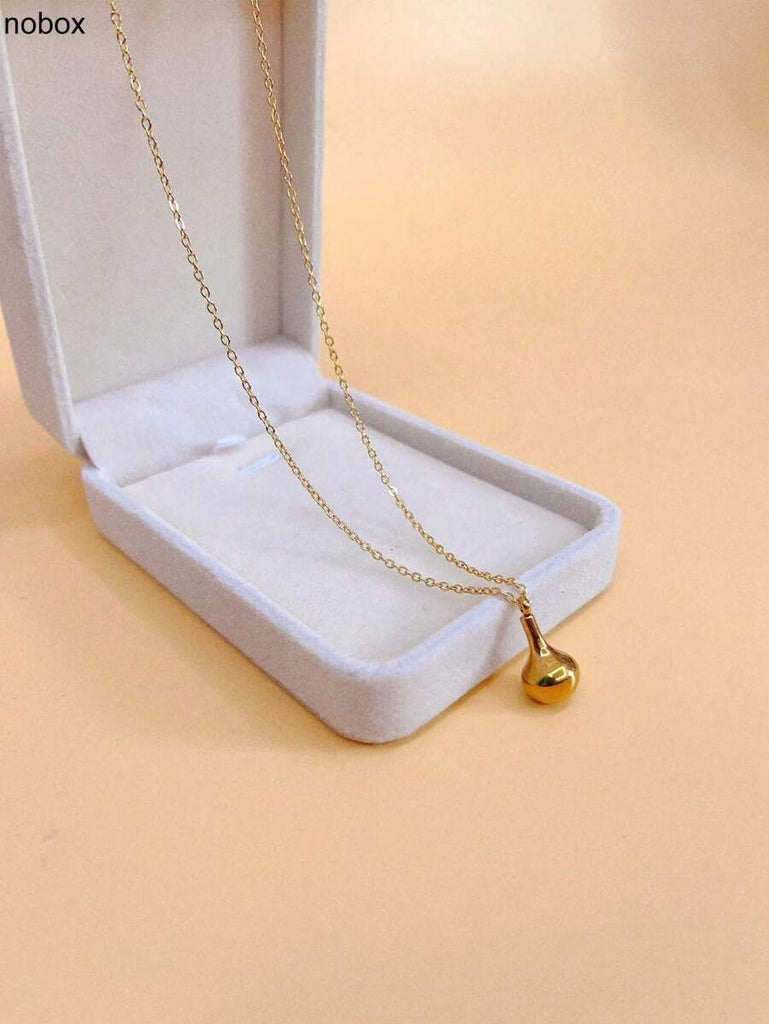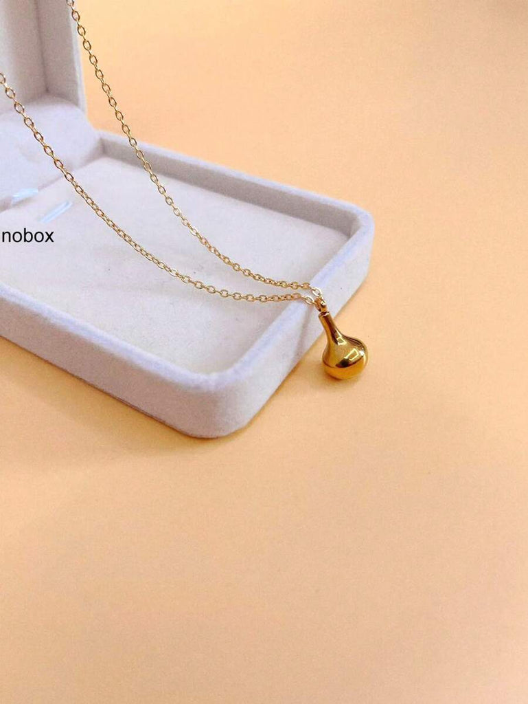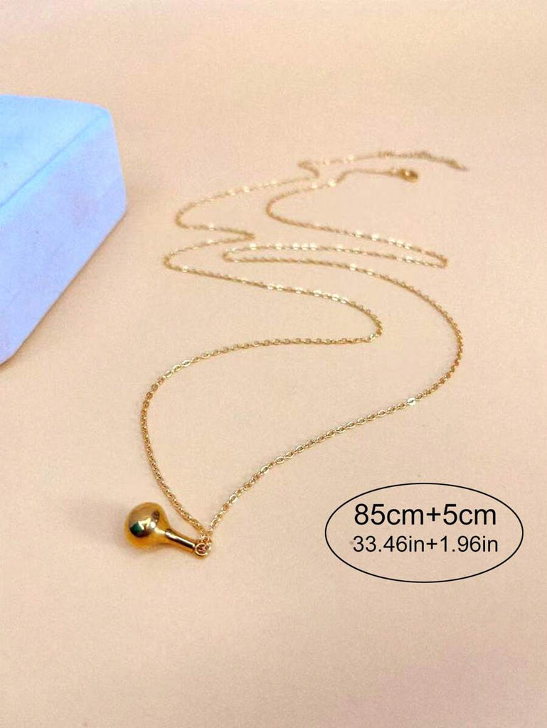 1pc Gold Stainless Steel 18K Gold-Plated Gourd Pendant Long Necklace, Fashionable Elegant Minimalist, Suitable For Daily Wear, Layering And Matching