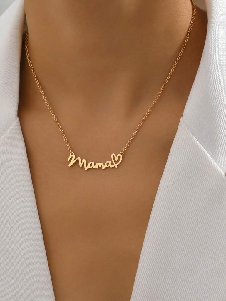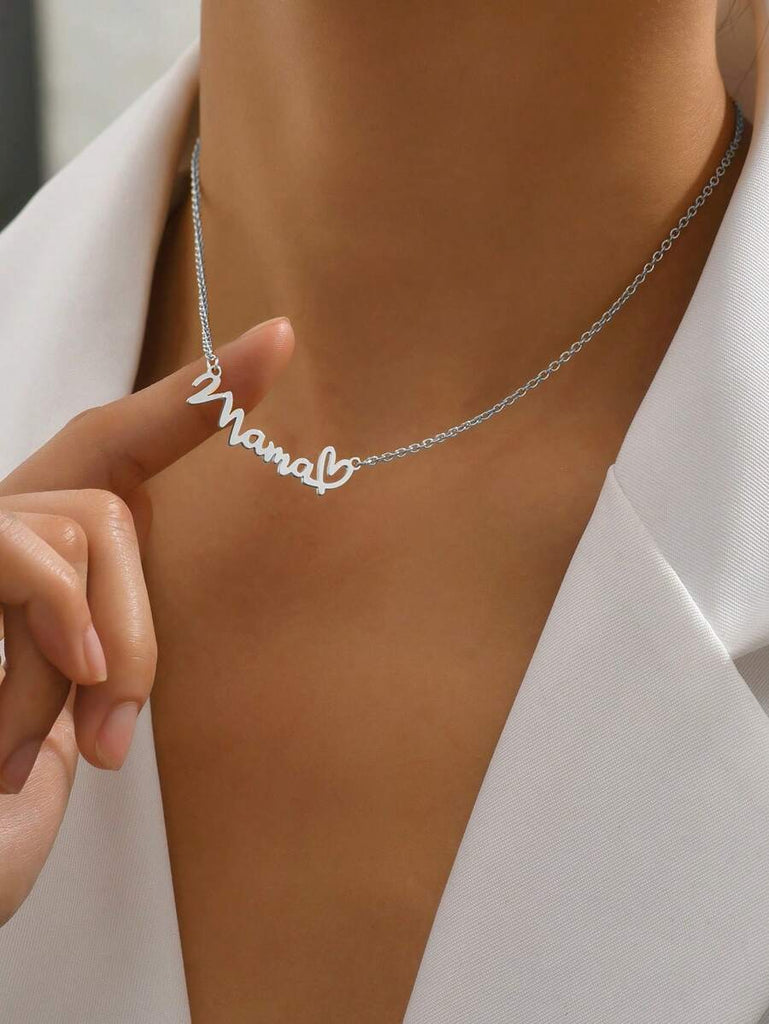 1pc Minimalist Fashion Mother's Day Letter "MAMA" Heart Pendant Necklace