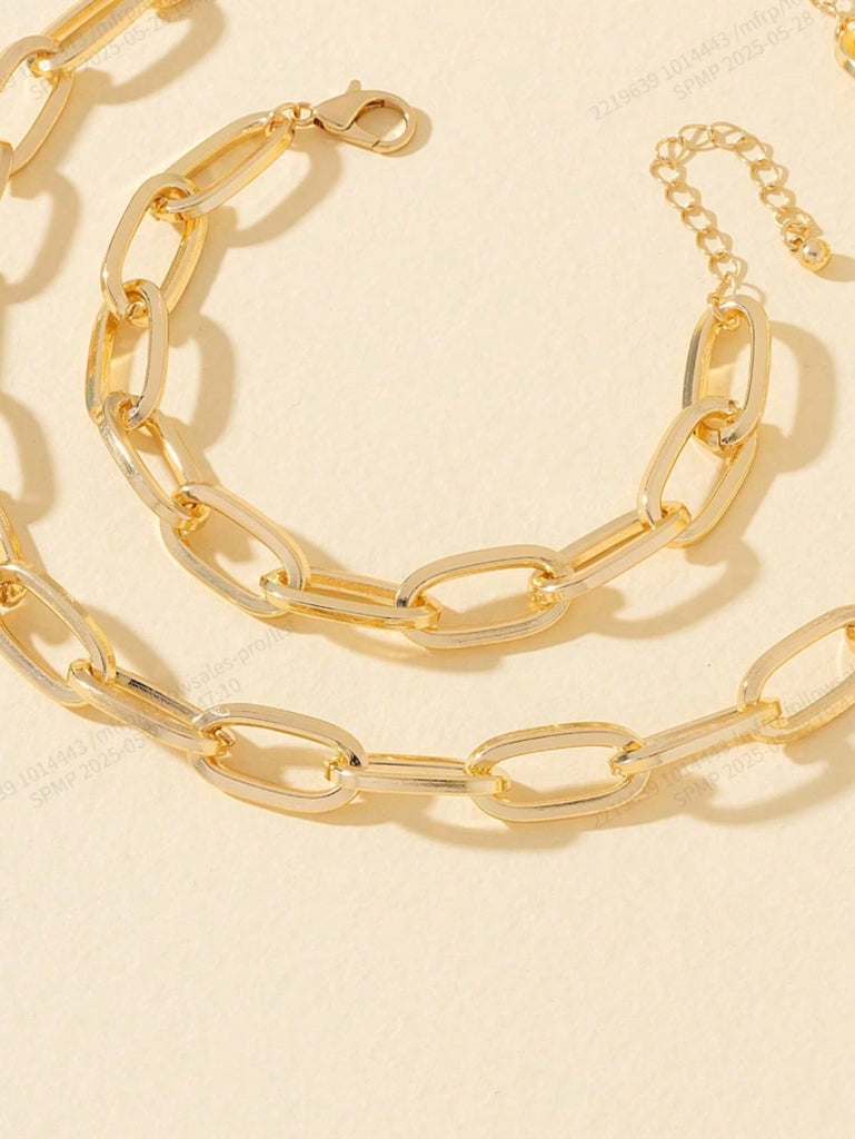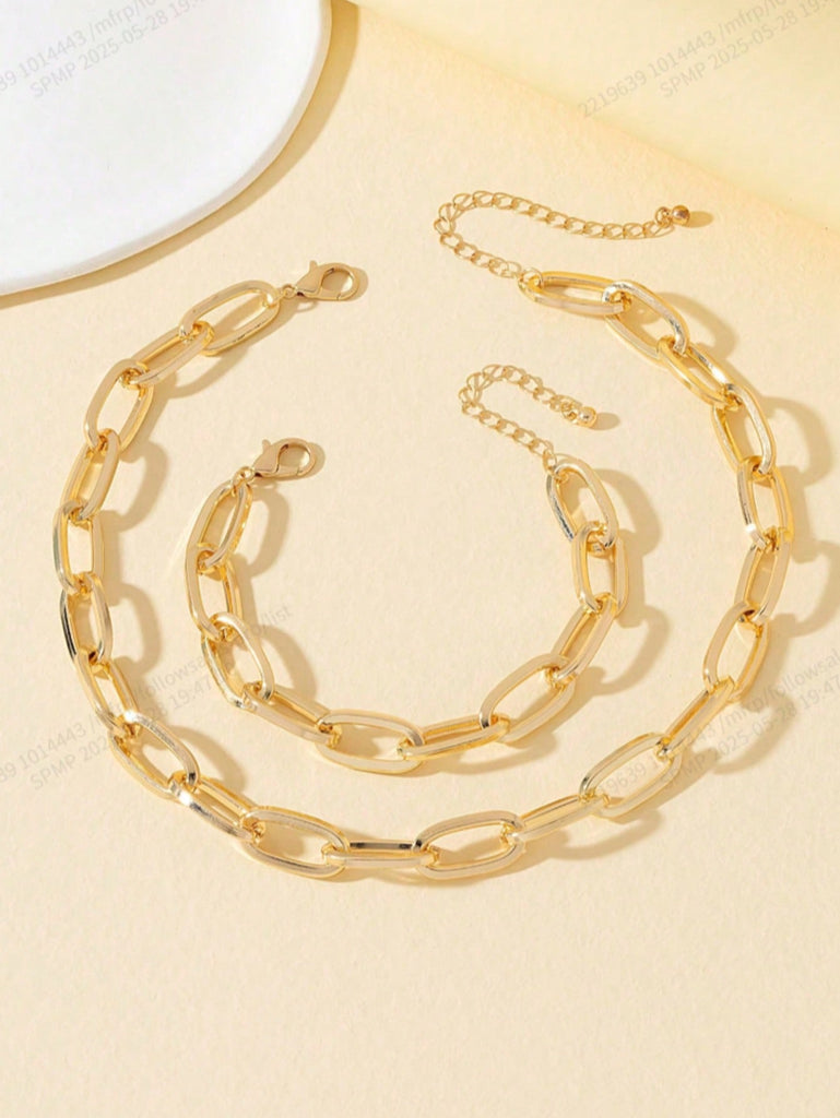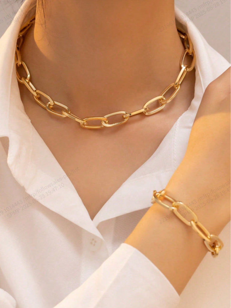 1pc Minimalist Metal Chain Bracelet And 1pc Minimalist Metal Chain Necklace Set, Women Jewelry Sets