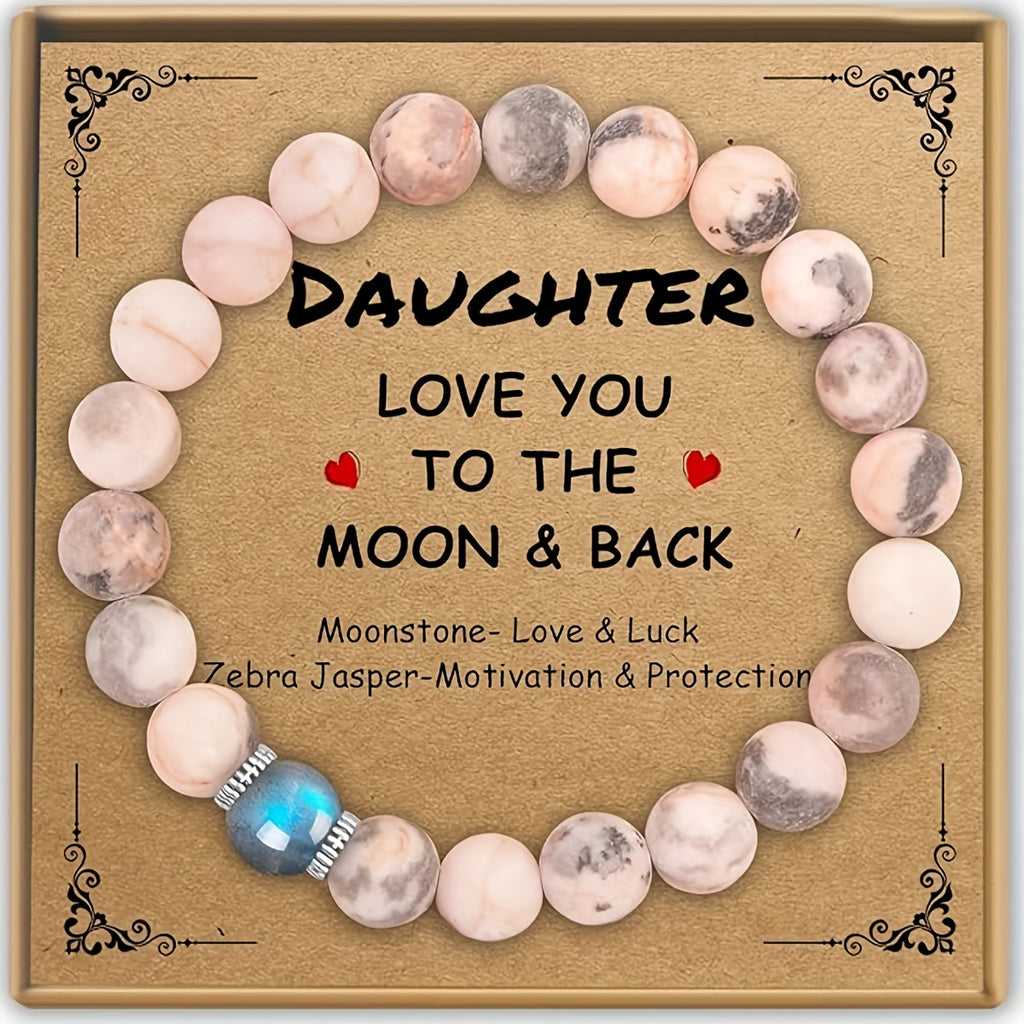 1pc set moonstone pink zebra lucky beaded bracelet for daughter's adult gift beaded bracelet for mom's gift perfect birthday gift Valentine's Day gift