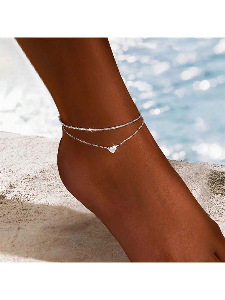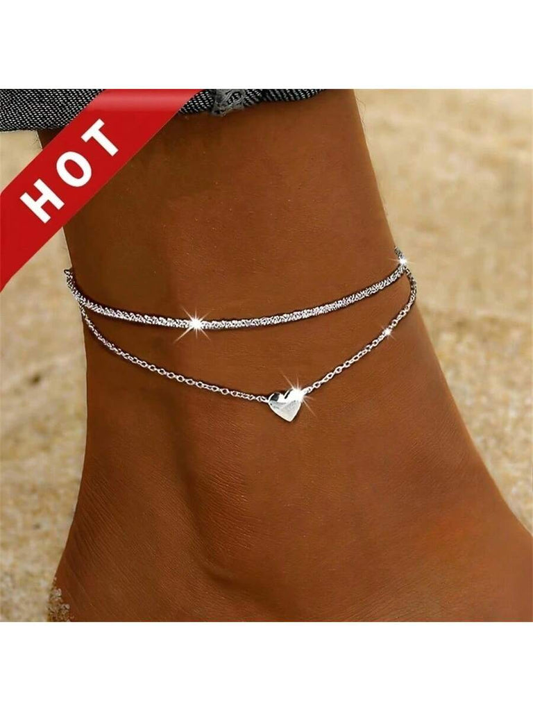 1pc Silver Heart Pendant Anklet, Hypoallergenic Bohemian Style Bracelet, Fashionable Sexy Unlayered Jewelry, Suitable For Gifting And Vacation, All Season