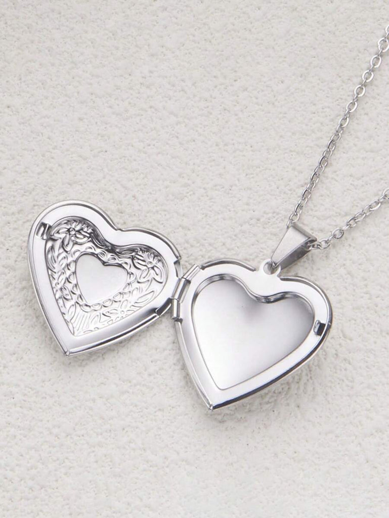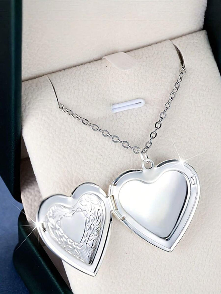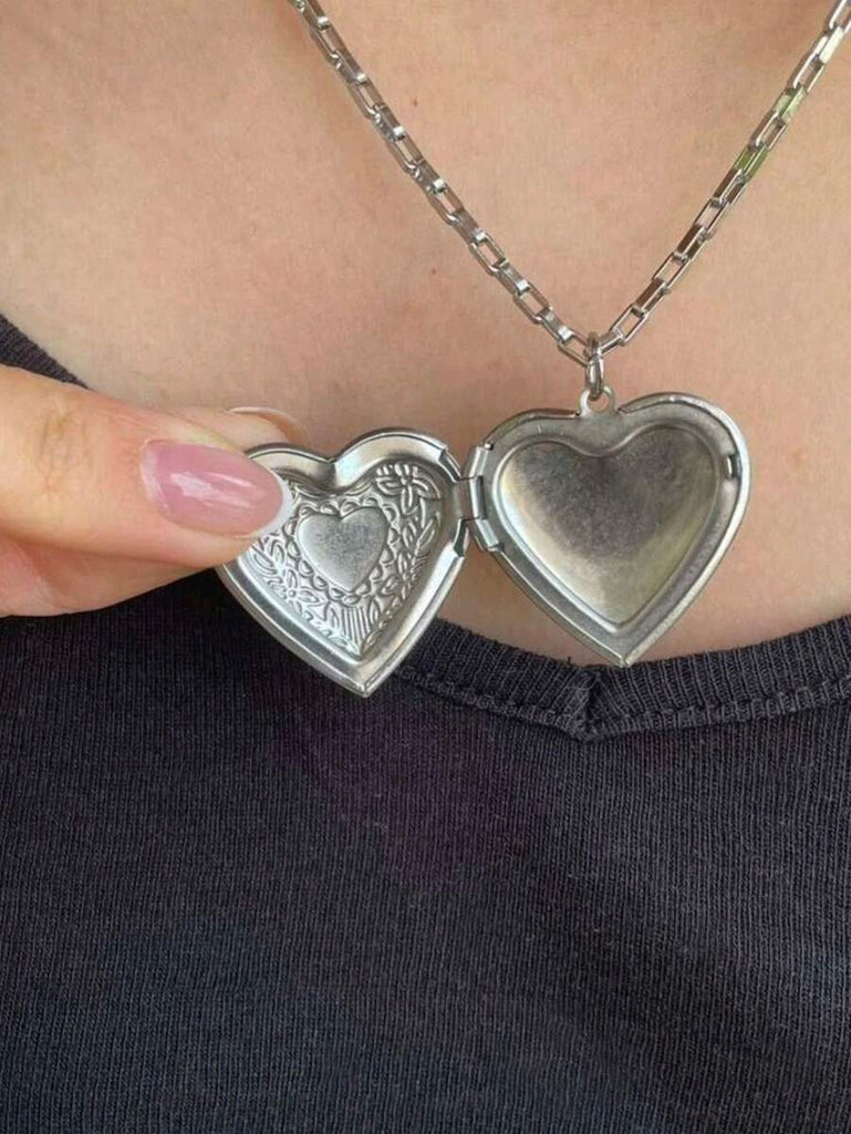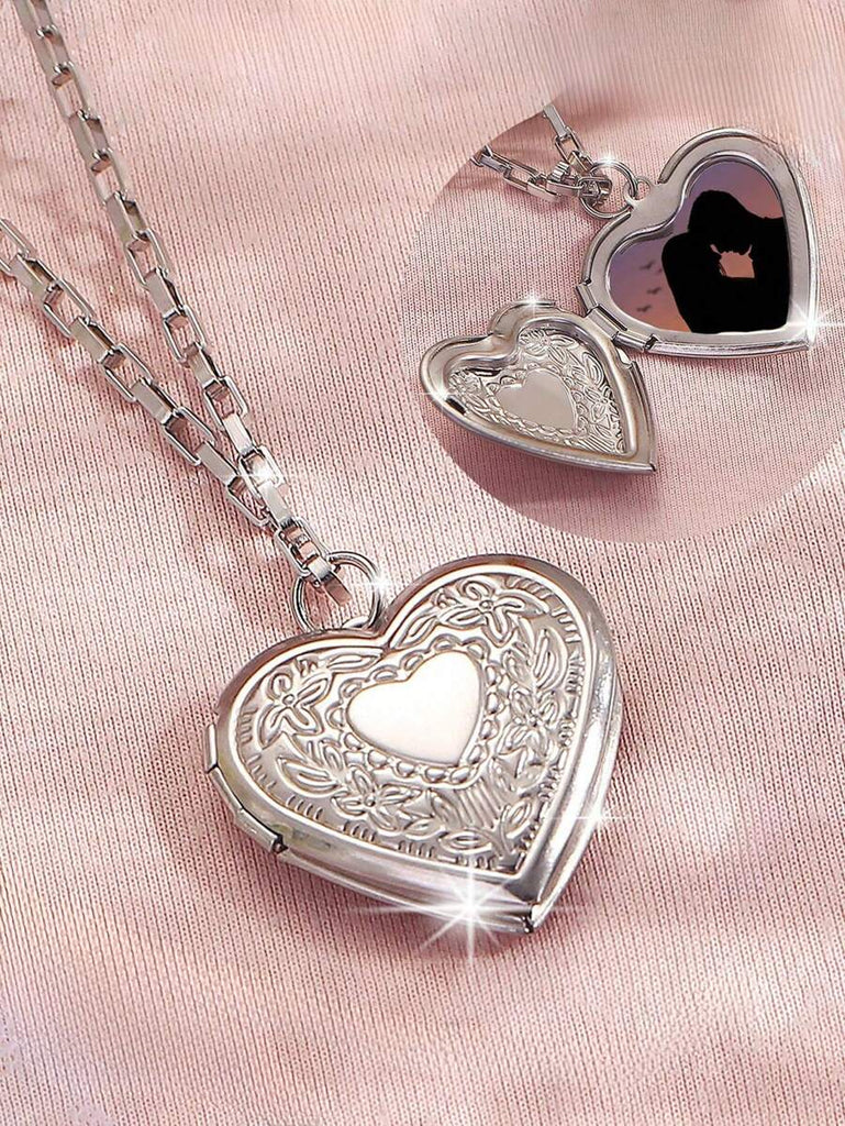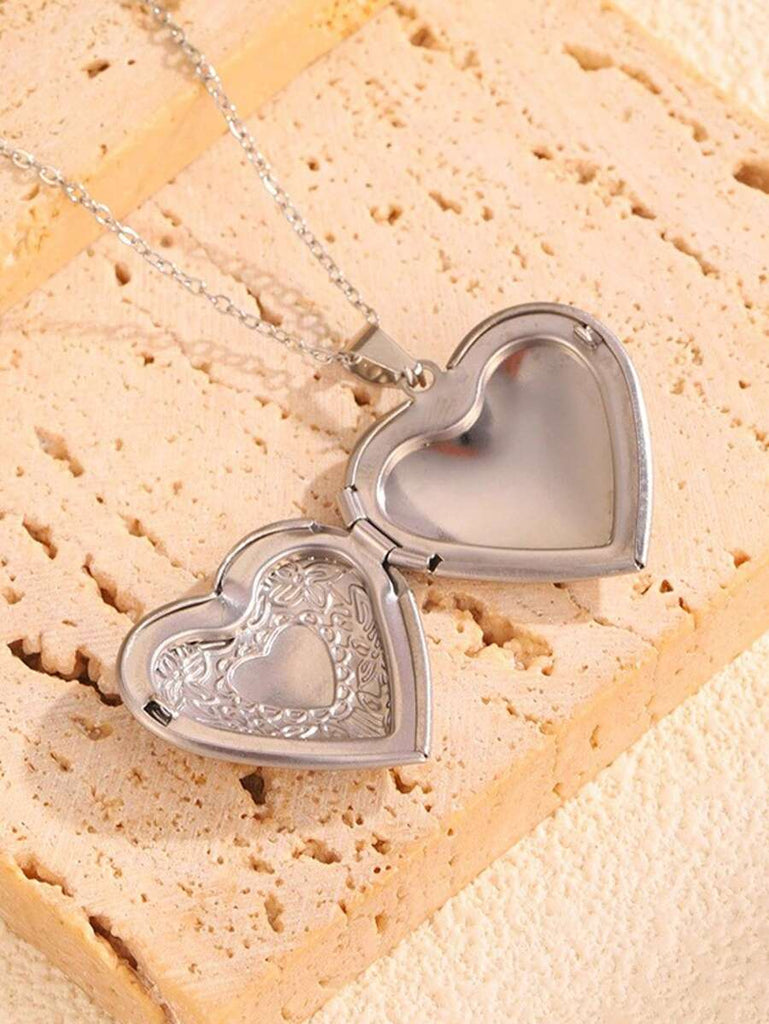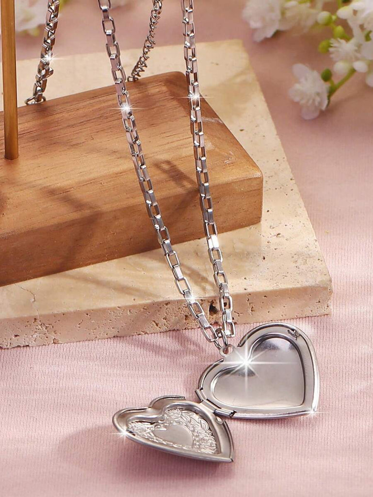 1pc Stainless Steel Necklace With Heart-Shaped Pendant, Fashionable Punk/Hip-Hop Style Necklace, Suitable As Birthday Gift For Couples And Family, Love-Themed, Can Hold Photo In Locket, Suitable For Daily Wear By Women
