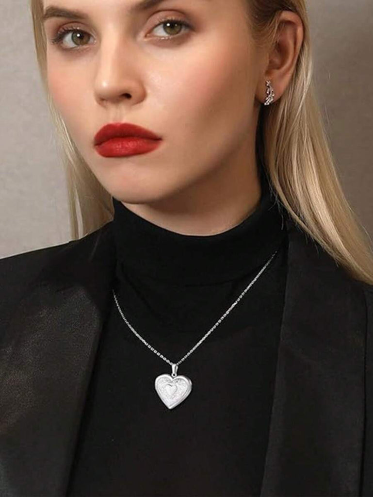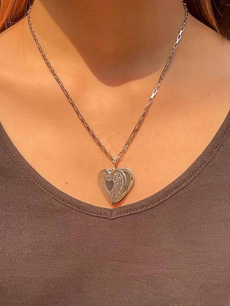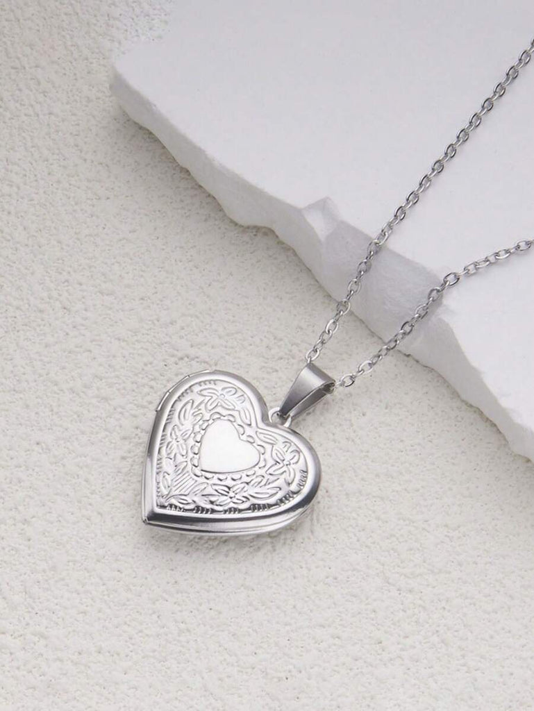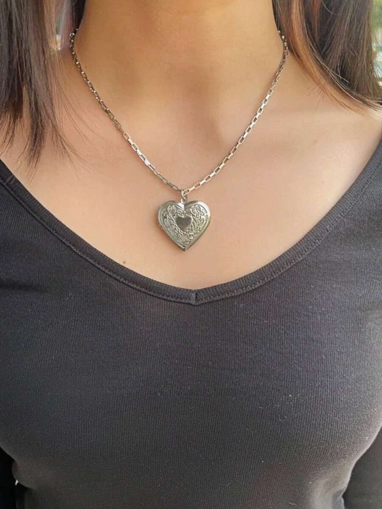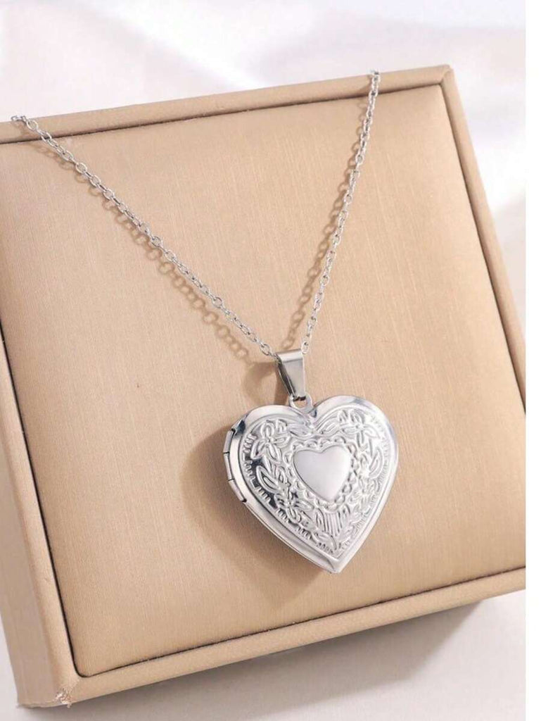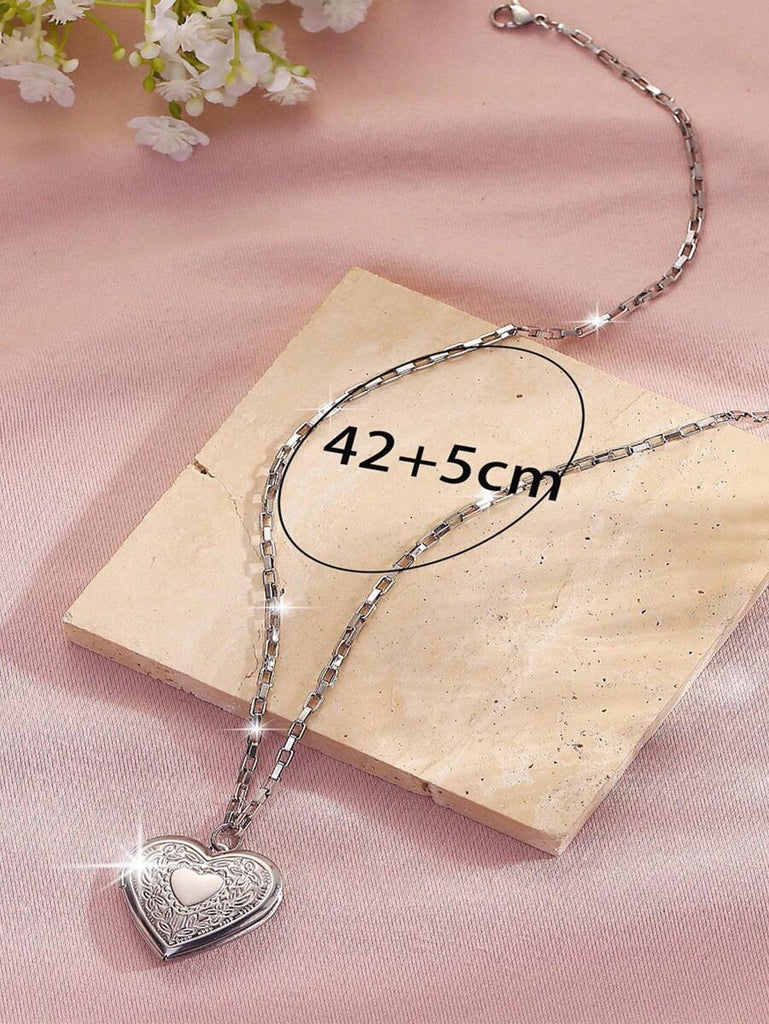 1pc Stainless Steel Necklace With Heart-Shaped Pendant, Fashionable Punk/Hip-Hop Style Necklace, Suitable As Birthday Gift For Couples And Family, Love-Themed, Can Hold Photo In Locket, Suitable For Daily Wear By Women