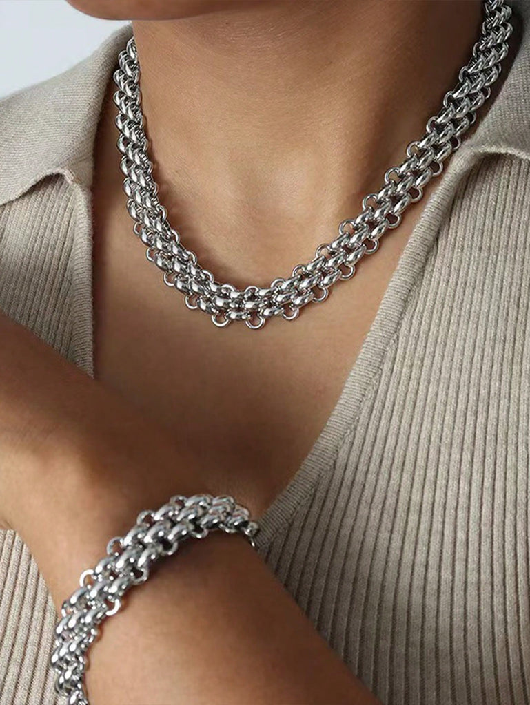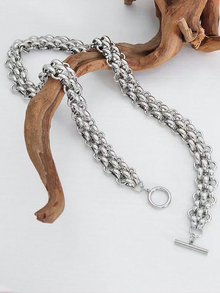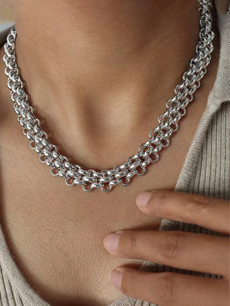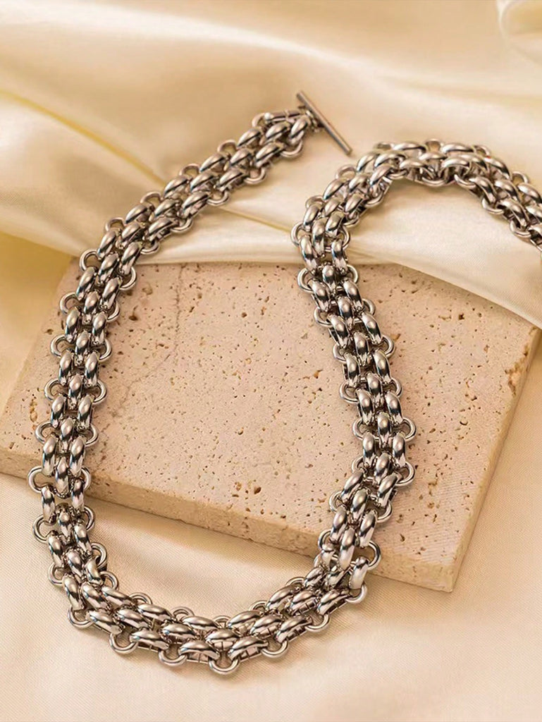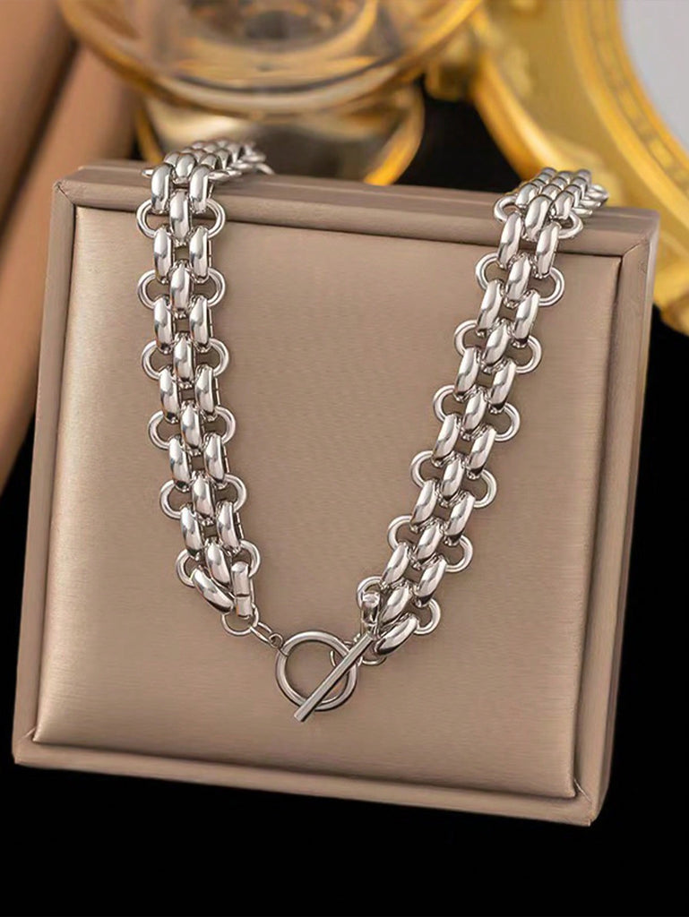 1pc Stainless Steel Unique Hip-Hop Thick Chain Necklace With OT Clasp, Suitable For Daily Wear And Gifting