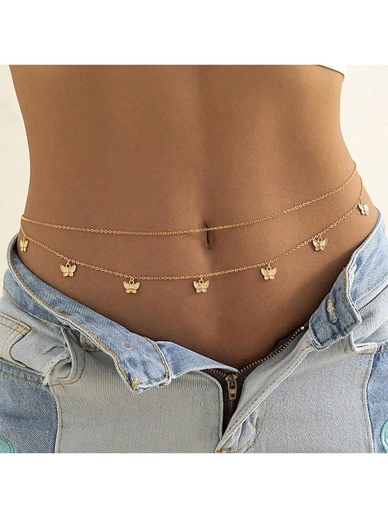 1pc Tassel Butterfly Pendant Double-Layer Waist Chain