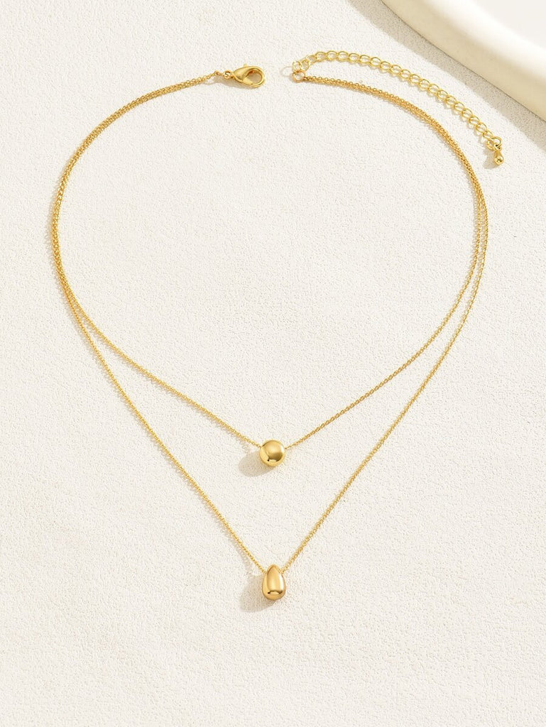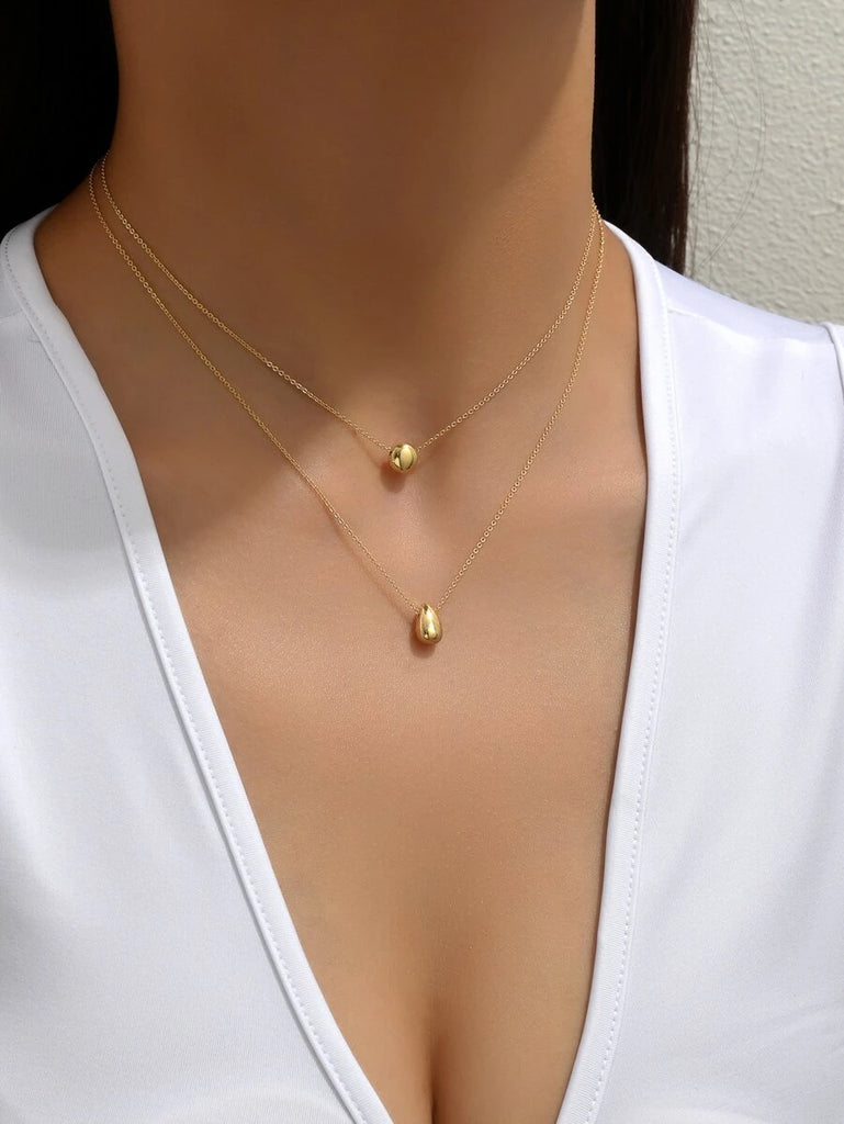 1pc Women's Double Layer Simple & Delicate Waterdrop Pendant Necklace, Suitable For Summer Travel, Dance Party, Date & Party Dress Up