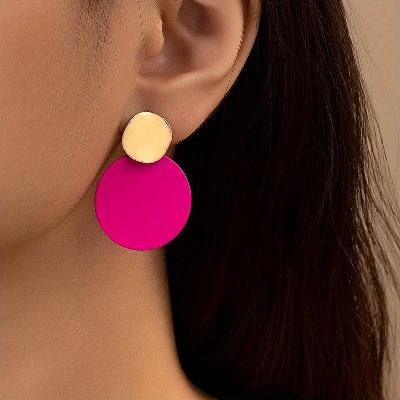 2pcs Elegant 14K Golden Plated Geometric Earrings - Vibrant Pink & Golden, Irregular Circular Design for Women, Daily & Music Festival Wear, All Seasons, Festive Earrings|Vibrant Earrings|Goldtone Earrings