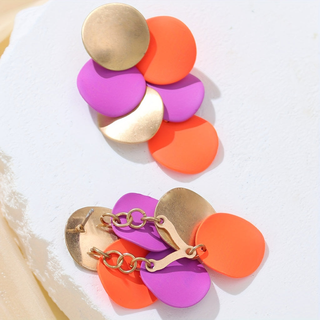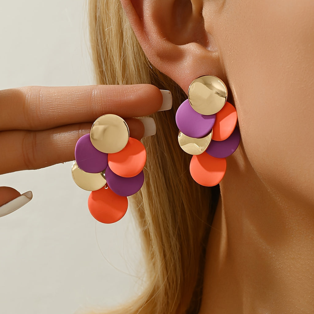2pcs Fashion Simple Geometric Round Iron Sheet DIY Splicing Multi-color Party Earrings Girls Wear It to Attend Dates and Banquets Suitable for Women's Daily Wear