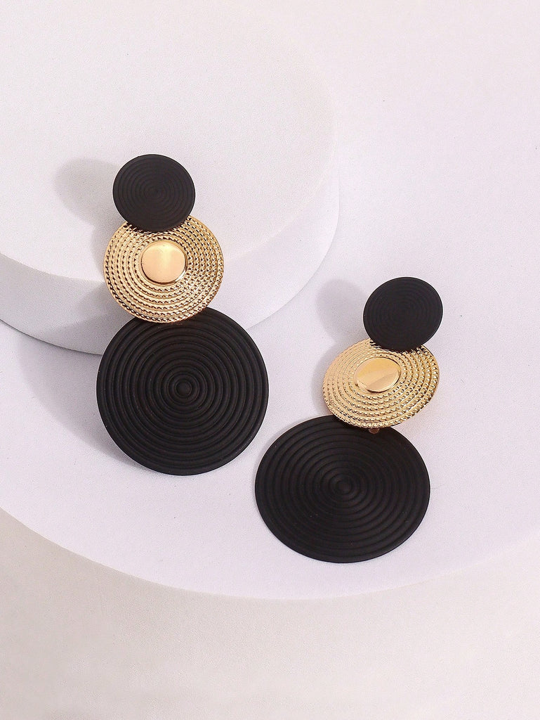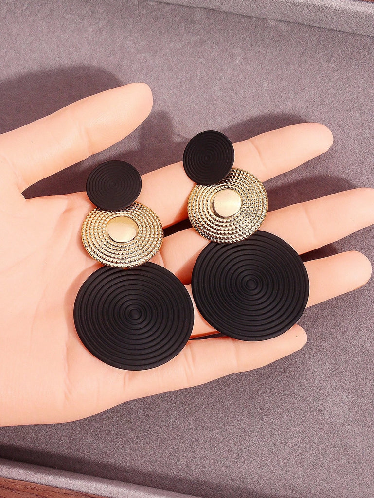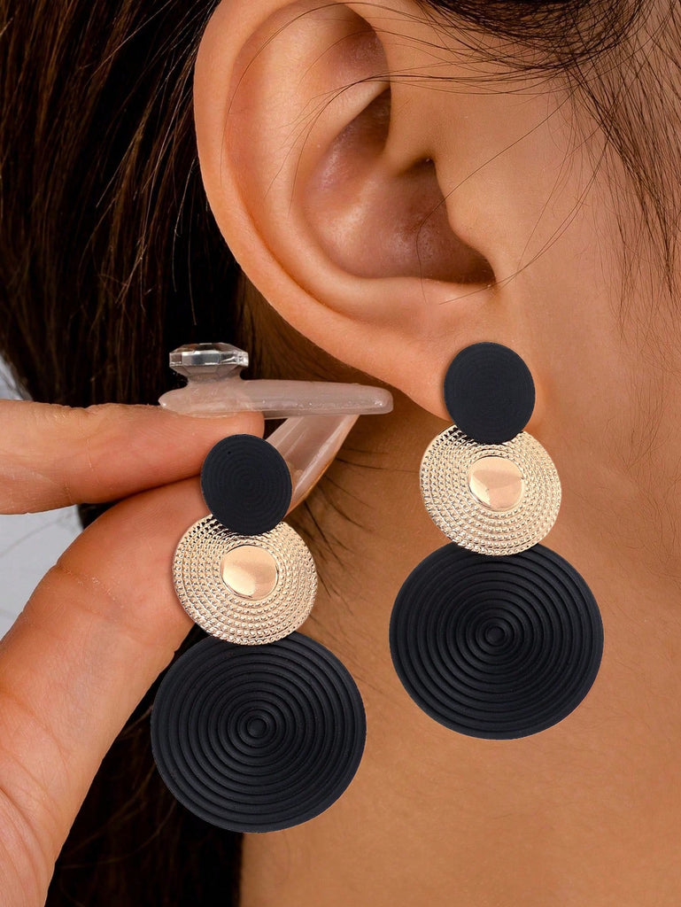 2pcs Geometric Spiral Pattern Stud Earrings, Minimalist Women's Wavy Design Ear Rings