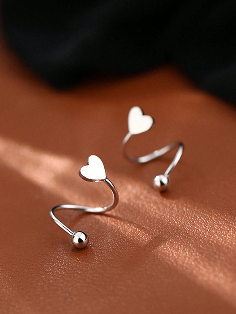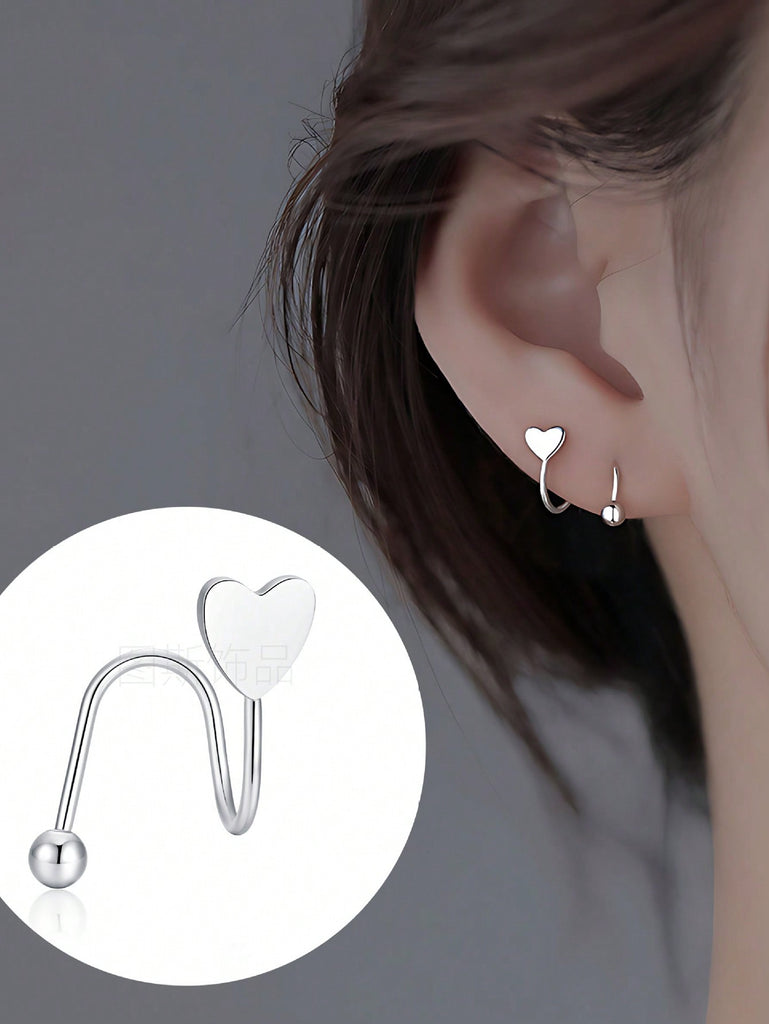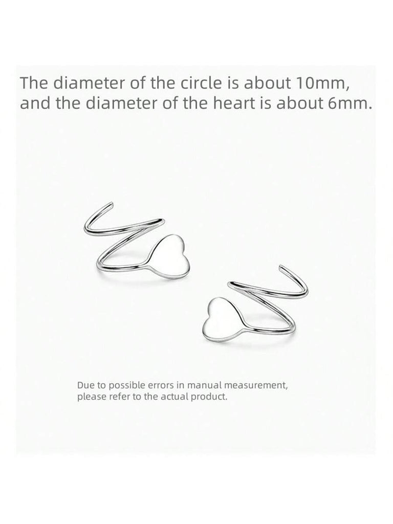 2pcs/Set Cute Heart Stud Earrings, Stainless Steel S-Shape Wrap Around Earrings, Fresh And Lovely (Screw Earrings May Be Difficult To Twist, Please Choose Carefully)