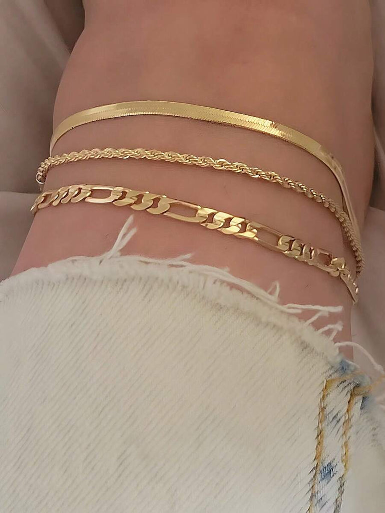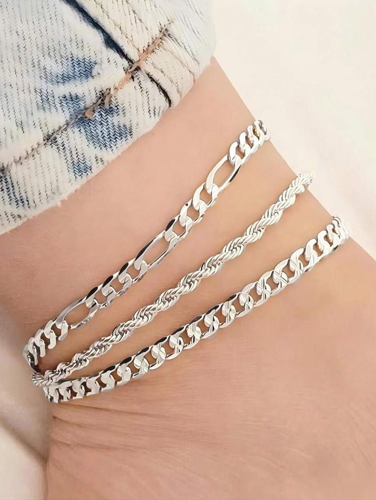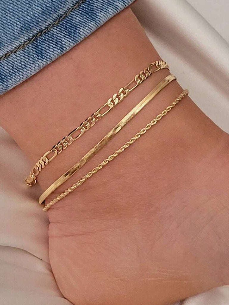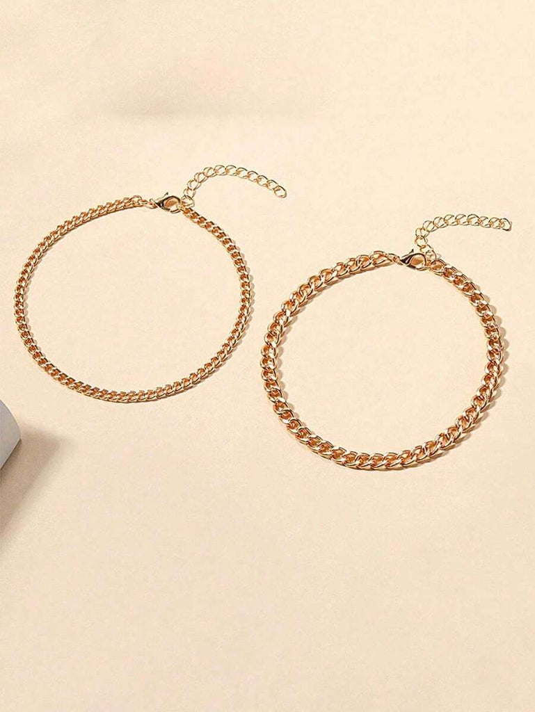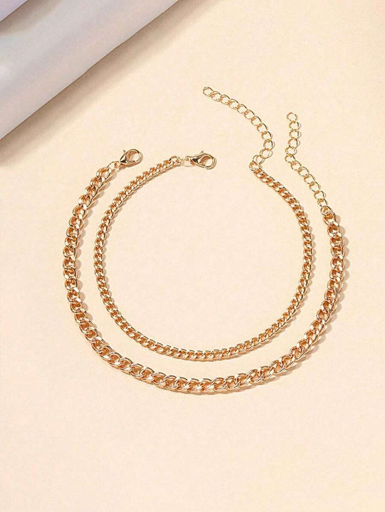 2pcs/Set Multi-Layer Chain Unique Design Anklets In Beach & Street Style, Suitable For Women's Daily Wear