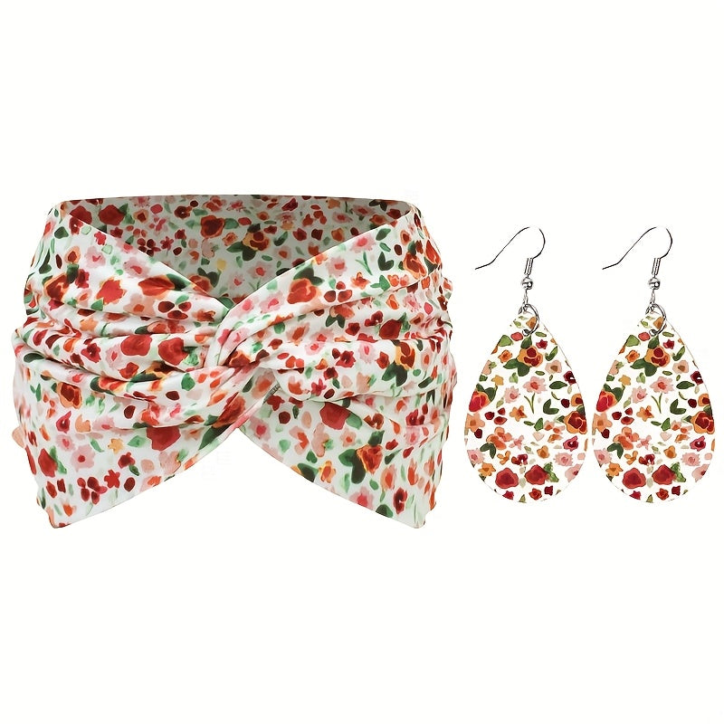 2pcs/Set New Spring And Summer 1 Headband Plus 1 Pair of Earrings Set Printed Fashionable Women'S Headband And Women'S Earrings Suitable for Daily Use