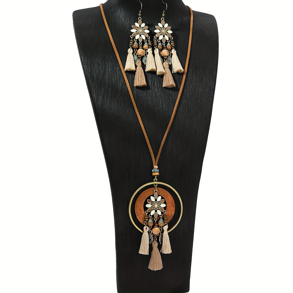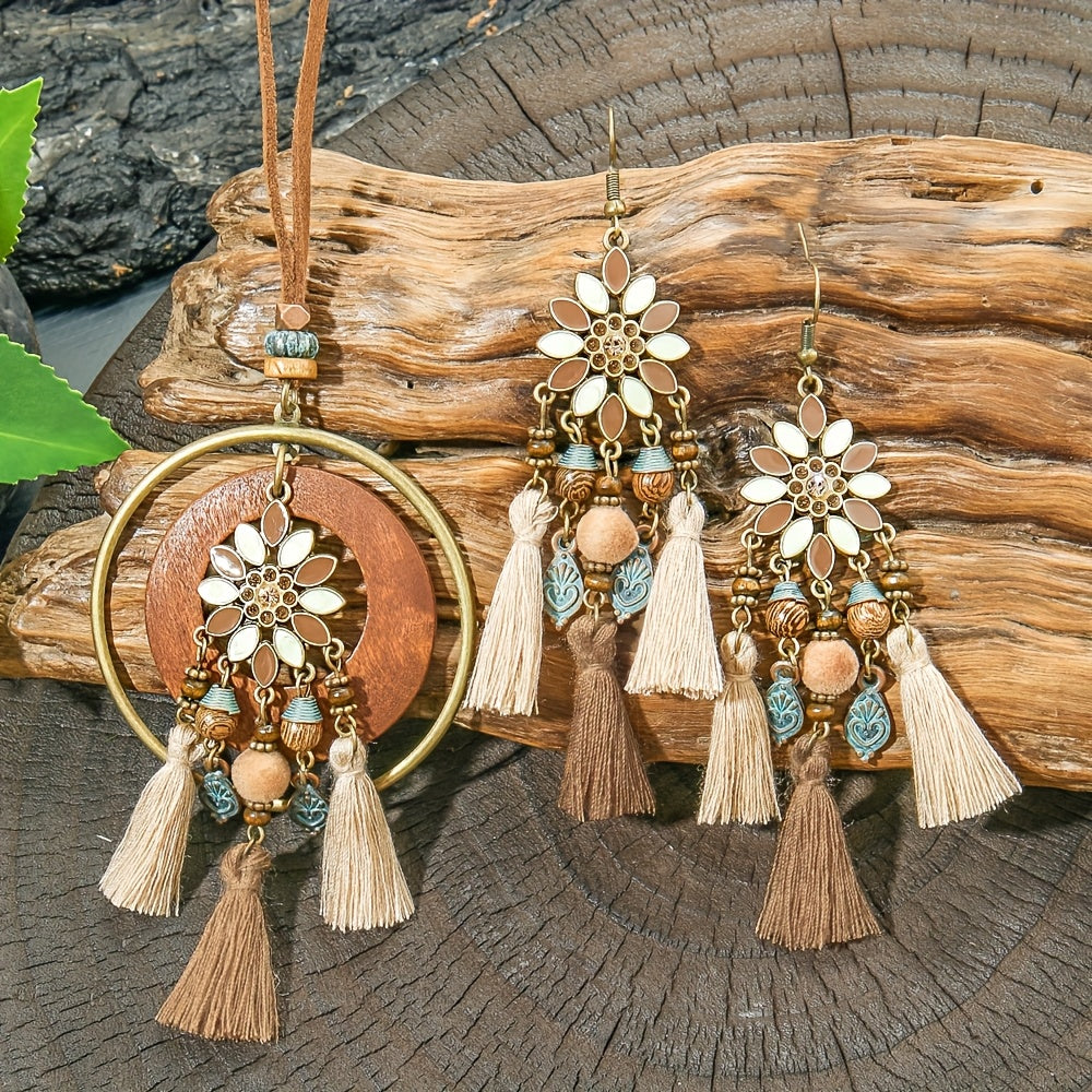3pcs Boho Vacation Women'S Fashion Jewelry Set, Cute, Glass Mosaic Zinc Alloy Copper Plated, with Earrings Necklace