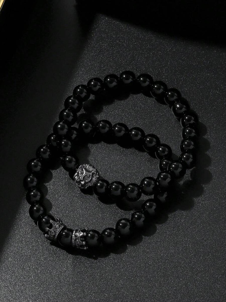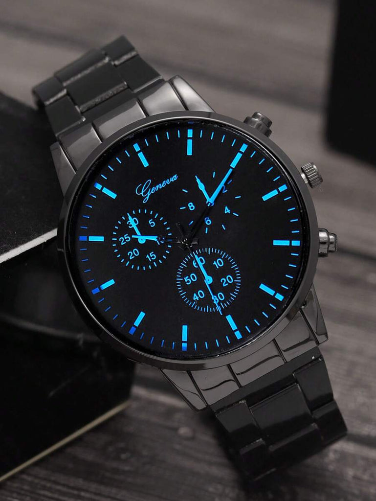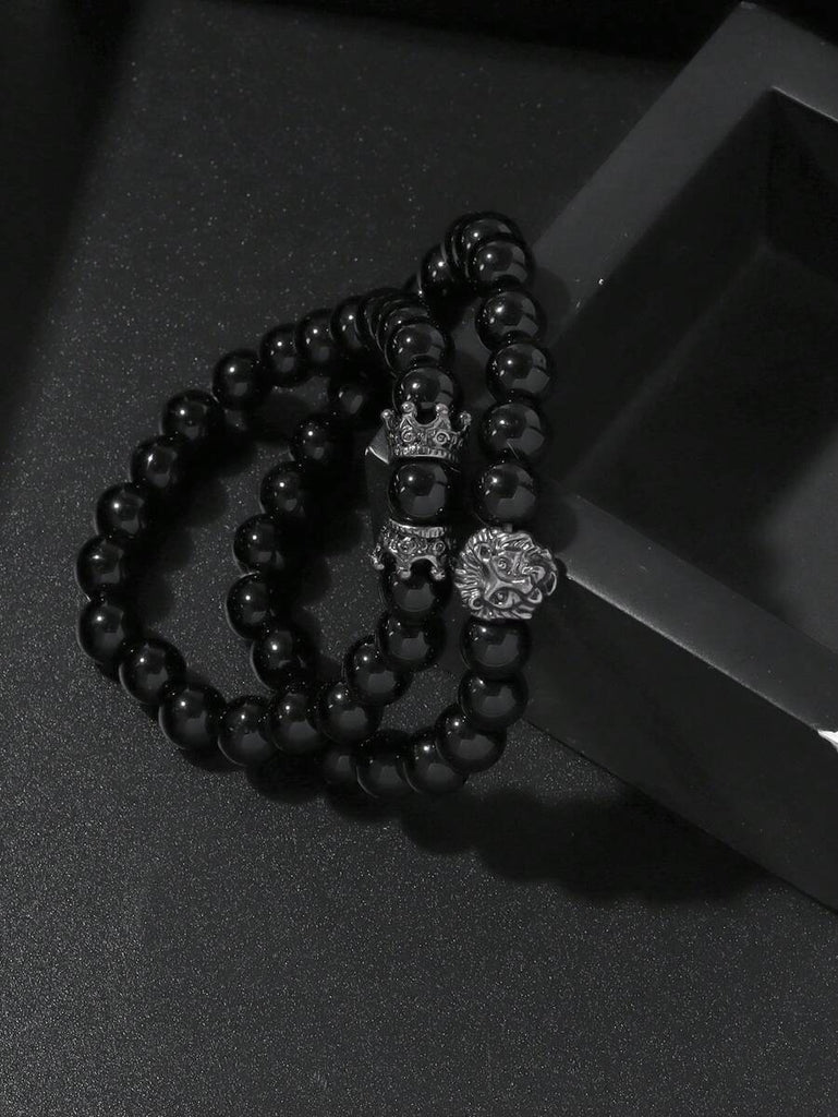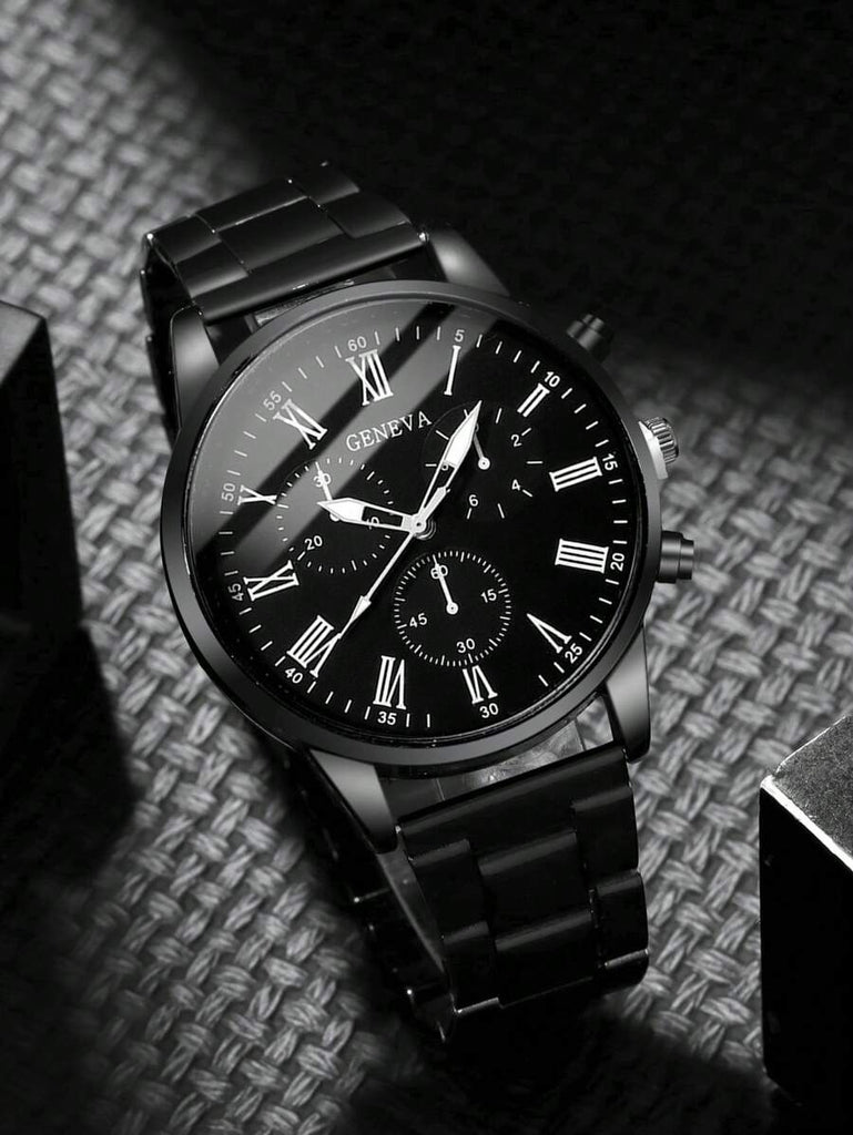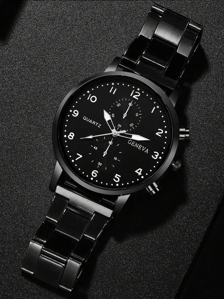 3pcs Fashionable And Versatile Men's Quartz Watch, Round Dial, Alloy Steel Strip, Paired With Crown Bead Bracelet Set, The Best Gift For Men, Suitable For Holiday Gifts And Daily Wear