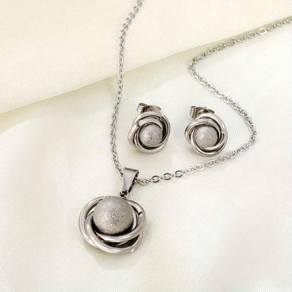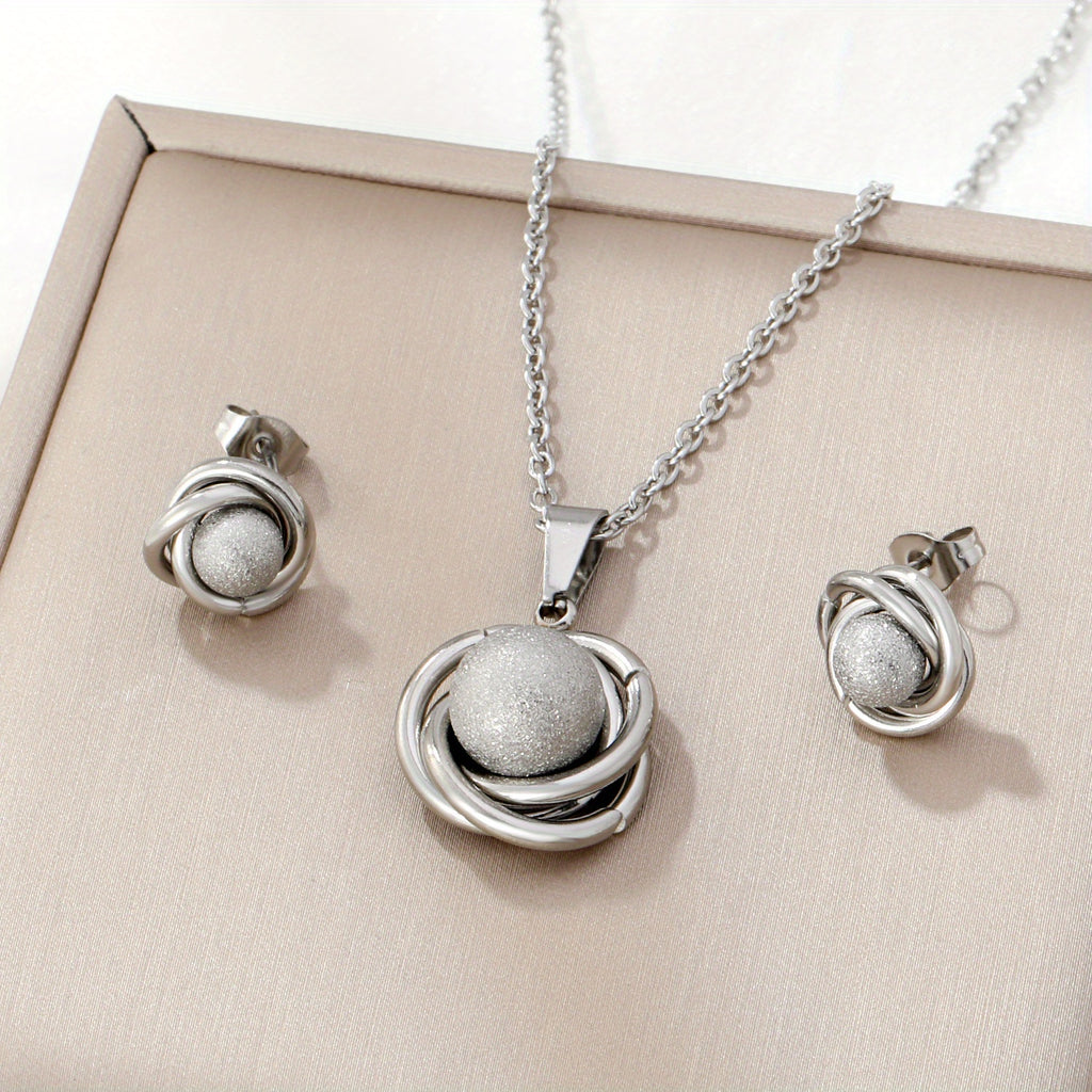 3pcs Stainless Steel Geometric Ball Dangle Earrings & Necklace Set - Boho-Chic, Luxurious Hipster Style for Date Night, Vacation, Party, and Everyday Wear, Date Night Accessories|Boho Chic Style|Sleek Finish
